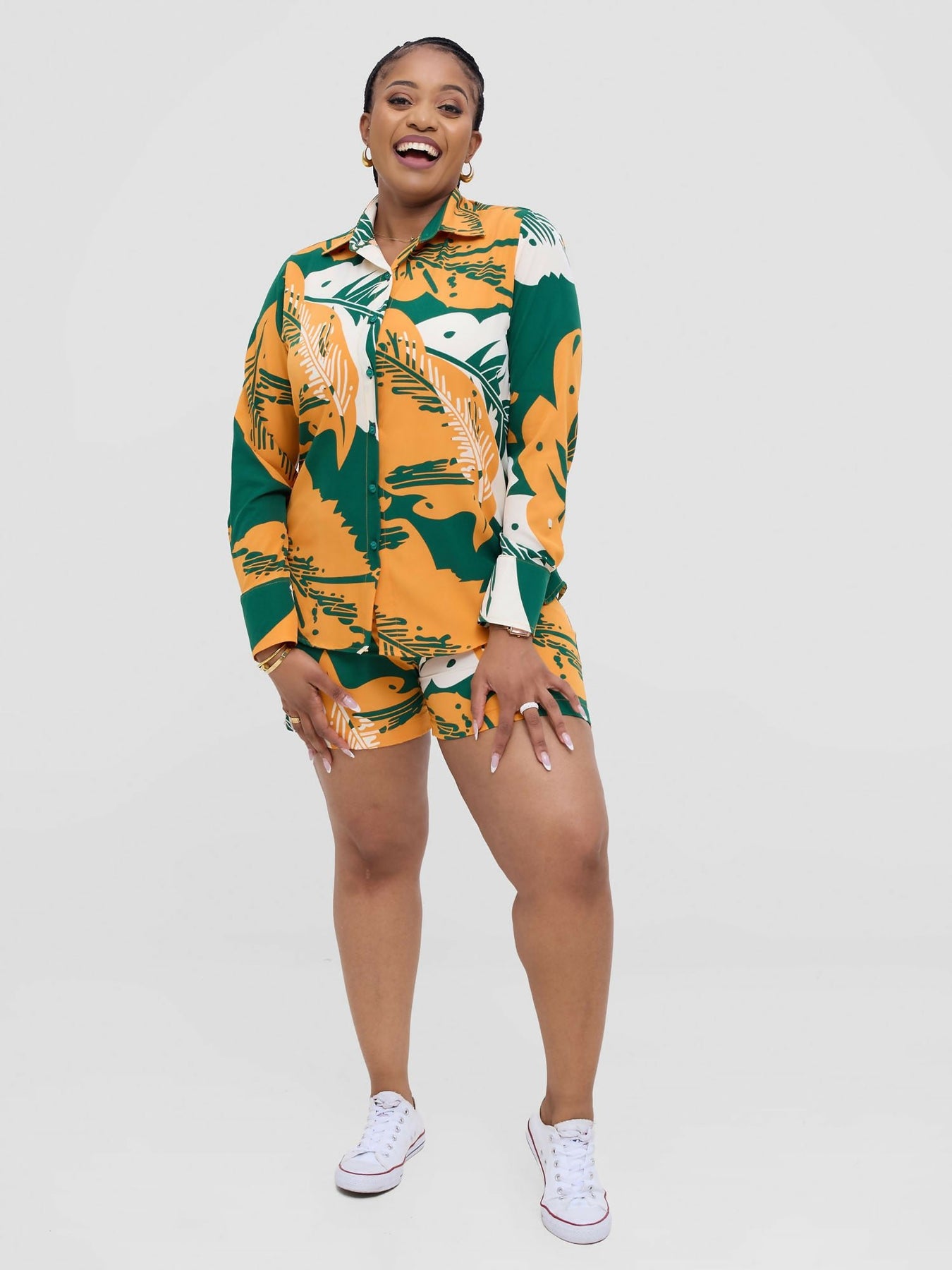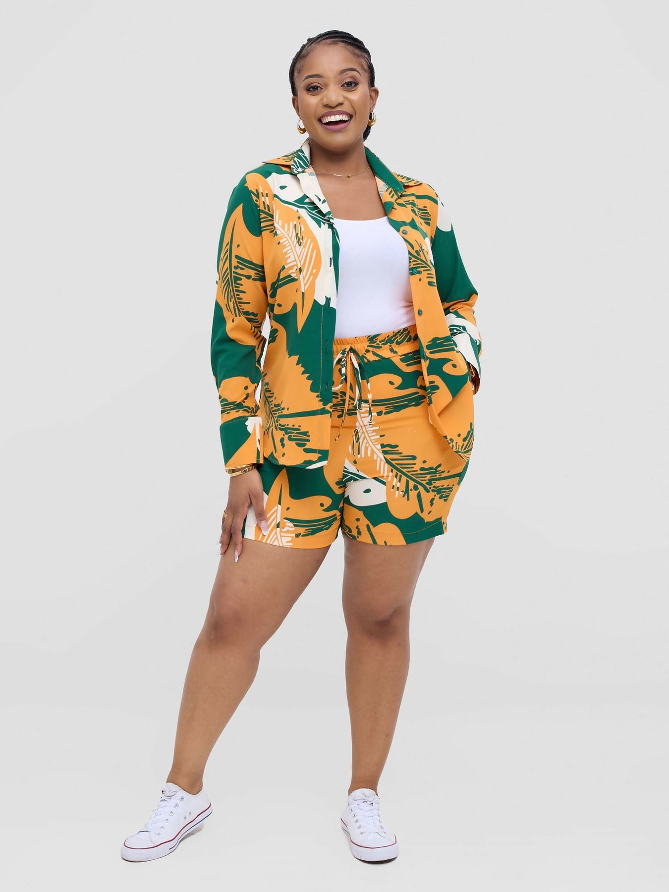 Lizola Jazmine Jenna Short Set - Green / Mustard / White - Shopzetu
