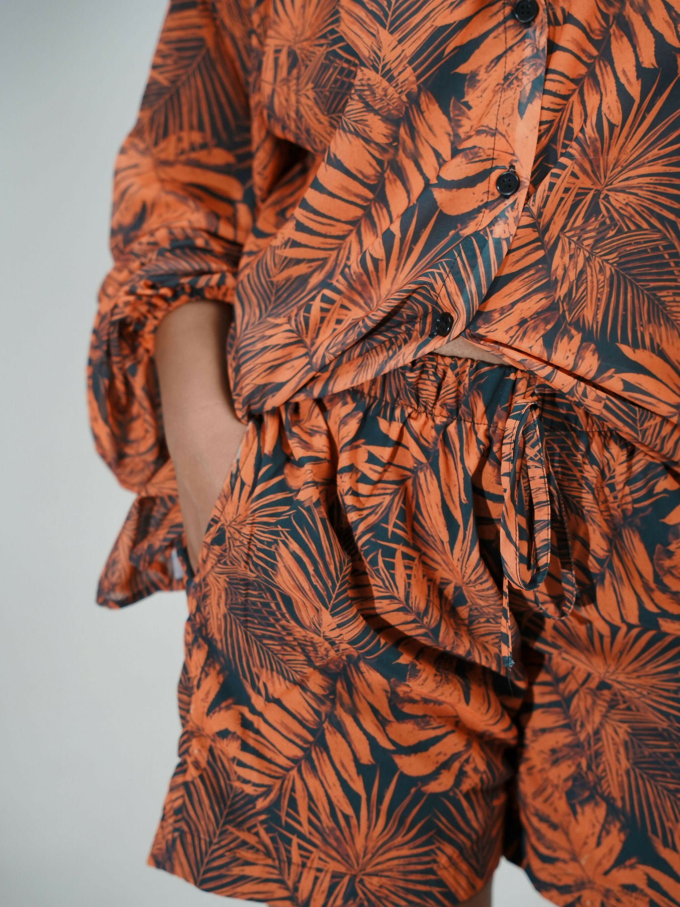 Misstcal Two Piece Floral Chiffon Short Set - Burnt Orange