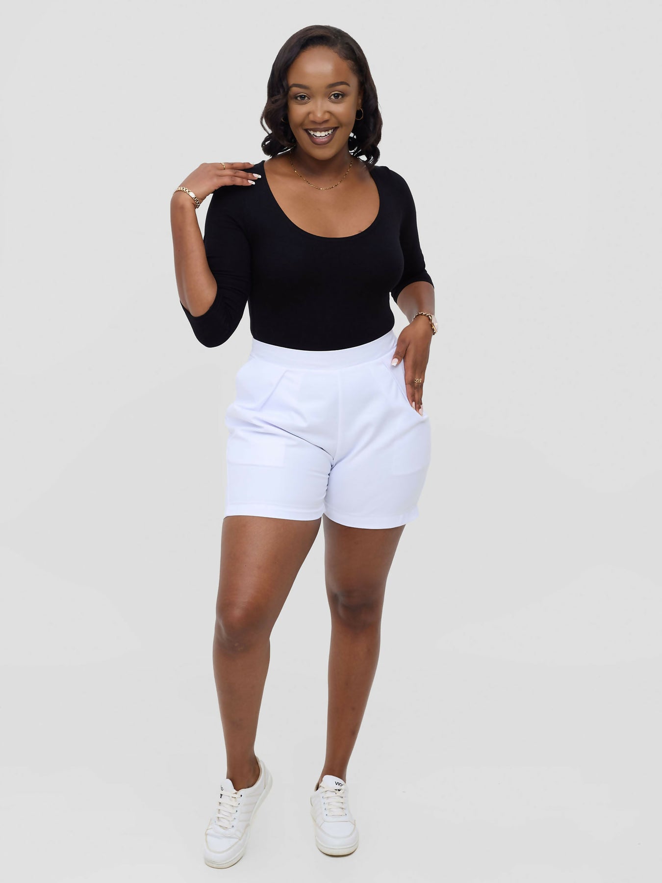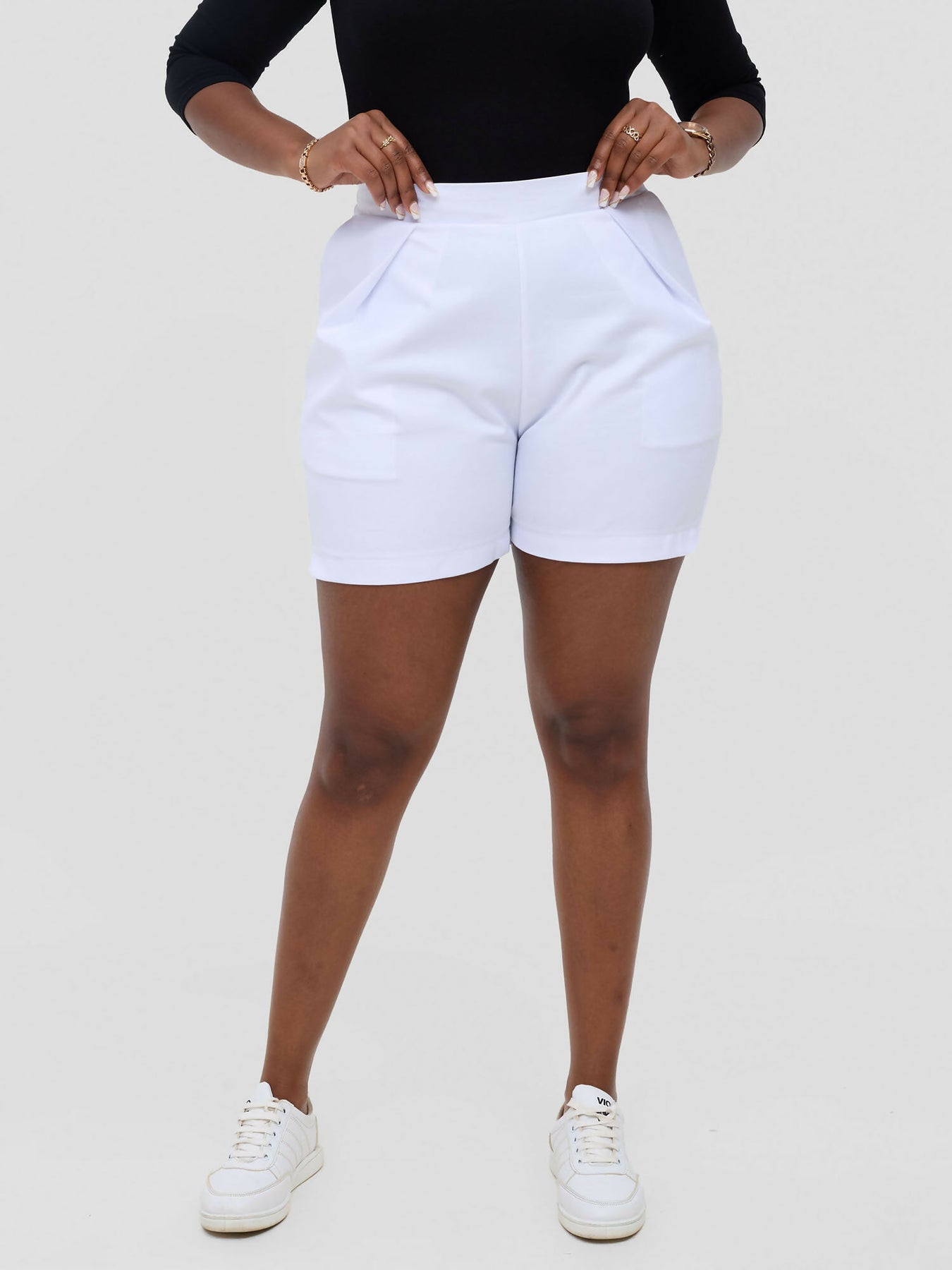 Upgrade your wardrobe with these chic white shorts, designed for both style and ease. Featuring a stretchy back waistband for the perfect fit and front pockets for added convenience, these shorts blend functionality with fashion. Whether you're dressing up or keeping it casual, they’re the perfect go-to for any occasion.