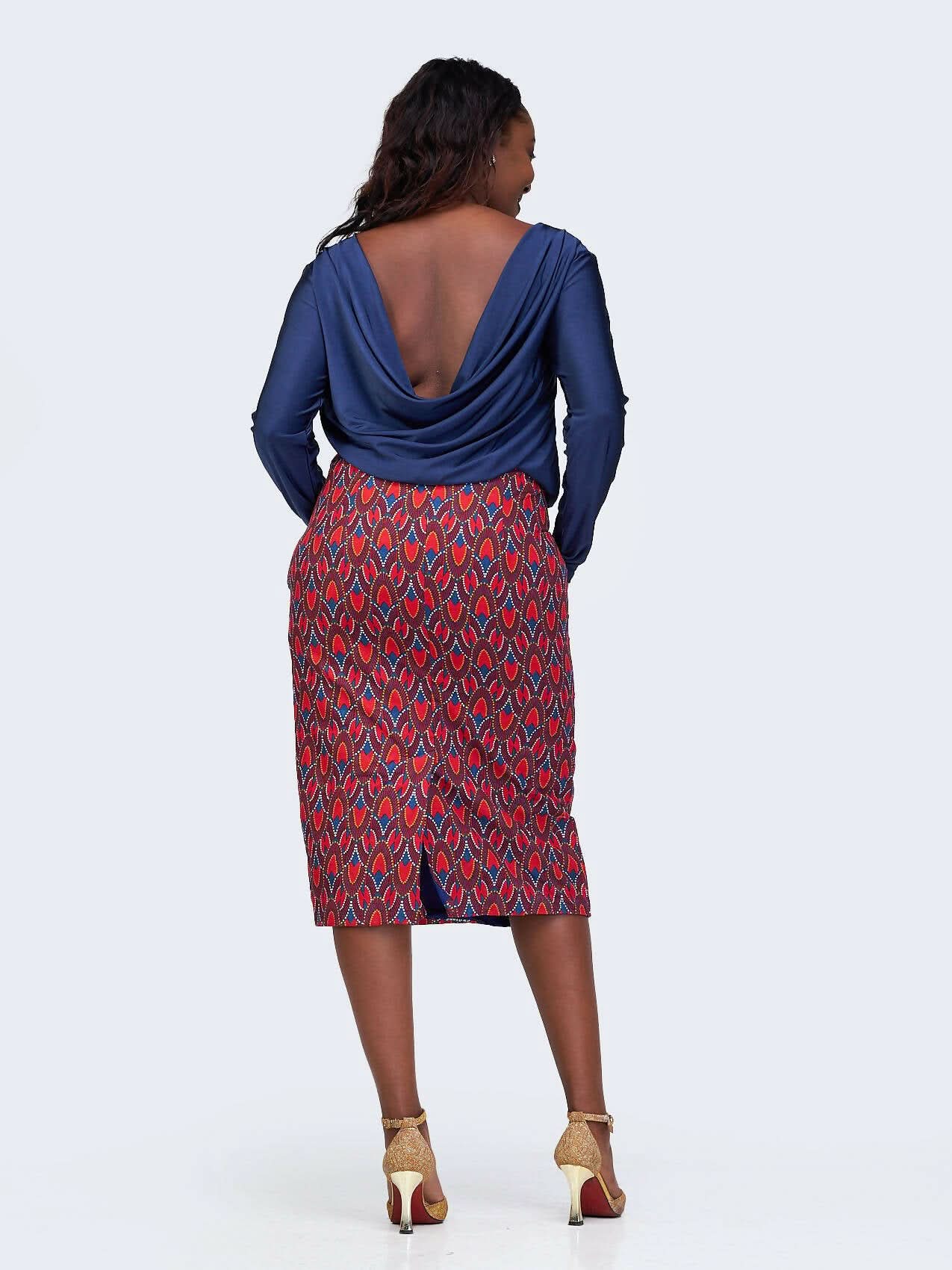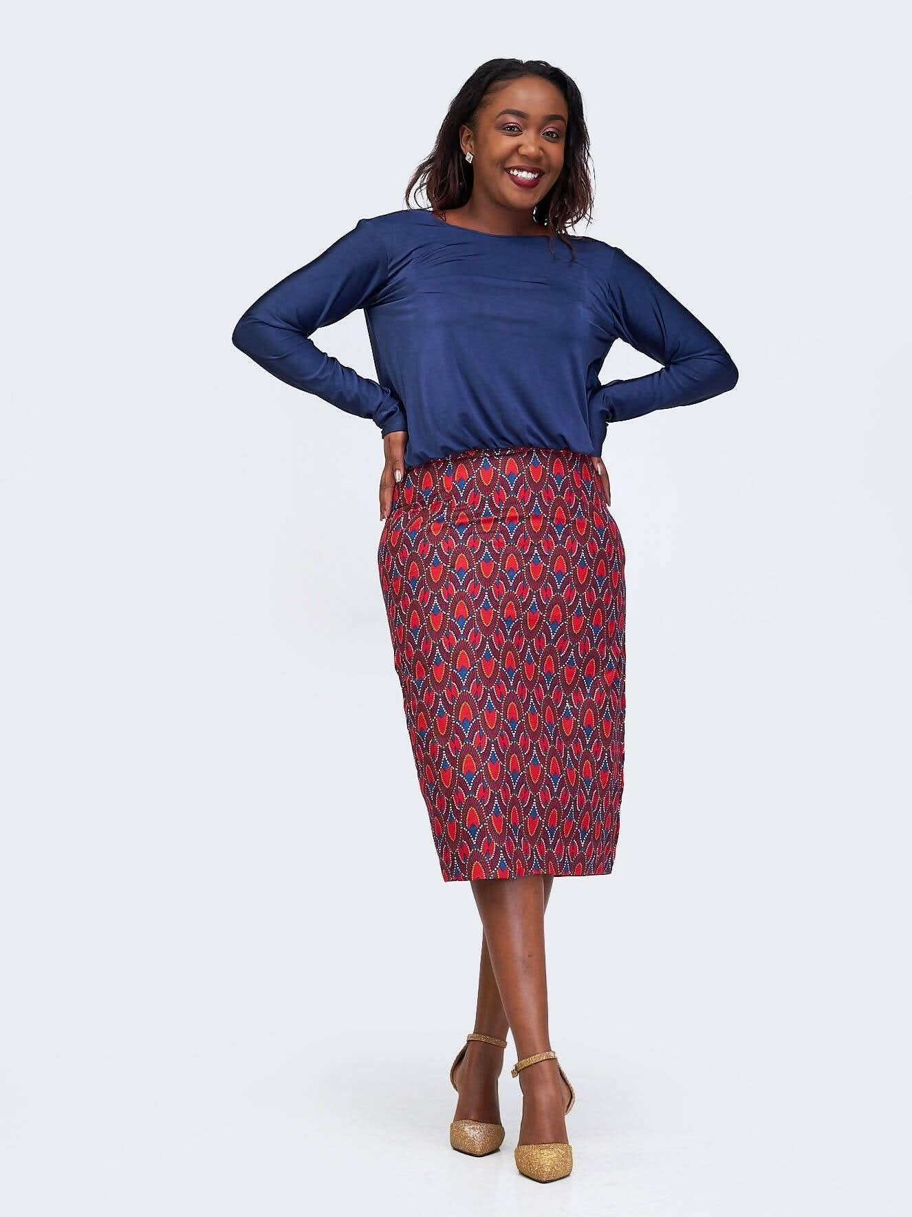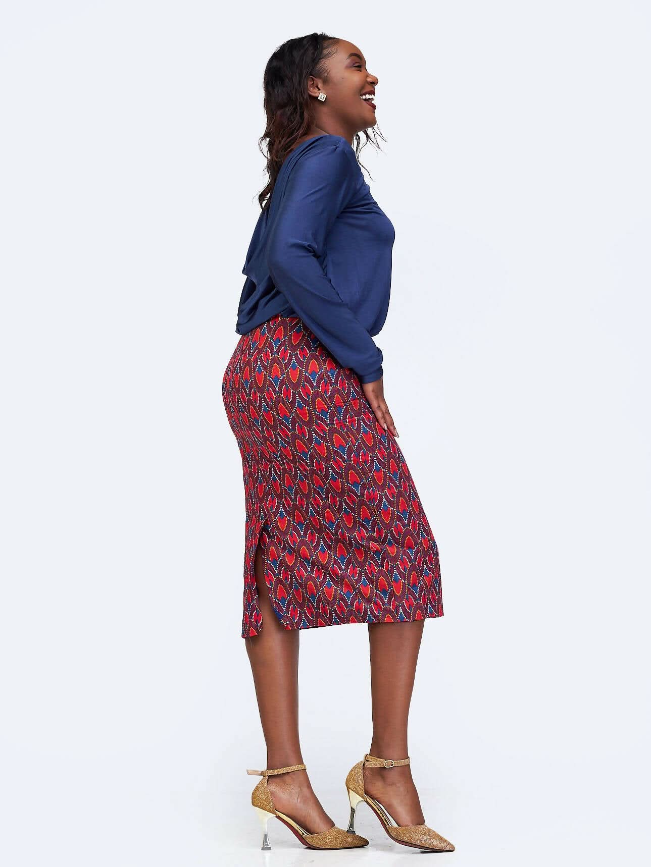 Simbaress Ankara Mix Kajumba Dress - Blue / Red - Shopzetu