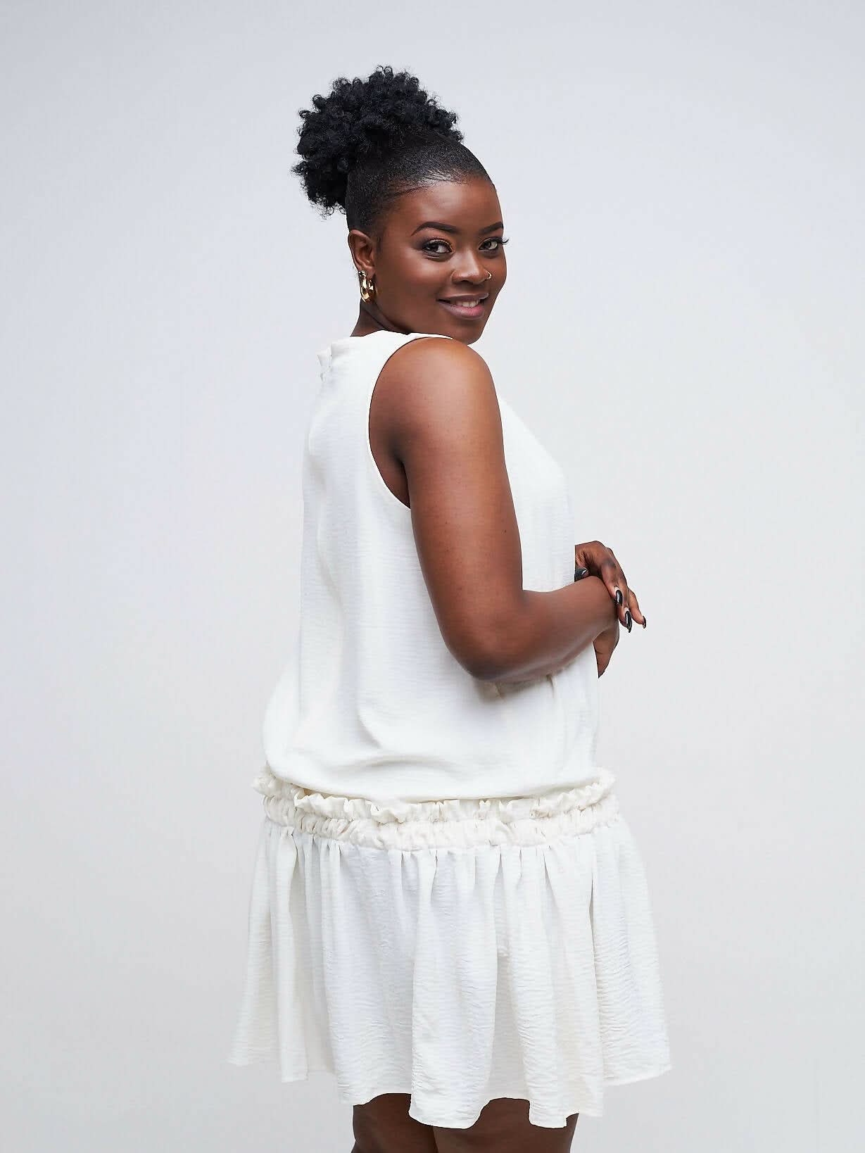 The Pierra dress is an enchanting short dress with gathers detail at the hips, a captivating fusion of textured fabric and soft style. This dress accentuates your curves and exudes feminine elegance with a playful touch.