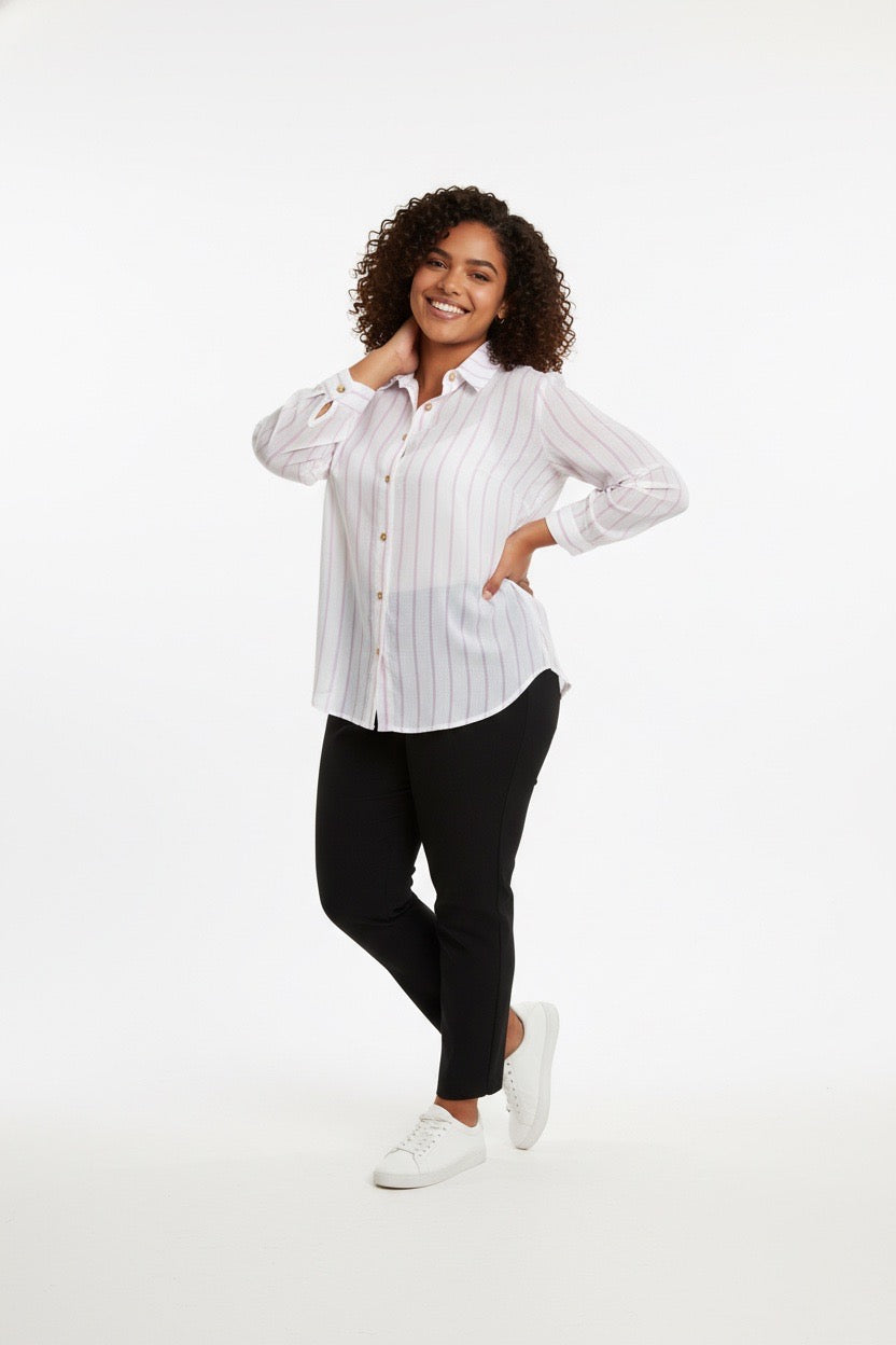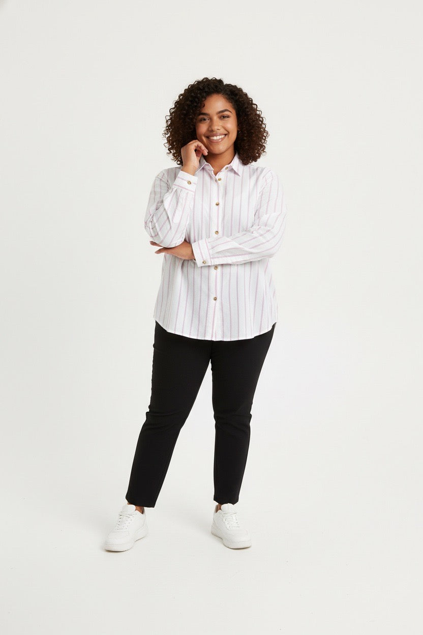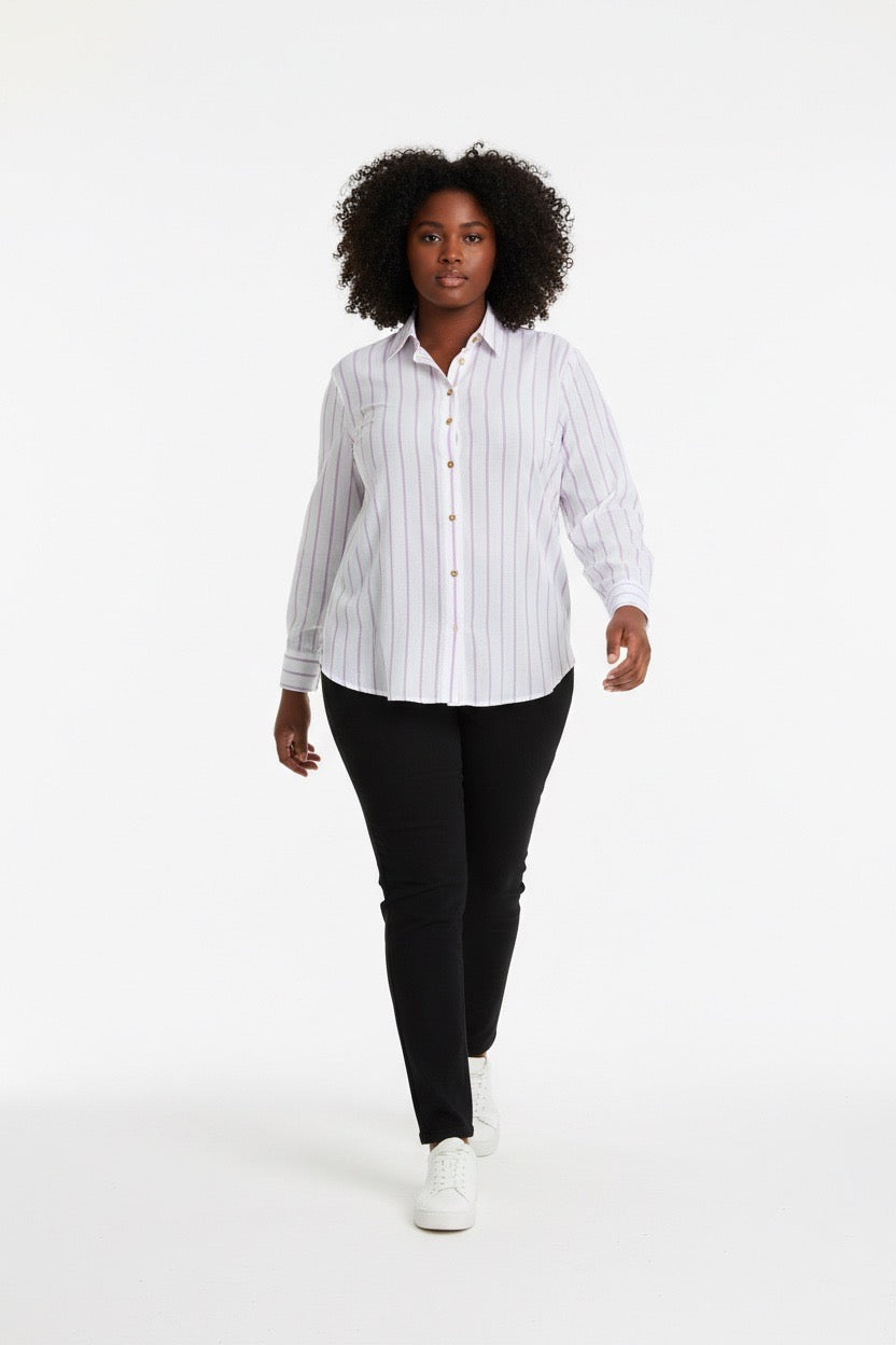Stylish Sisters Classic Button Down Shirt - White & Purple
