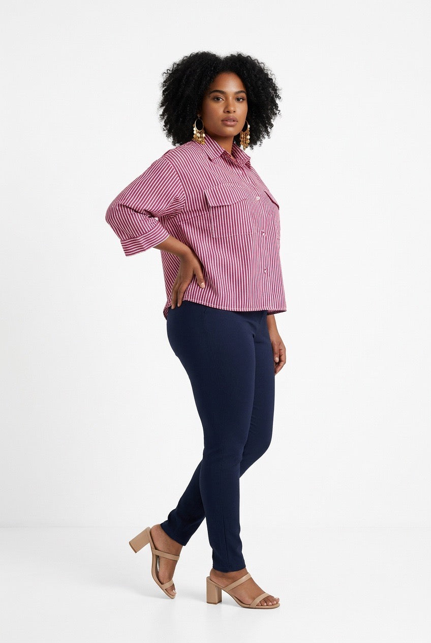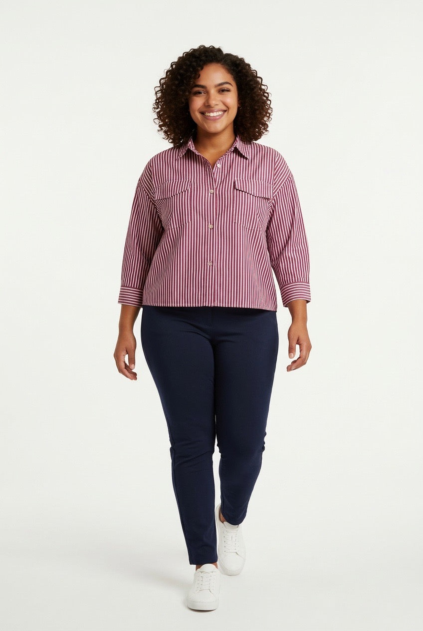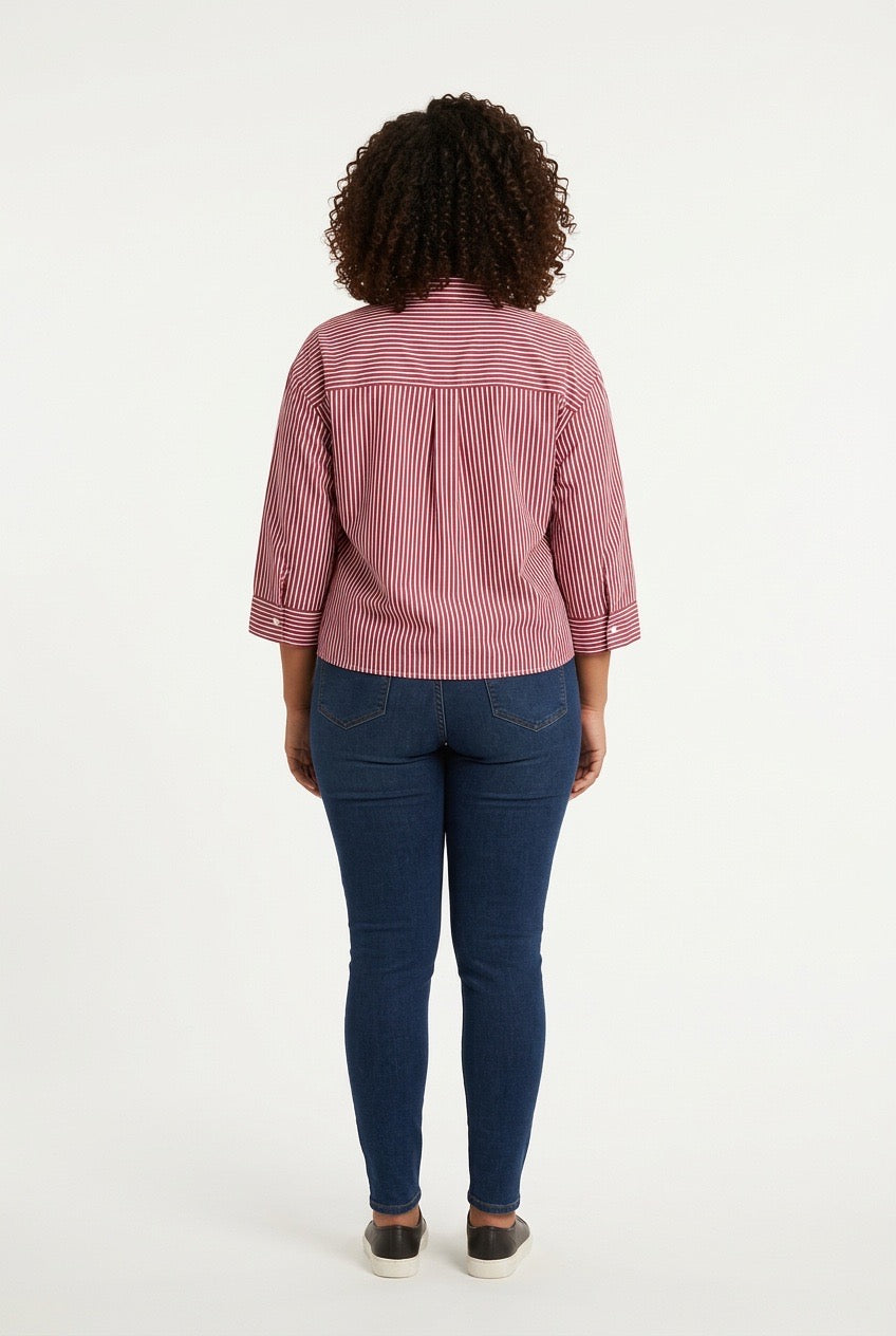 Stylish Sisters Classic Stripped Button Front Shirt - Red & White
