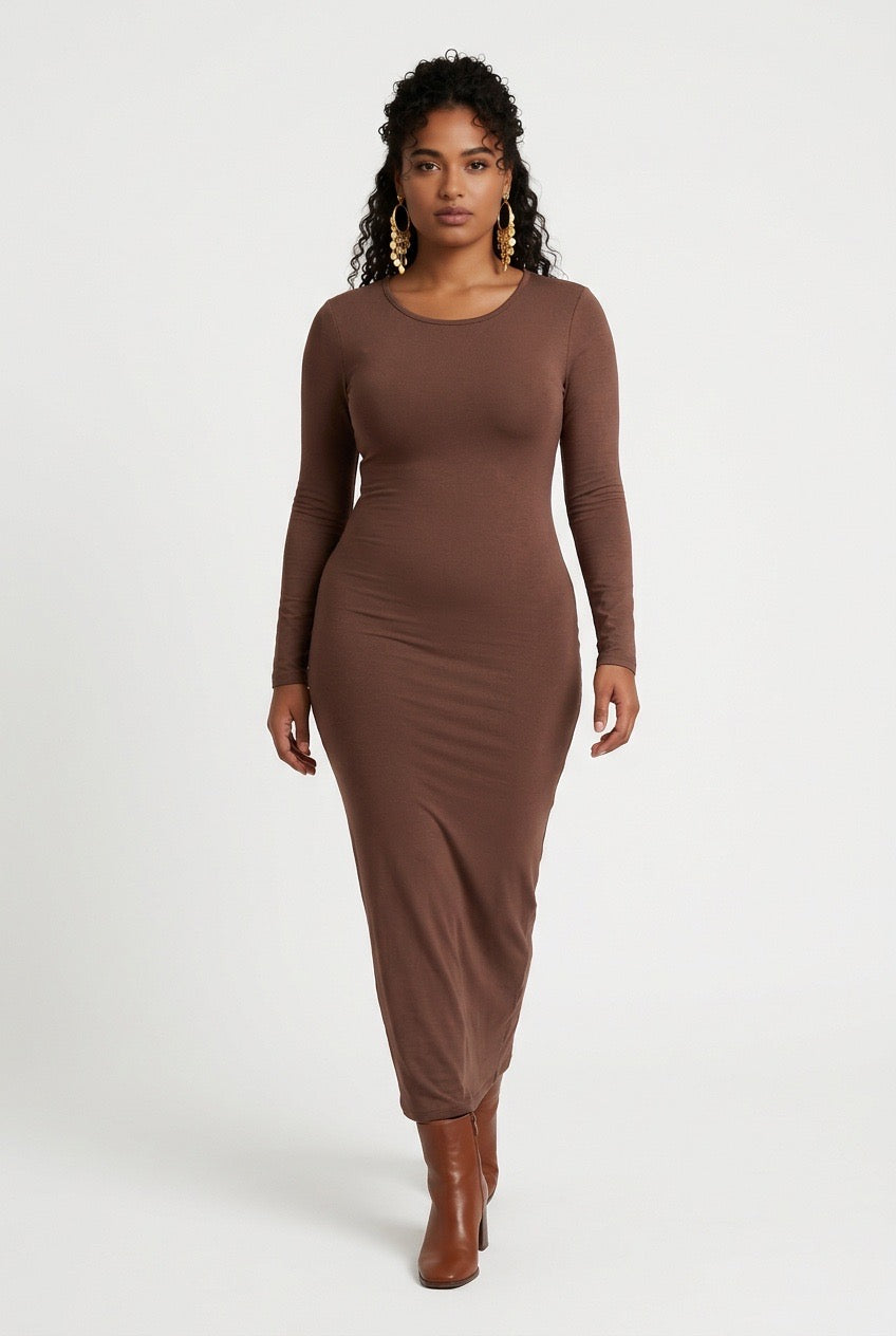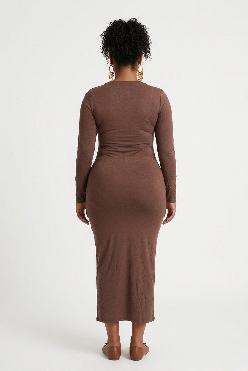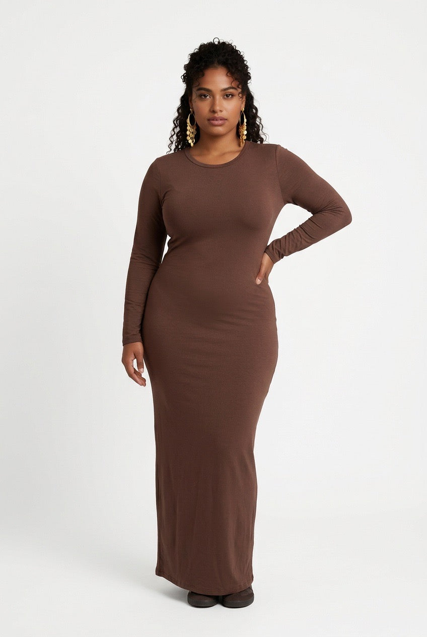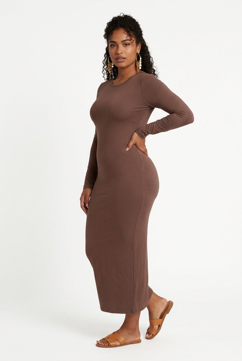 Stylish Sisters  Long-Sleeve Bodycon Maxi Dress - Brown