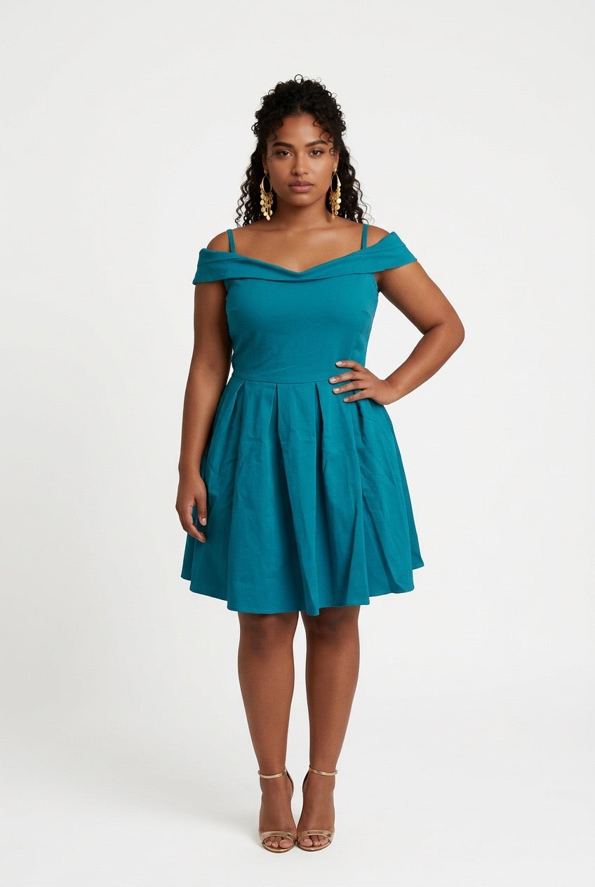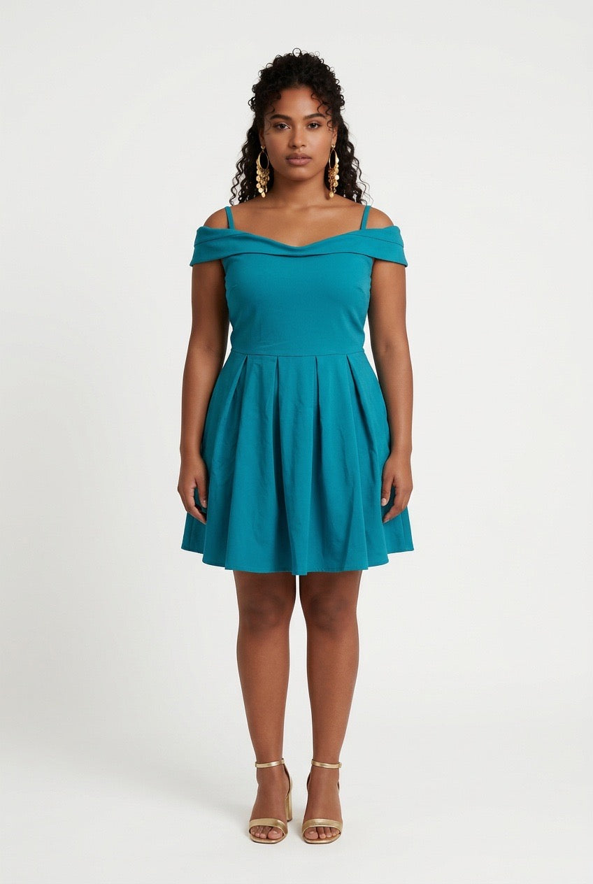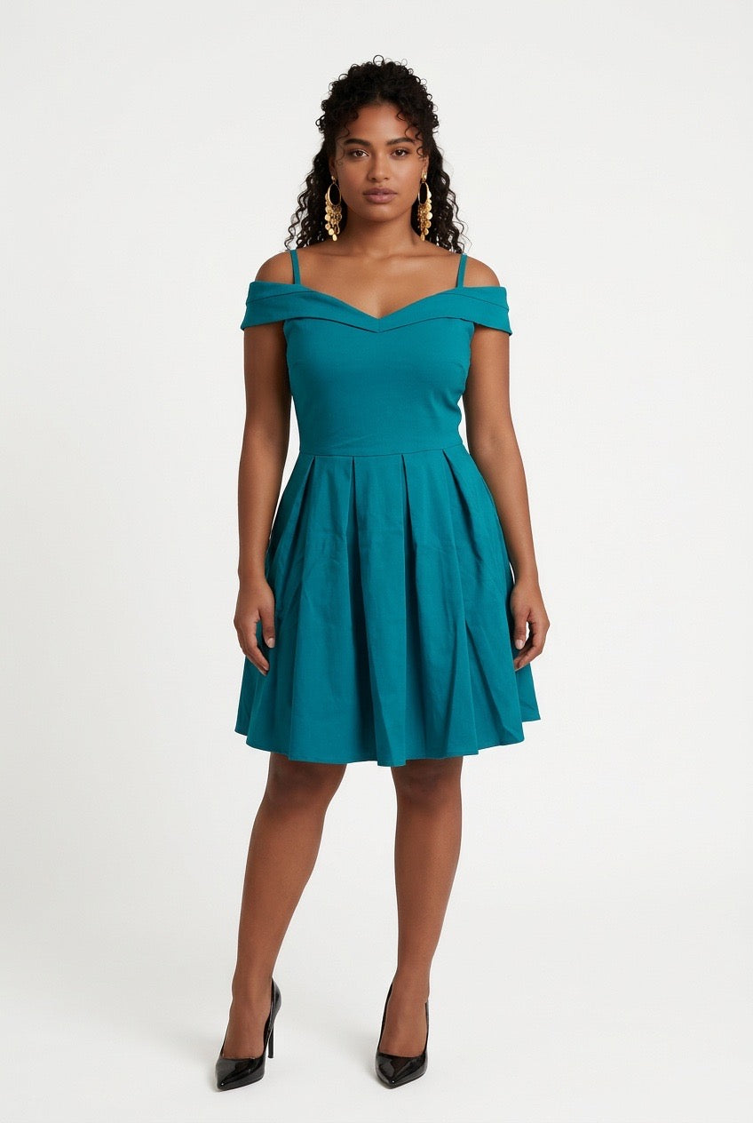 Item: Ladies Party Dress Summer Pleated High Waist Short Sleeve Dress.