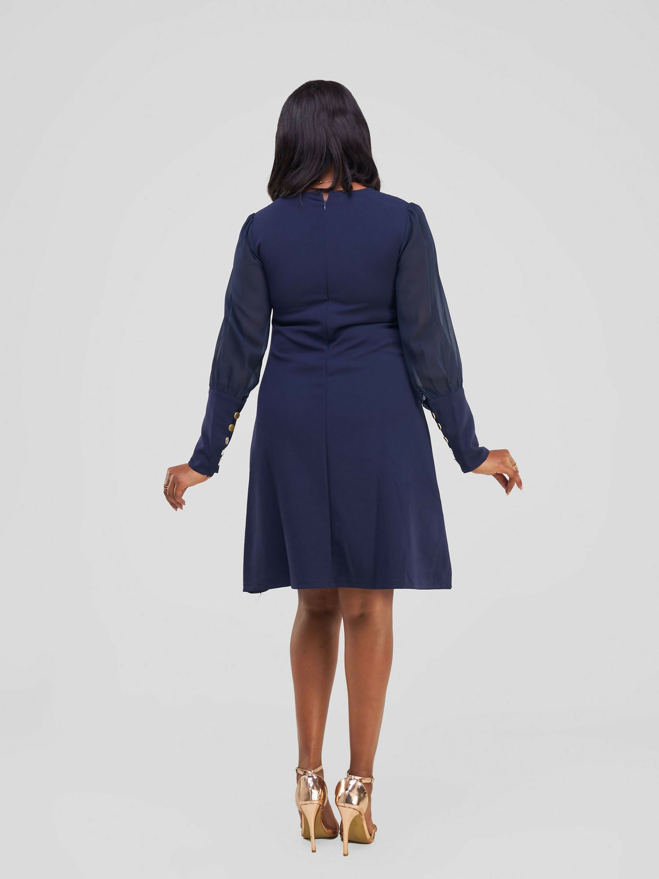 The dress fits perfectly. I love the buttons at the end of the sleeve which