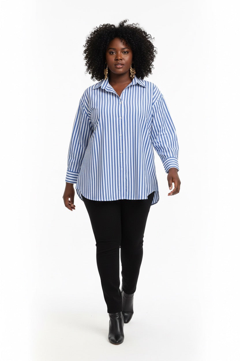 Stylish Sisters Striped Relaxed Fit Button-Up Shirt - Blue & White
