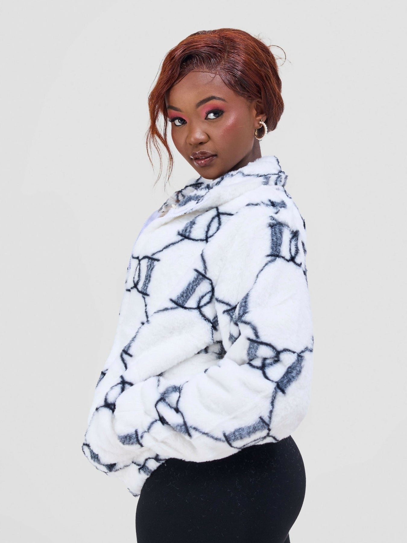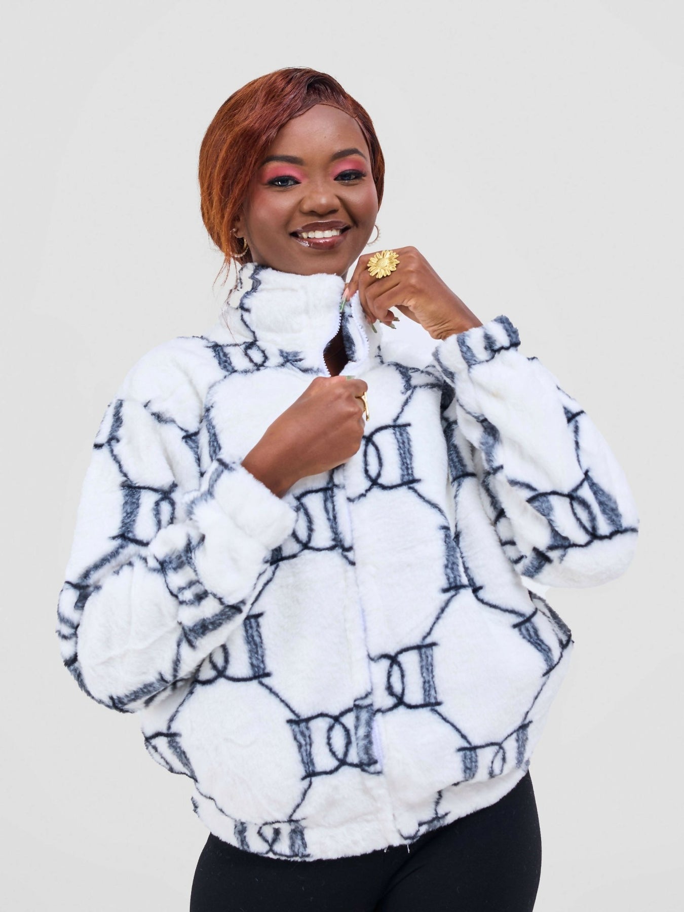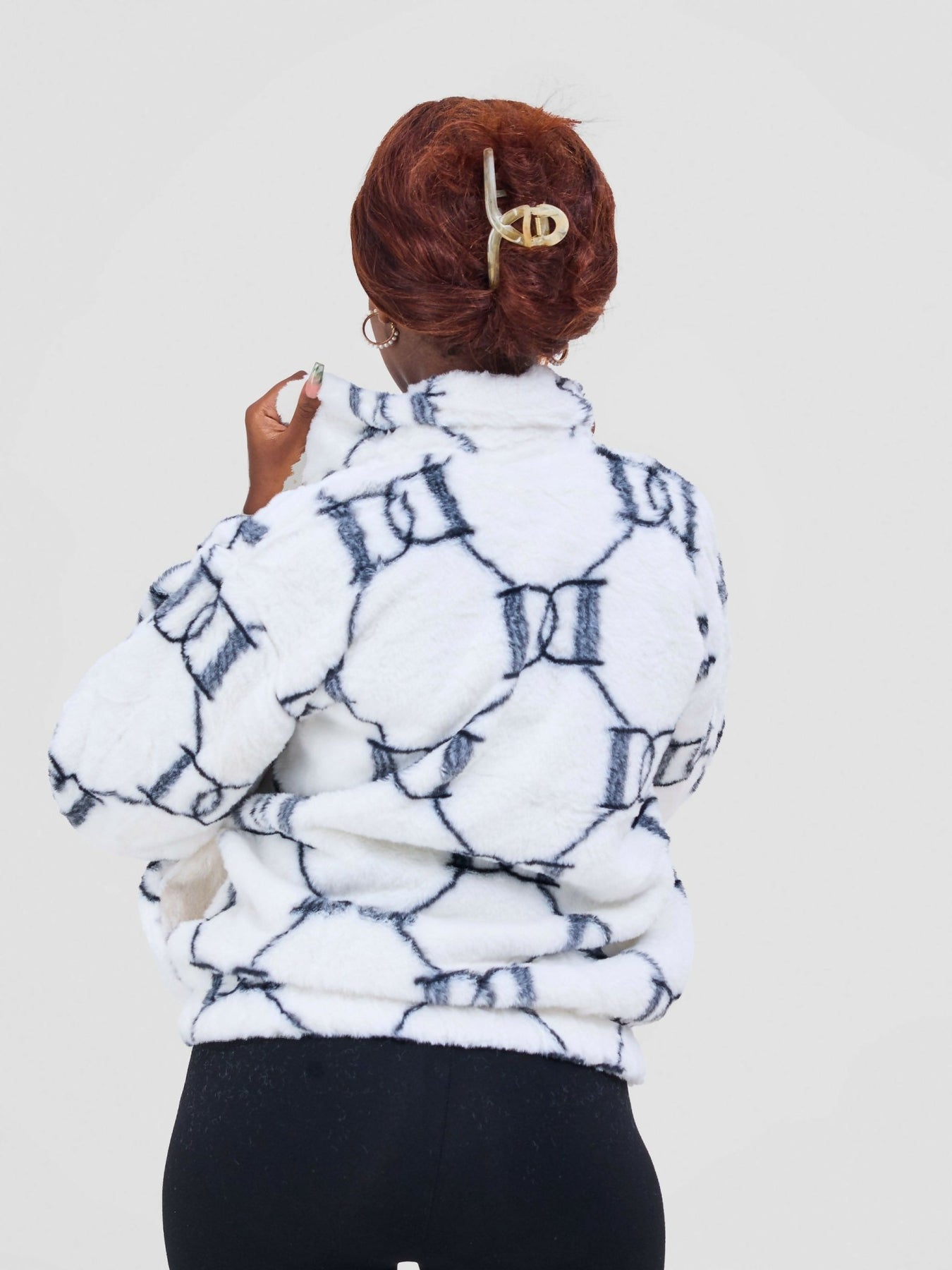 Stylish Sisters Warm Sweater Jacket - White / Black