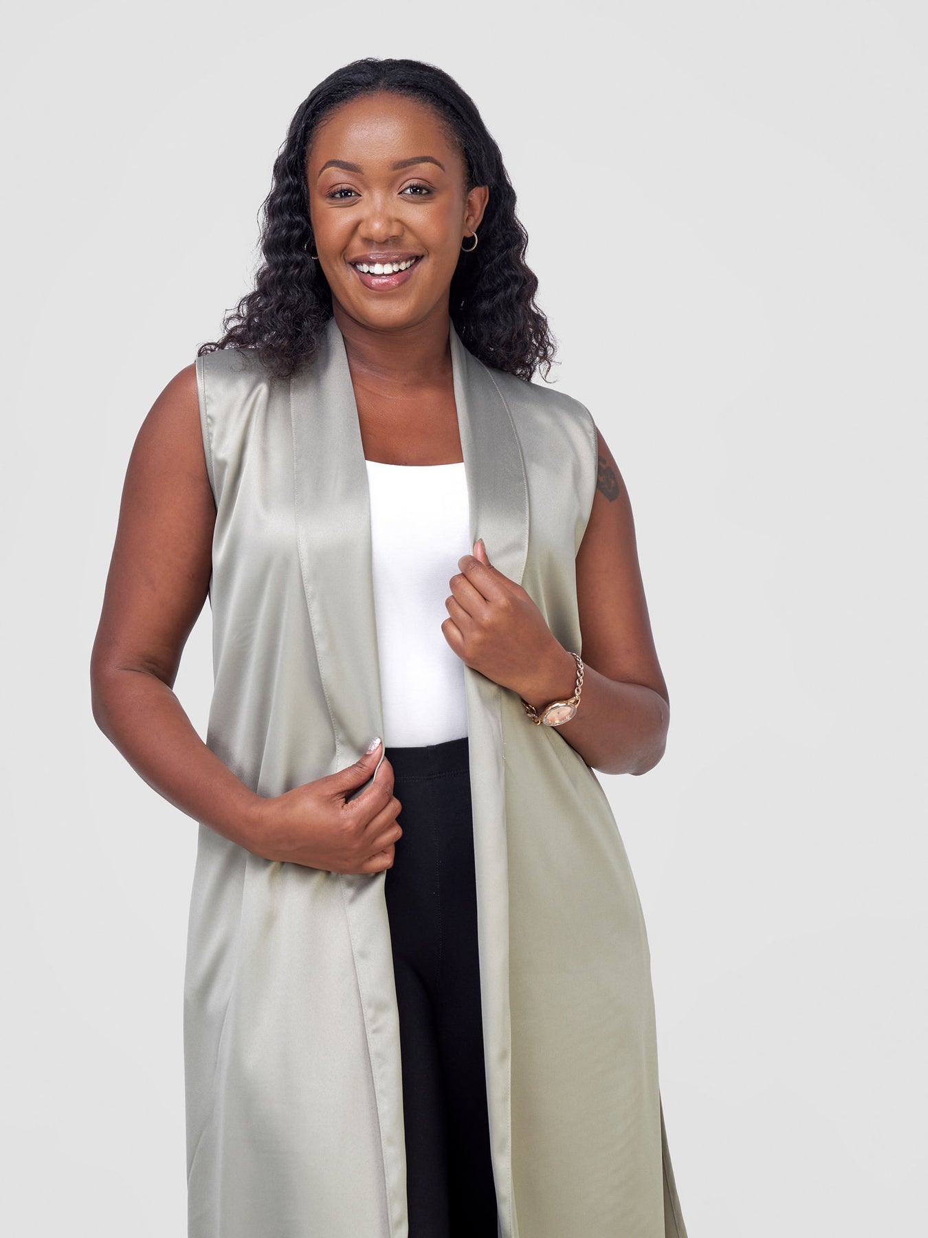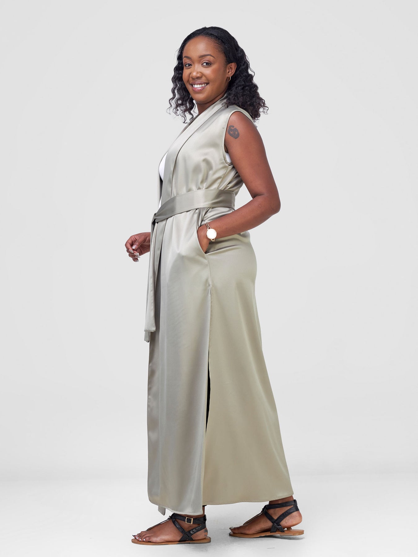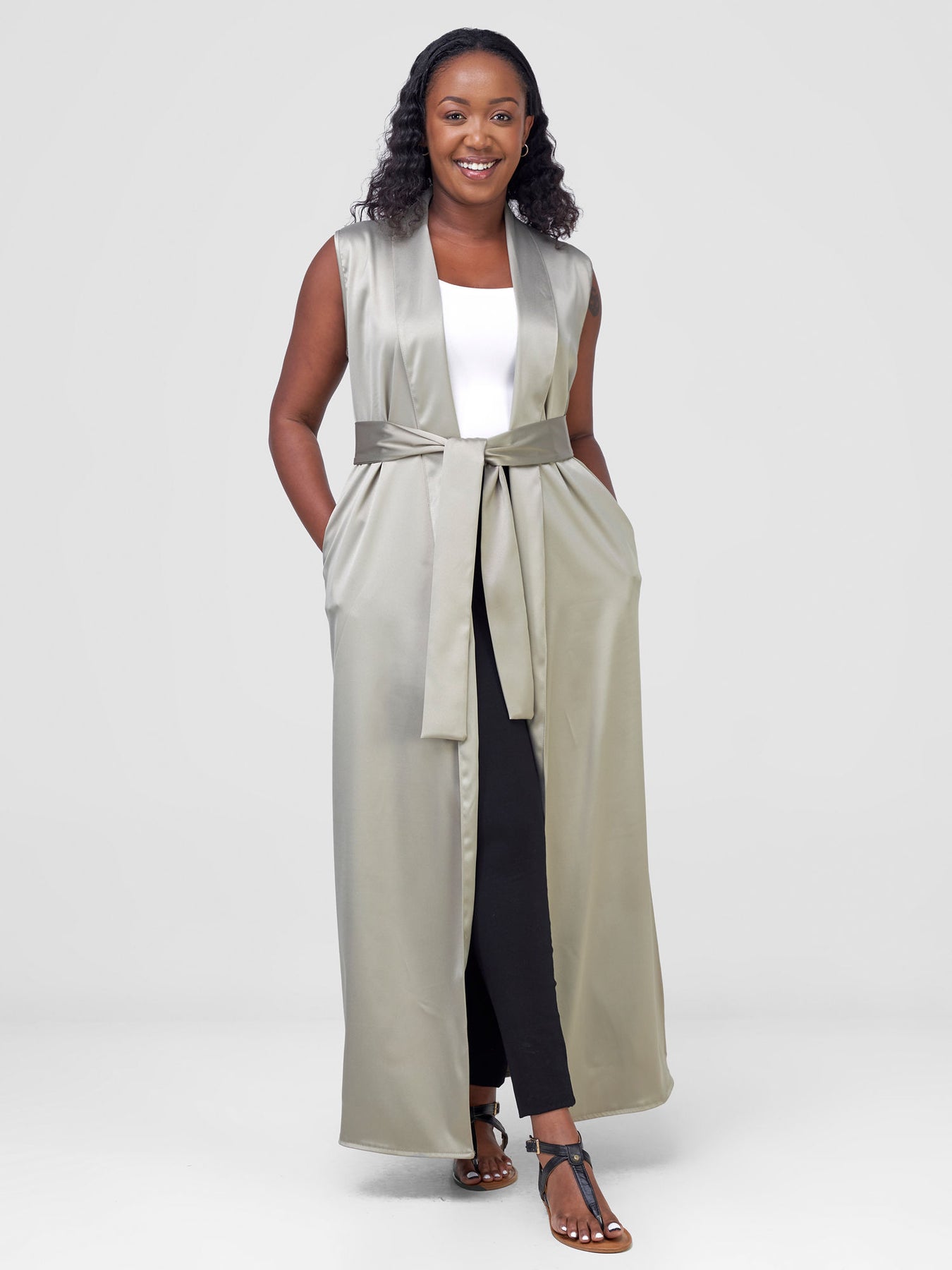 Introducing our fabulous sleeveless trench coat, the epitome of chic resort wear! Crafted with the finest materials, this sleeveless trench coat boasts a flawless blend of elegance and comfort. Pair yours with our coordinating Vivo Sanali Straight Leg Pants.