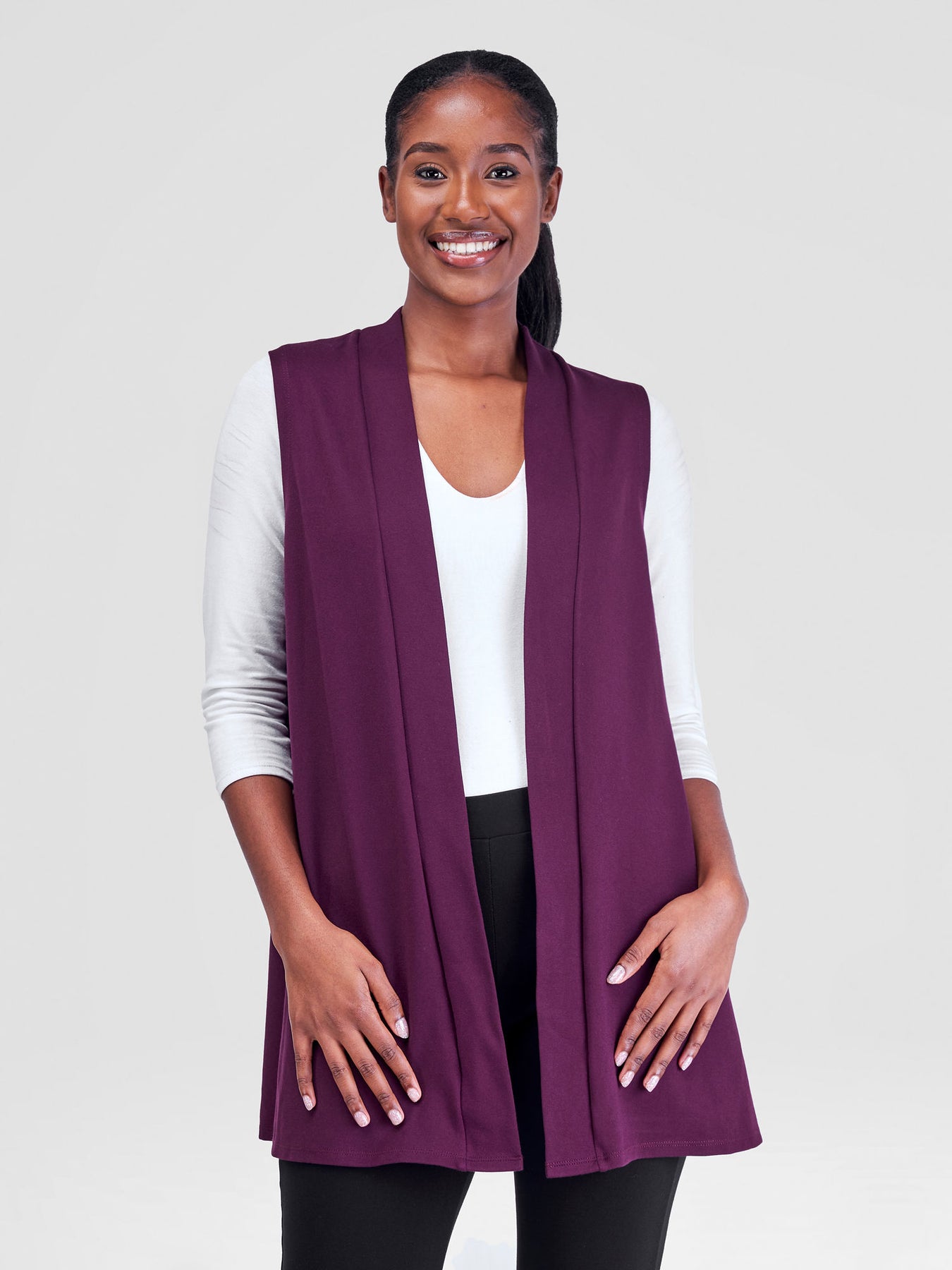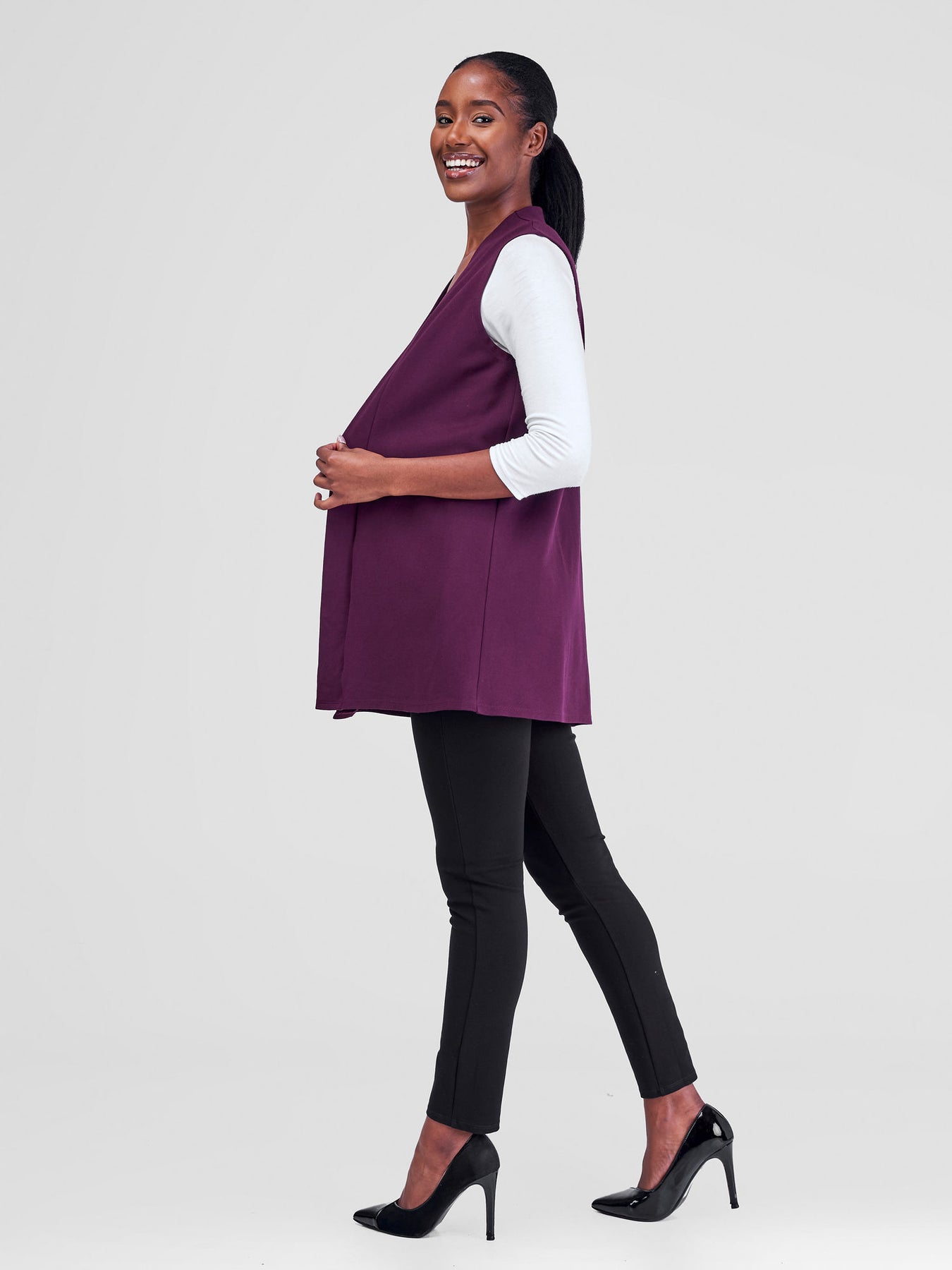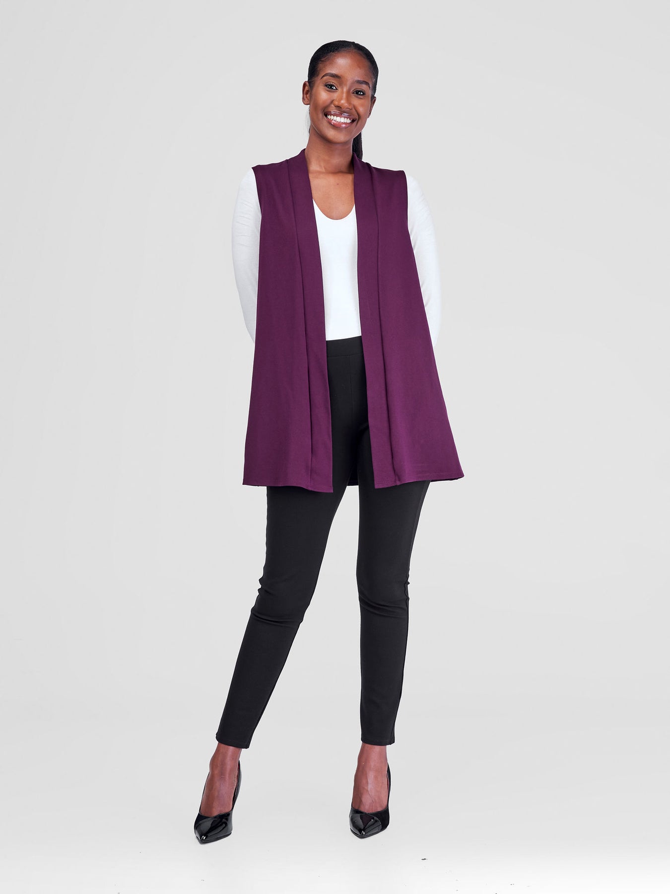 Introducing our versatile Sleeveless Overcoat, a must-have for your workwear collection. Perfect for layering over blouses or dresses, this overcoat adds a touch of sophistication to any outfit.