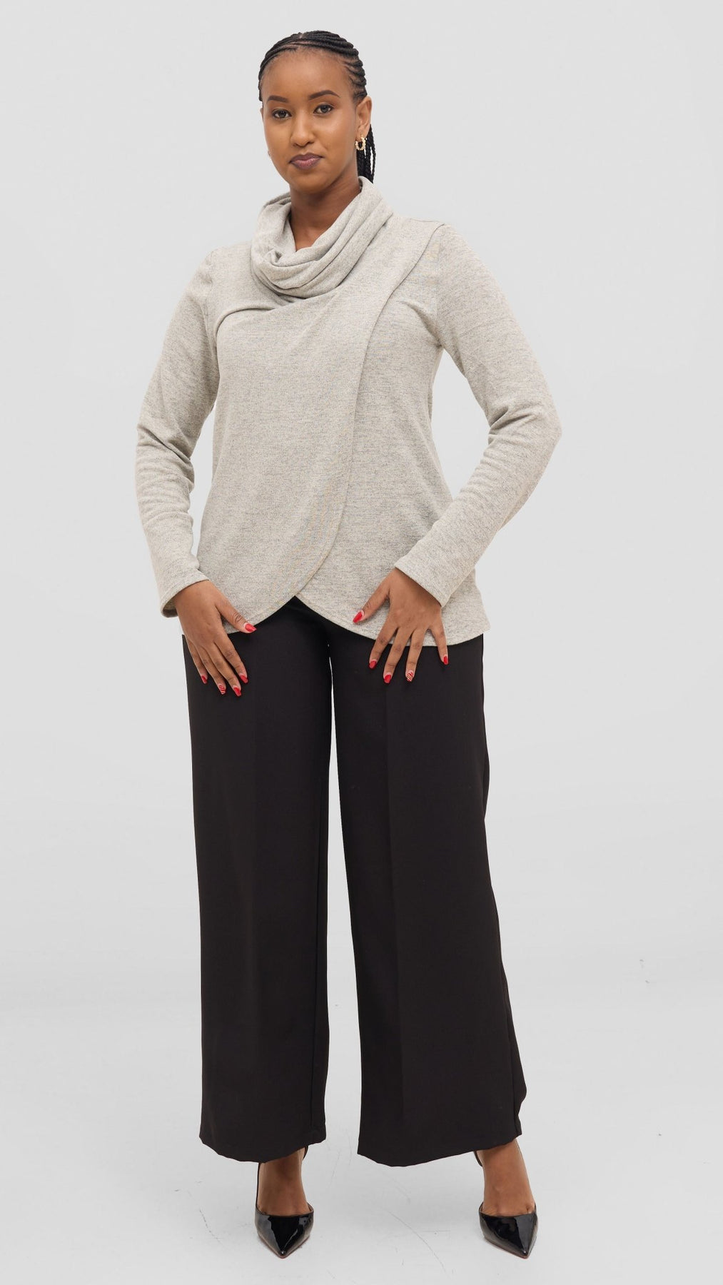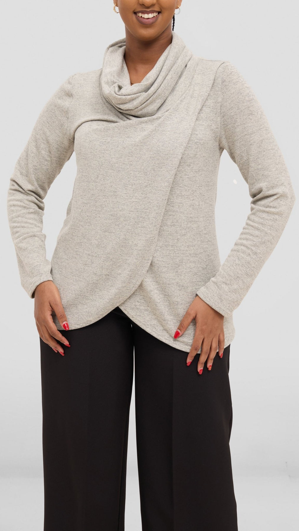 The Vivo Basic Tulip Sweater in grey features a stylish front overlap design, making it an excellent choice for layering during cold weather. Crafted for comfort and warmth, this sweater adds both functionality and a subtle elegance to your winter wardrobe. Its versatile color and design allow easy pairing with various outfits, ensuring you stay cozy without compromising on style.