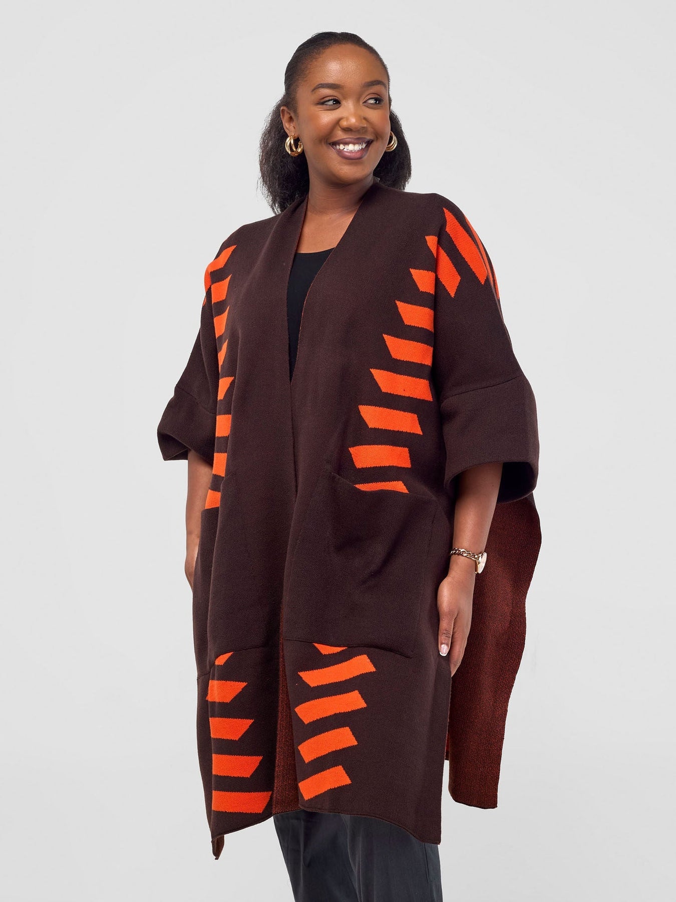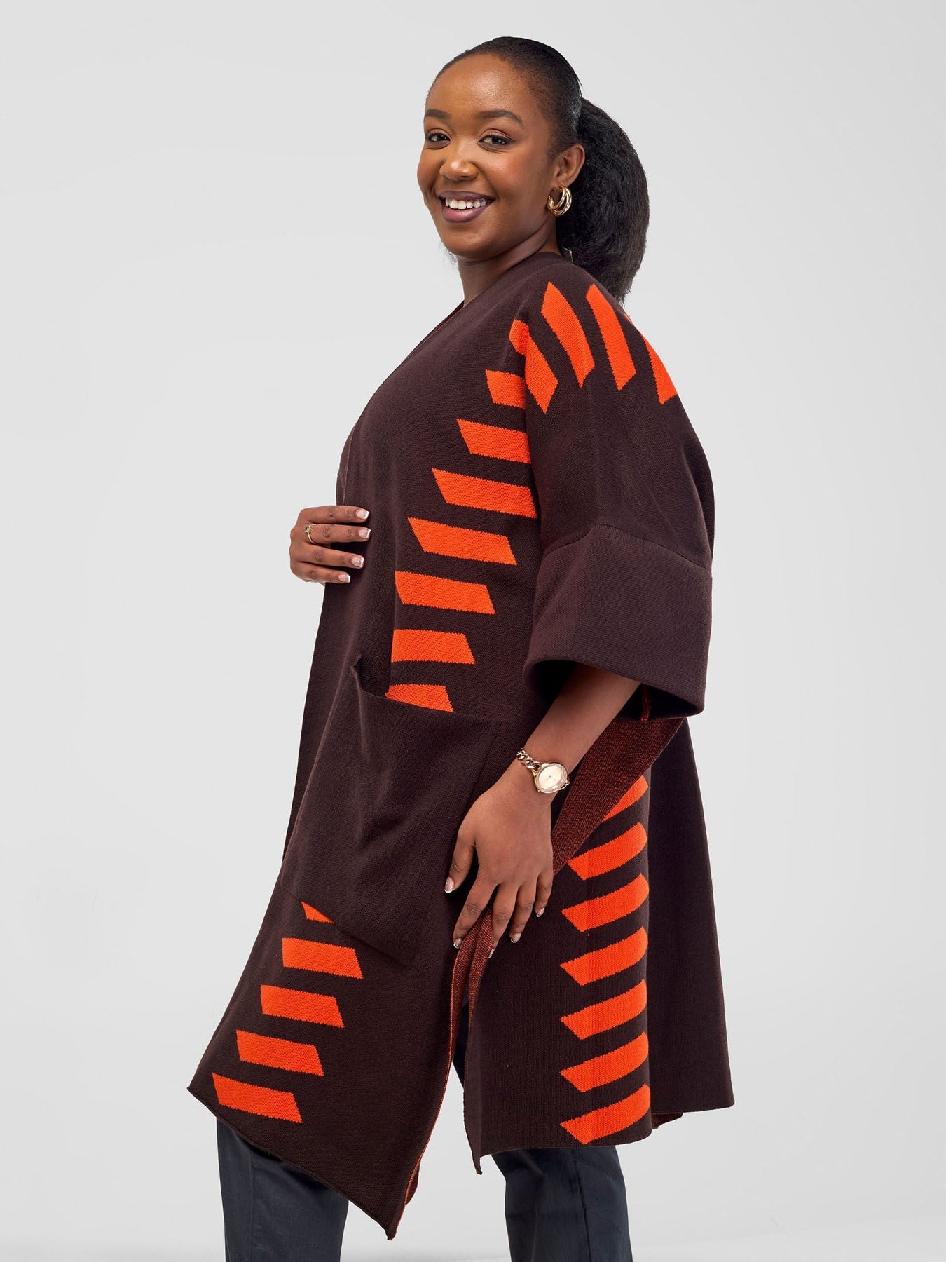 Safari Dila Poncho - Chocolate Brown / Tangerine - Shopzetu