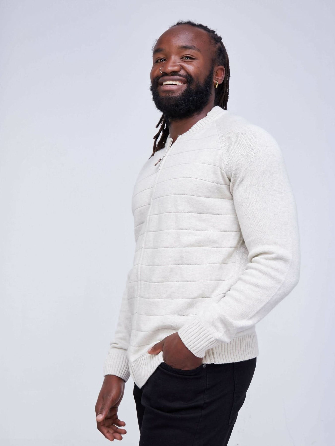 Zipped Cardigan - White - Shopzetu