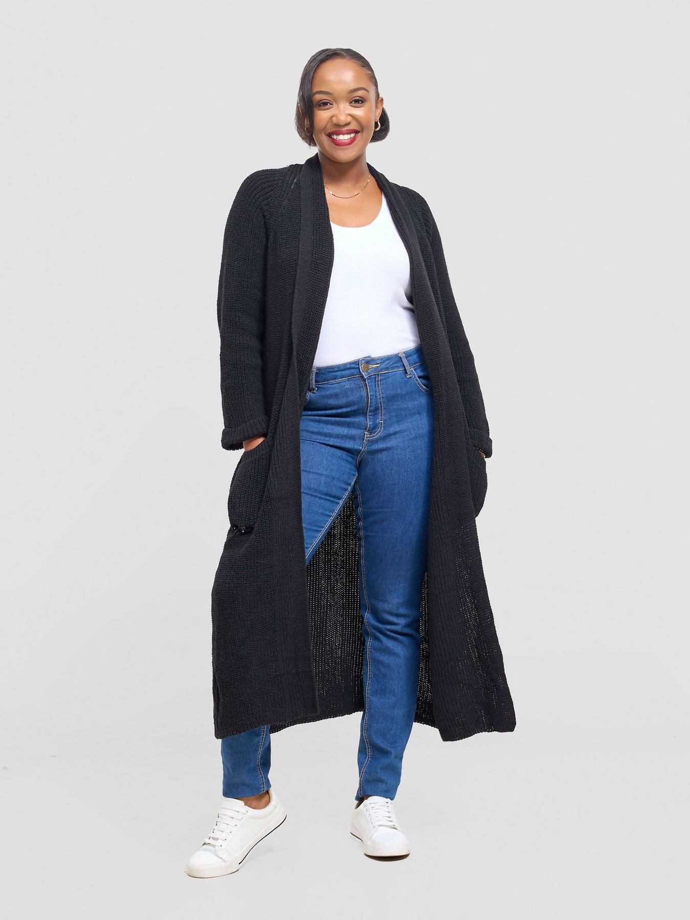 Anel's Midi Kimono Sweater is made to keep you warm and stylish all at the same time. The product is made from woolen material.