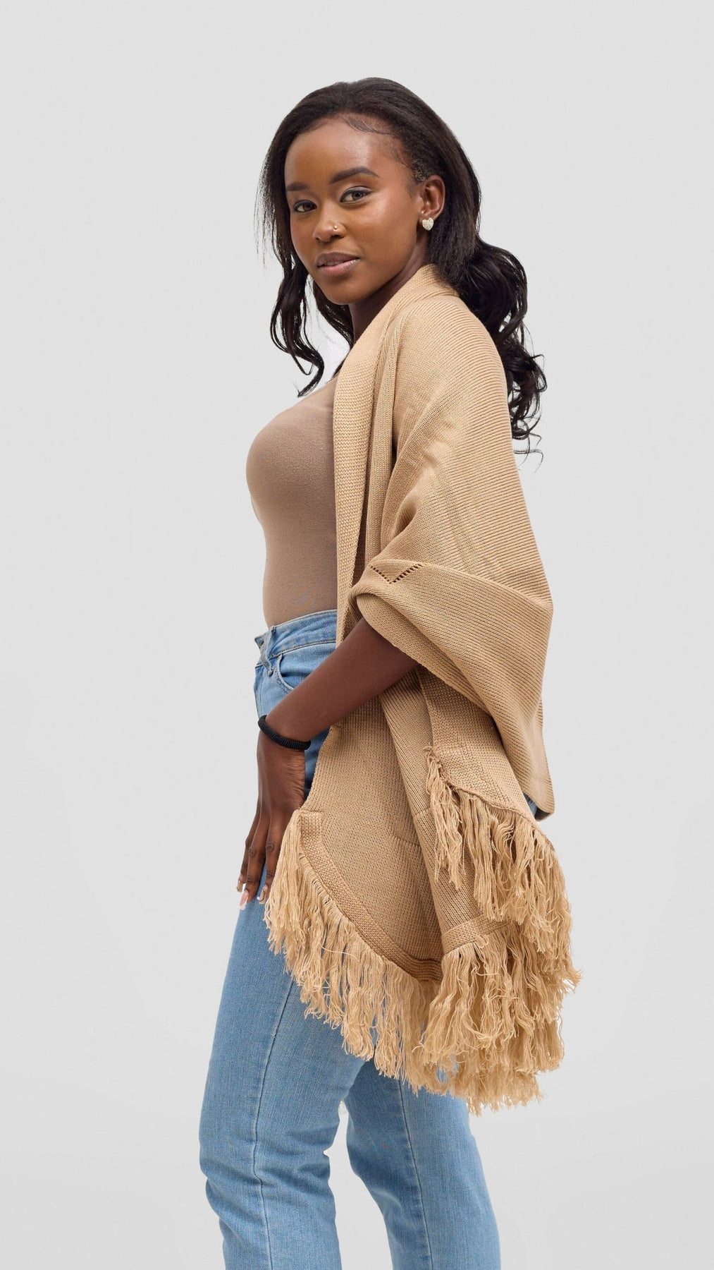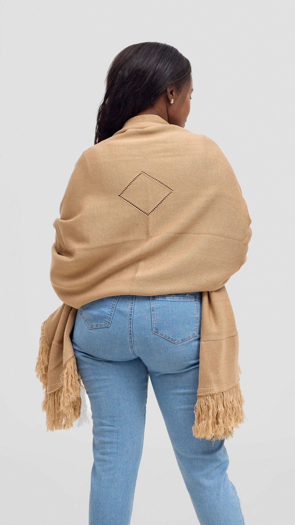 Anel's Knitwear Diamond Poncho is made to keep you warm and stylish all at the same time. The product is made from woolen material.