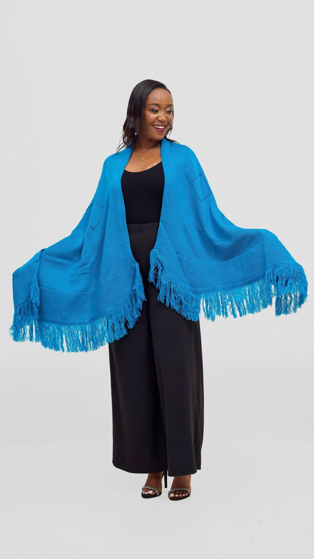 Anel's Knitwear Diamond Poncho is made to keep you warm and stylish all at the same time. The product is made from woolen material.