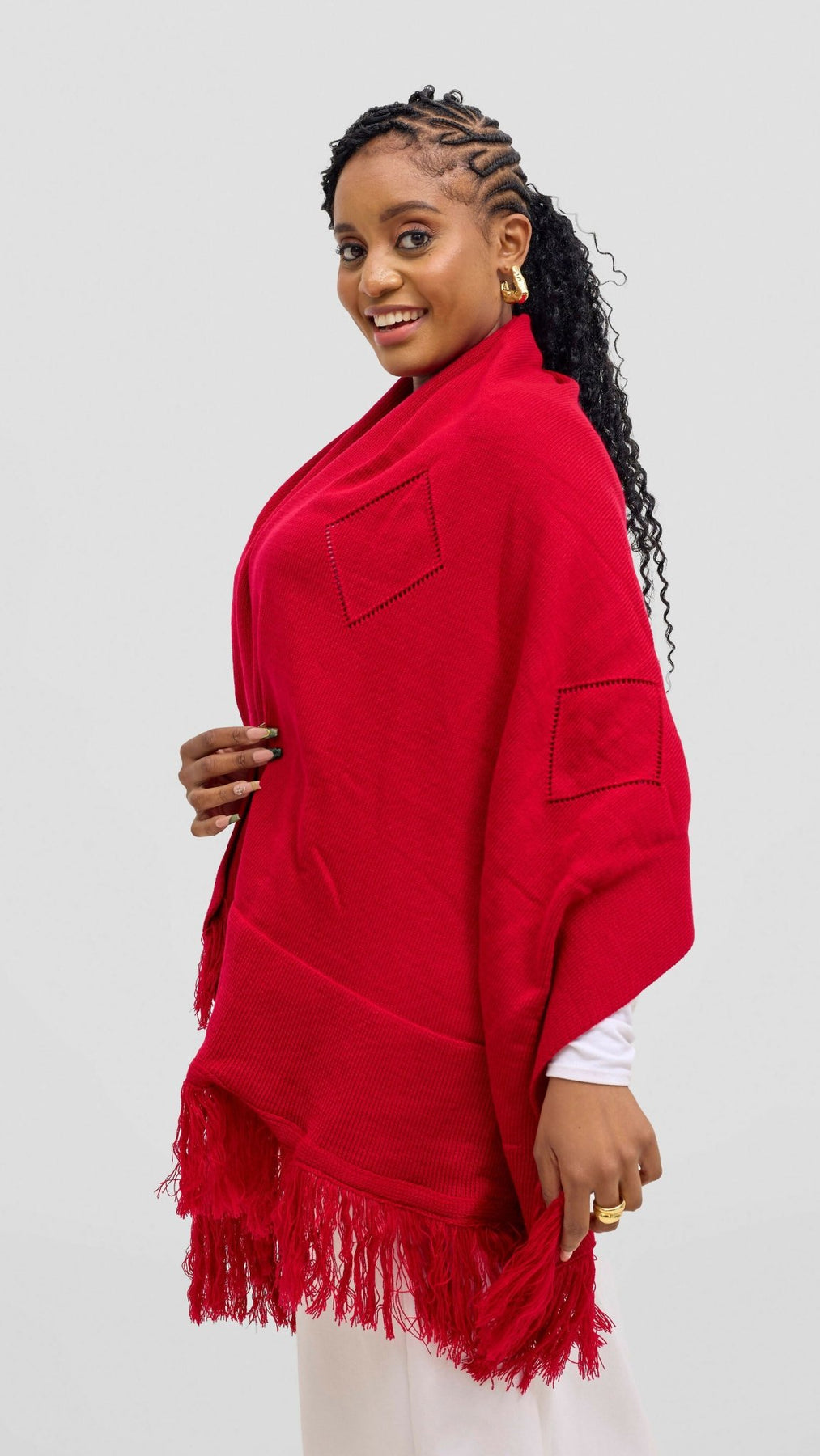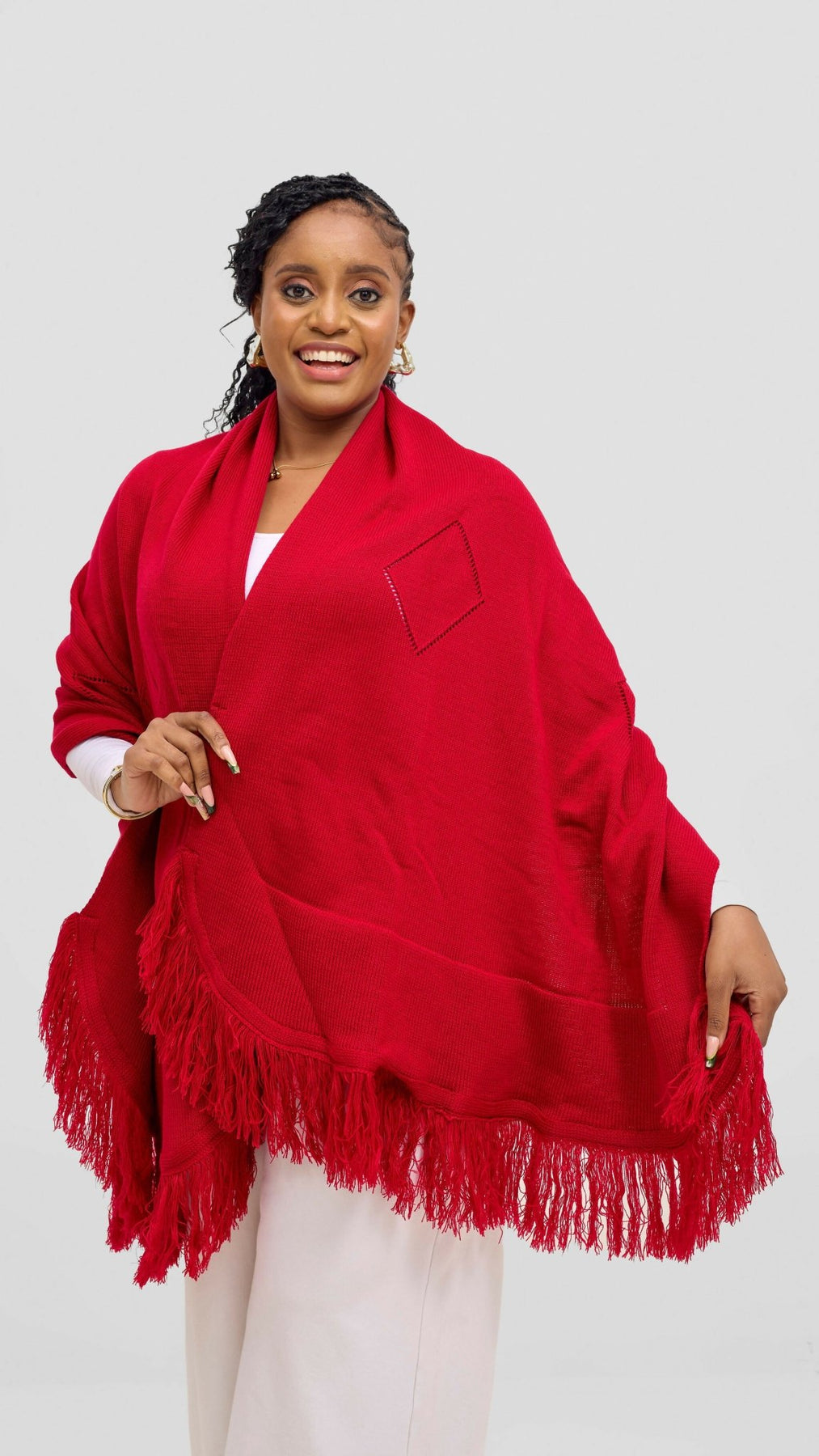 Anel's Knitwear Diamond Poncho is made to keep you warm and stylish all at the same time. The product is made from woolen material.