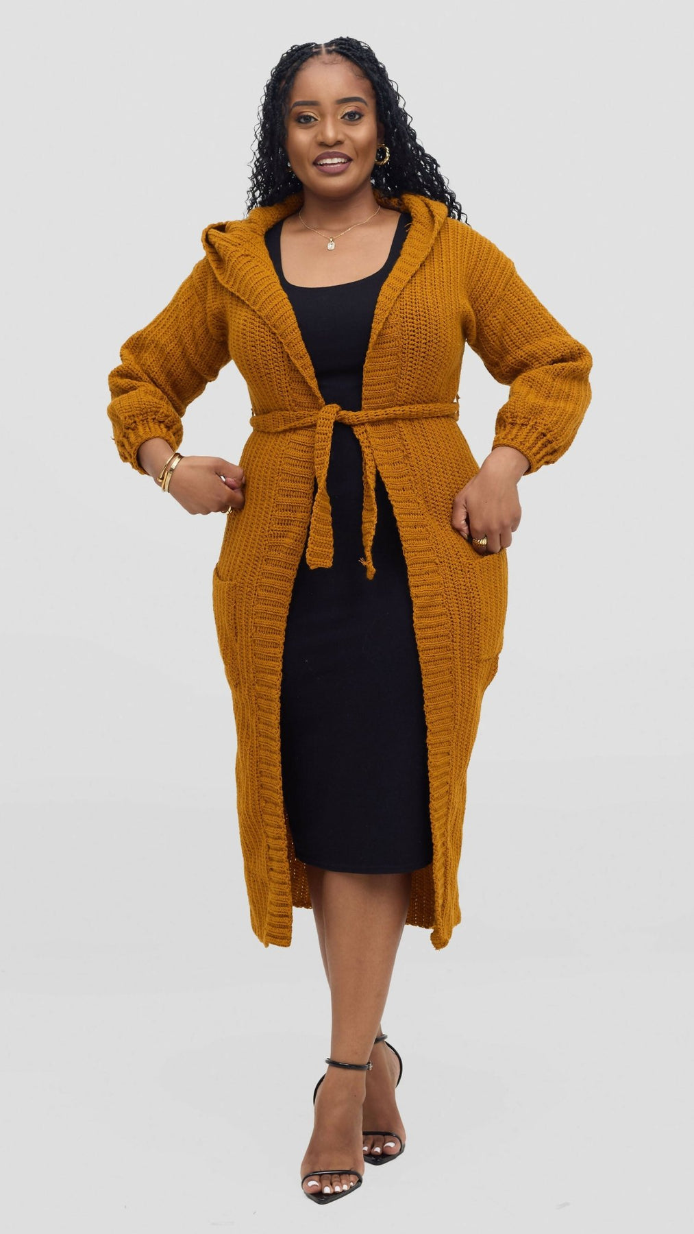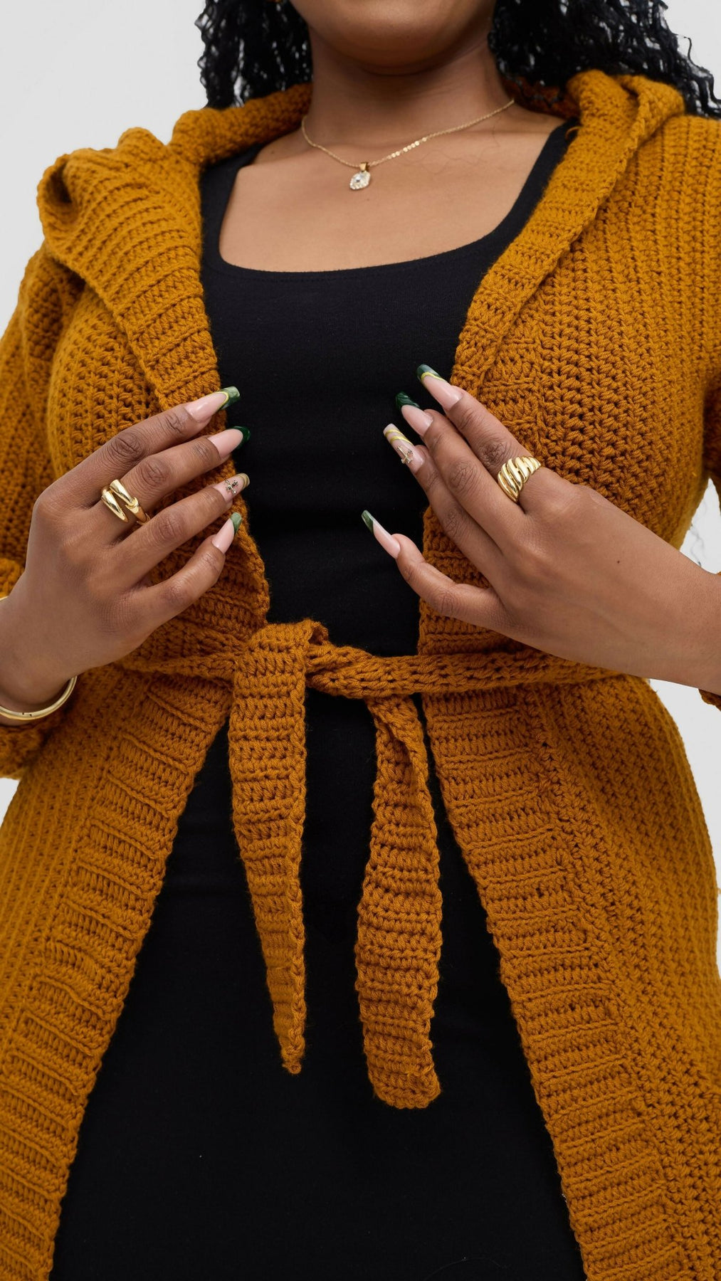 The tight knots you noticed are actually a result of our quality craftsmanship. We use high-grade threads and a firm knit to ensure durability and longevity. without compromising quality. Step out in friendliness and style with the Timyt Urban Wear hooded cardigan, a cozy longline hooded cardigan handcrafted with love. Featuring a belted waist, deep side pockets, and a soft hood, this crochet cardigan is perfect for layering on chilly days. The rich mustard color adds a bold, earthy tone that pairs effortlessly with both casual and smart-casual outfits.