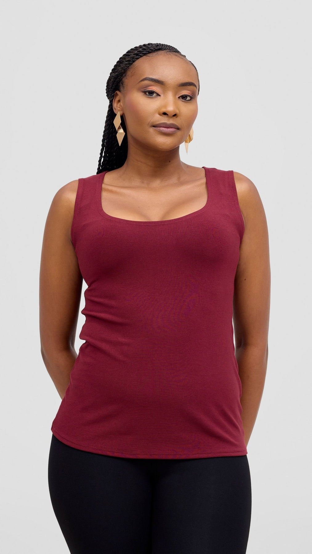 Vivo Basic Val Tank Top - Maroon - Shopzetu