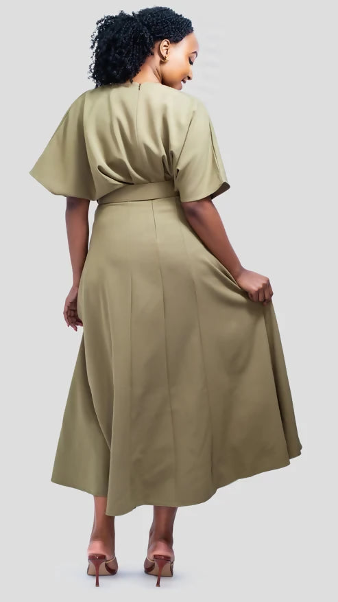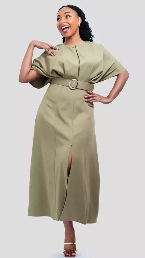 The Fashion Frenzy Belted Midi Dress - Green