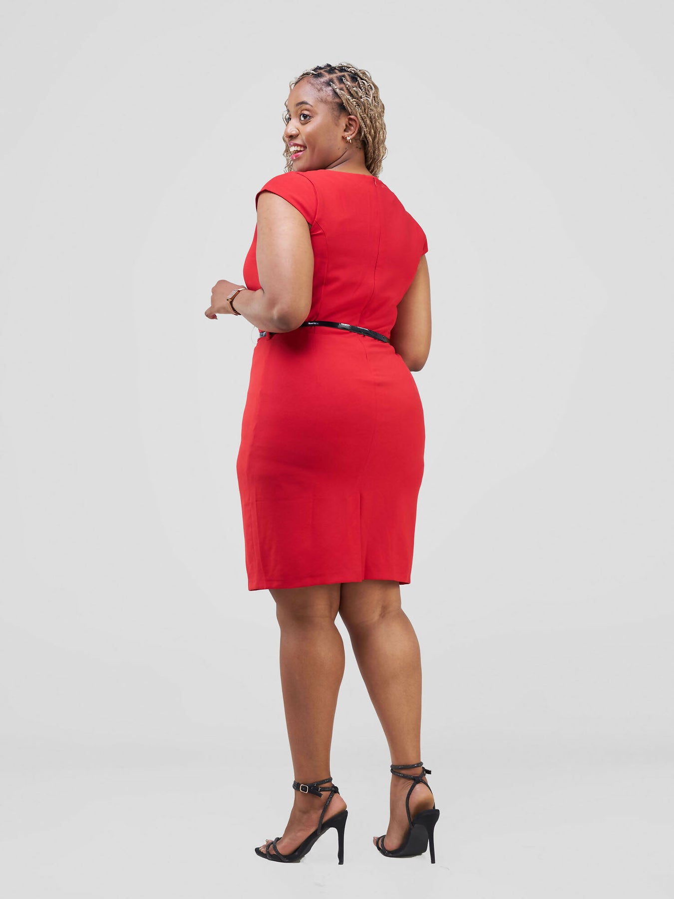 This red peplum dress adds a bold pop of color to your wardrobe with a flattering silhouette. The waist enhances your shape, while the peplum flare offers a stylish, feminine touch. Perfect for both professional settings and evening outings.