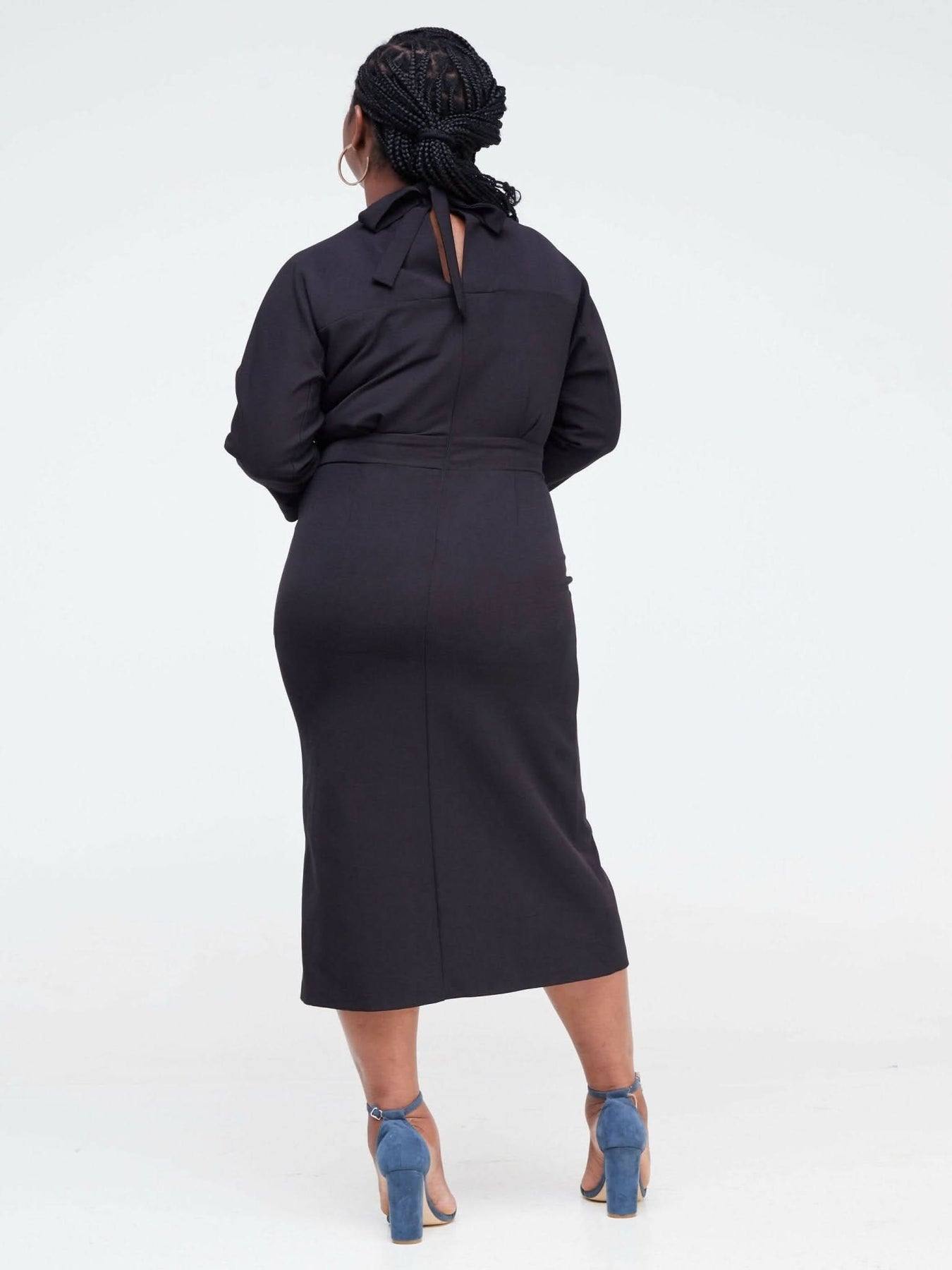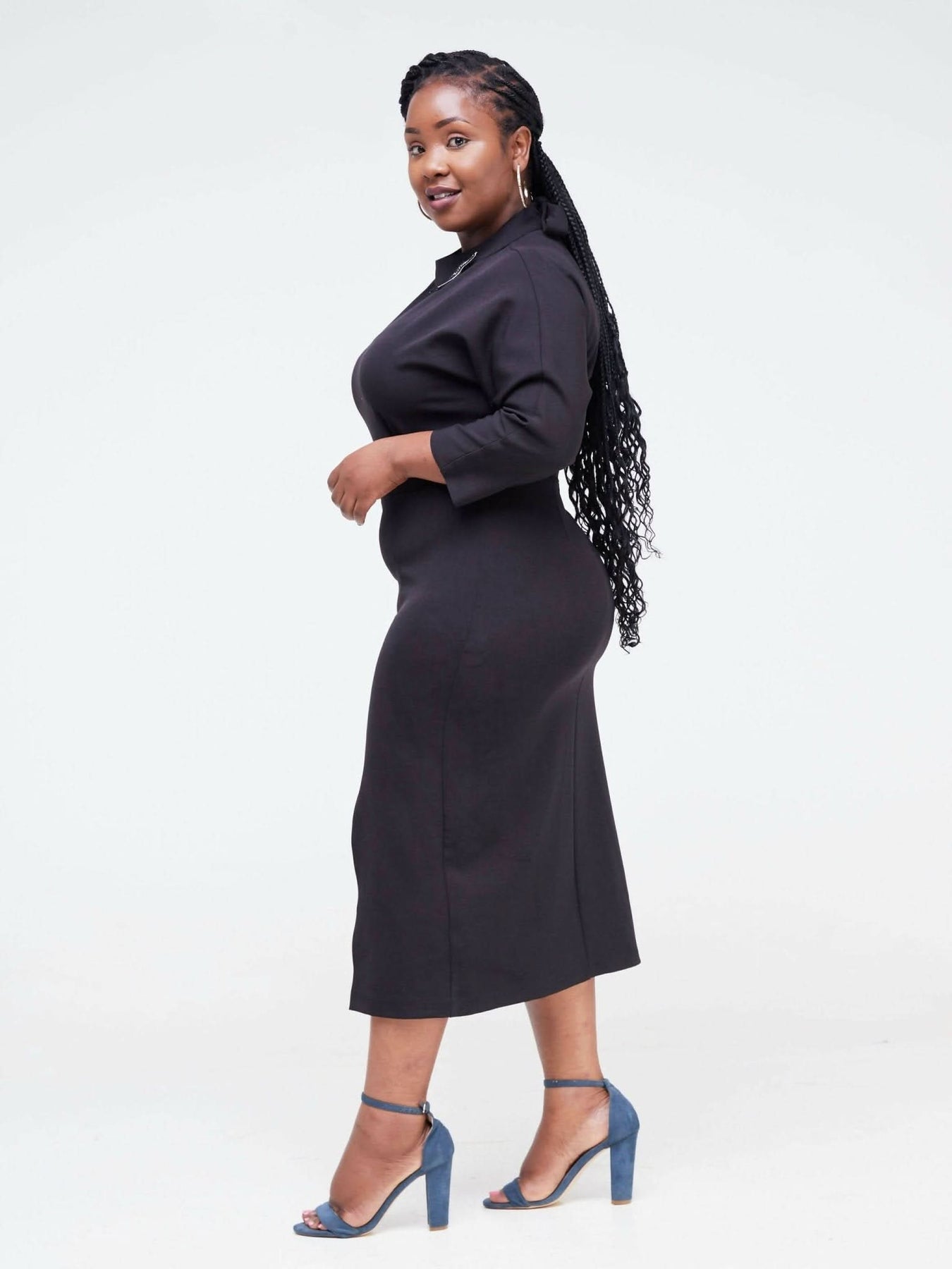 Stand out from the crowd this season with this official black front slit dress from Fashion Frenzy. Designed to flatter every body type and make you feel beautiful as you maneuver through the corporate world. Our dress will ensure you’re the best-dressed lady in the room. Pair with some barely heels and a matching bag and you’re good to go!