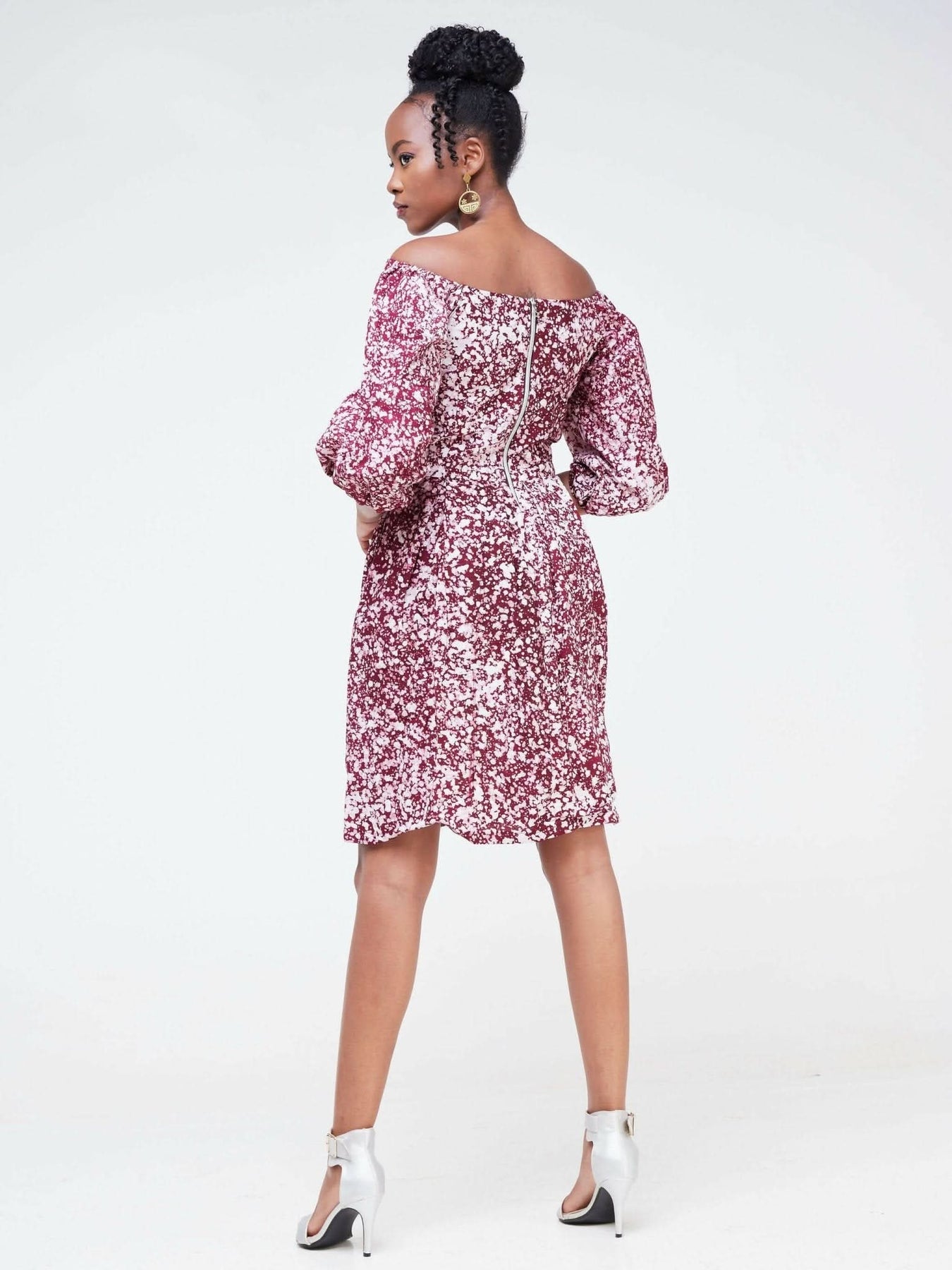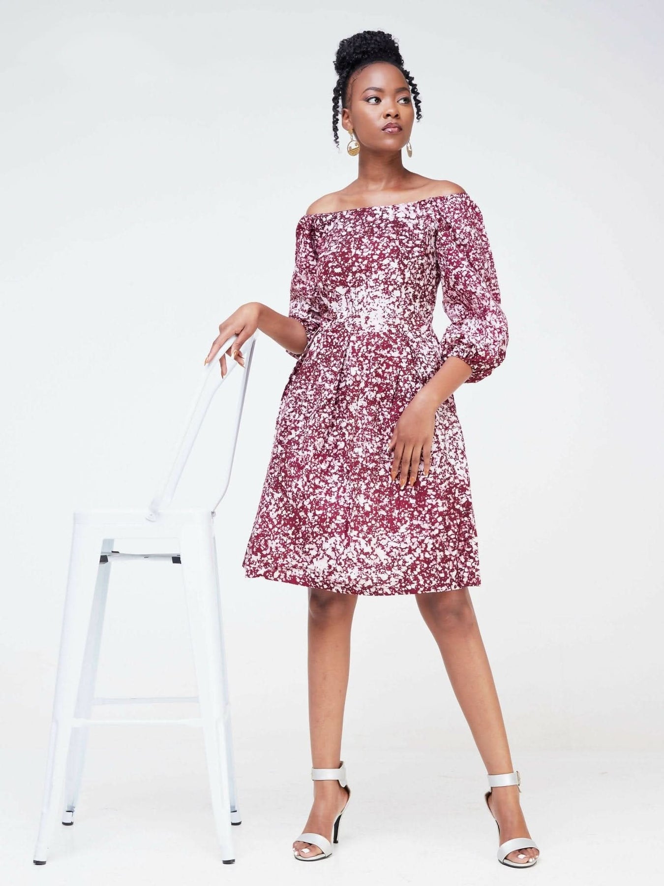 The Fashion Frenzy Keino Off Shoulder Skater Dress - Maroon - Shopzetu