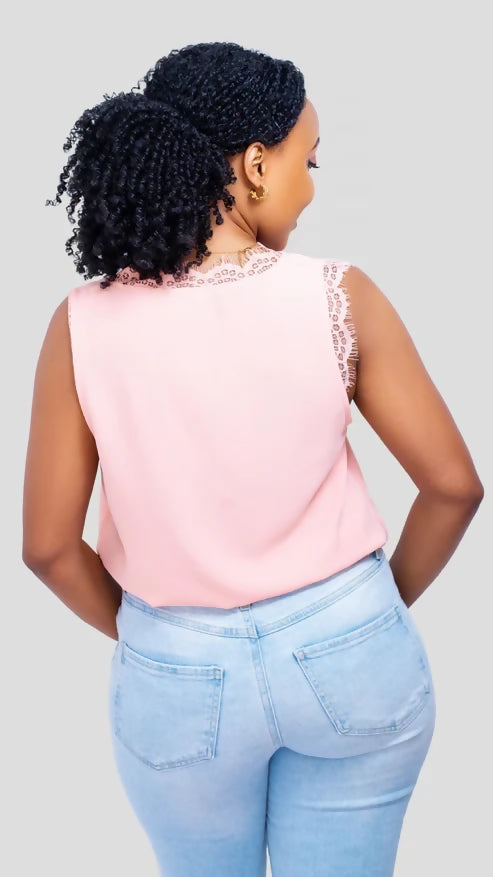 The Fashion Frenzy Lace Trim Sleeveless Top – Pink