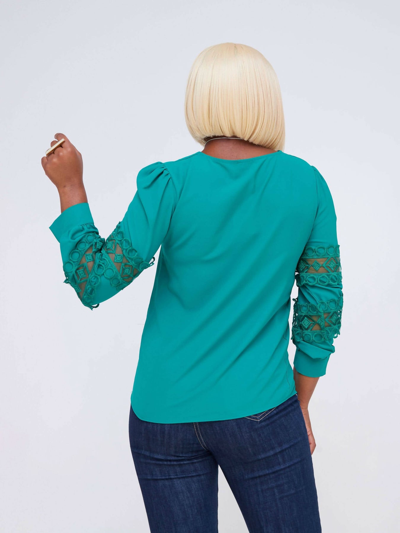 The Fashion Frenzy Laced Blouse - Jungle Green - Shopzetu
