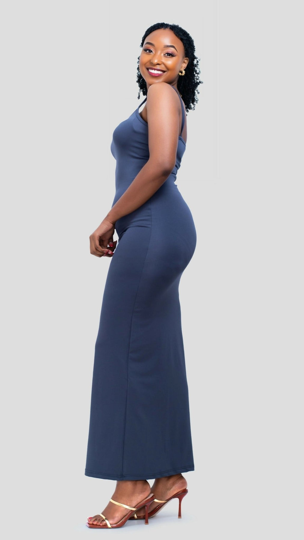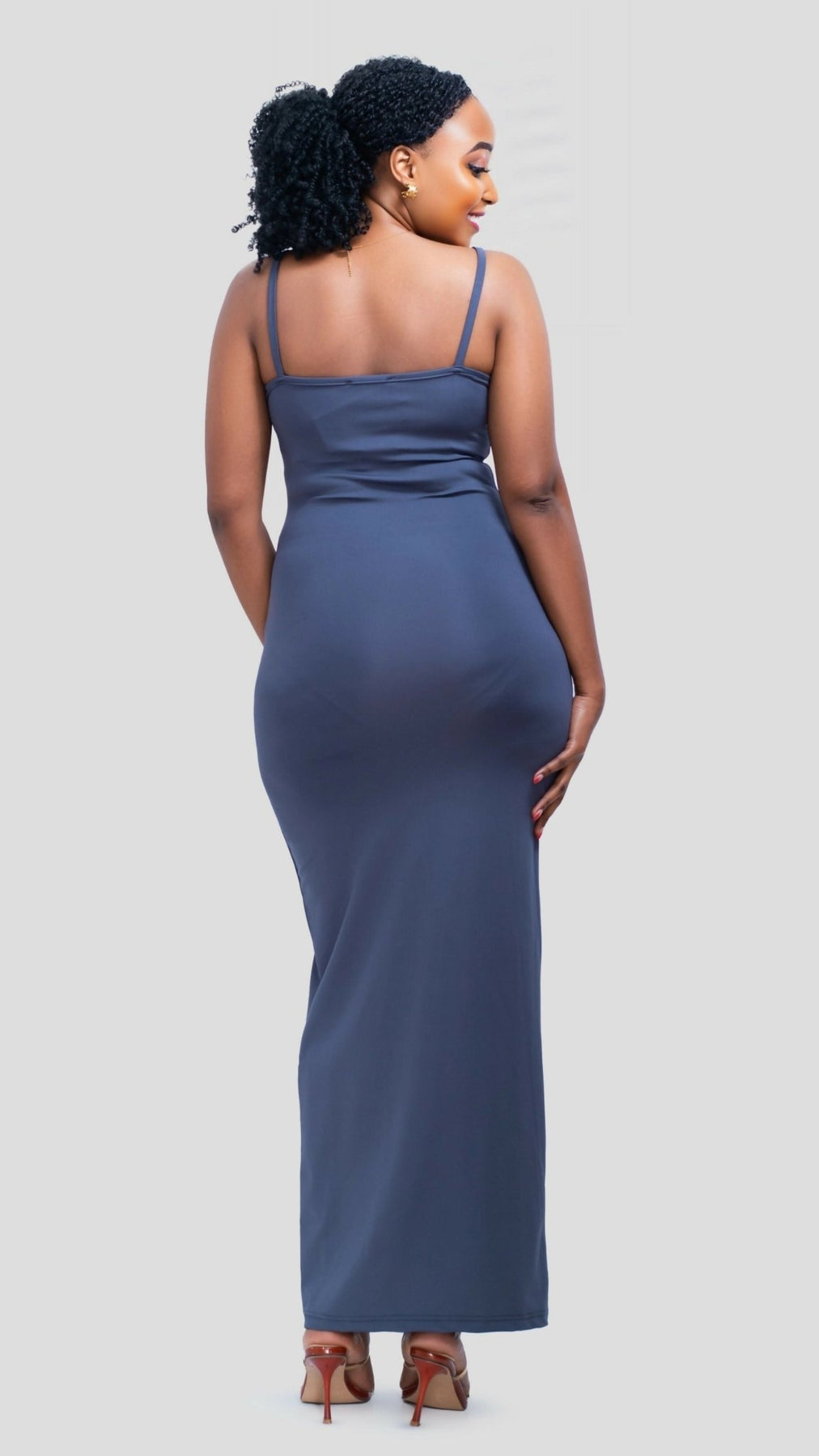 Turn heads effortlessly with our Grey Luxe Bodycon Maxi Dress. Crafted for the modern woman who loves elegance with ease, this figure-hugging silhouette is designed to flatter your curves in all the right places. Featuring soft, stretch-knit fabric, dainty spaghetti straps, and a smooth finish, this minimalist yet striking brown dress transitions seamlessly from day to night.