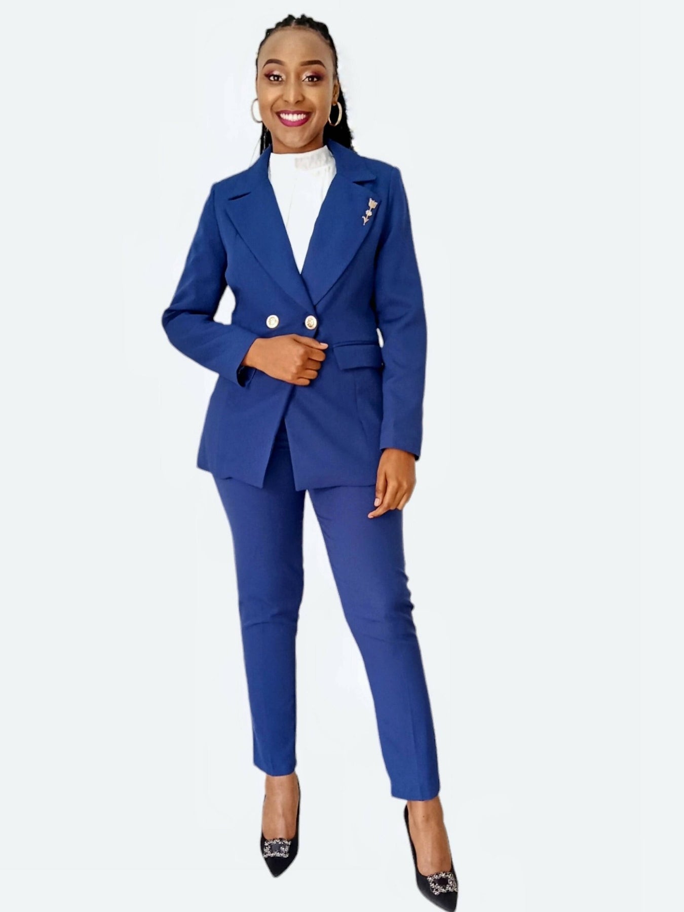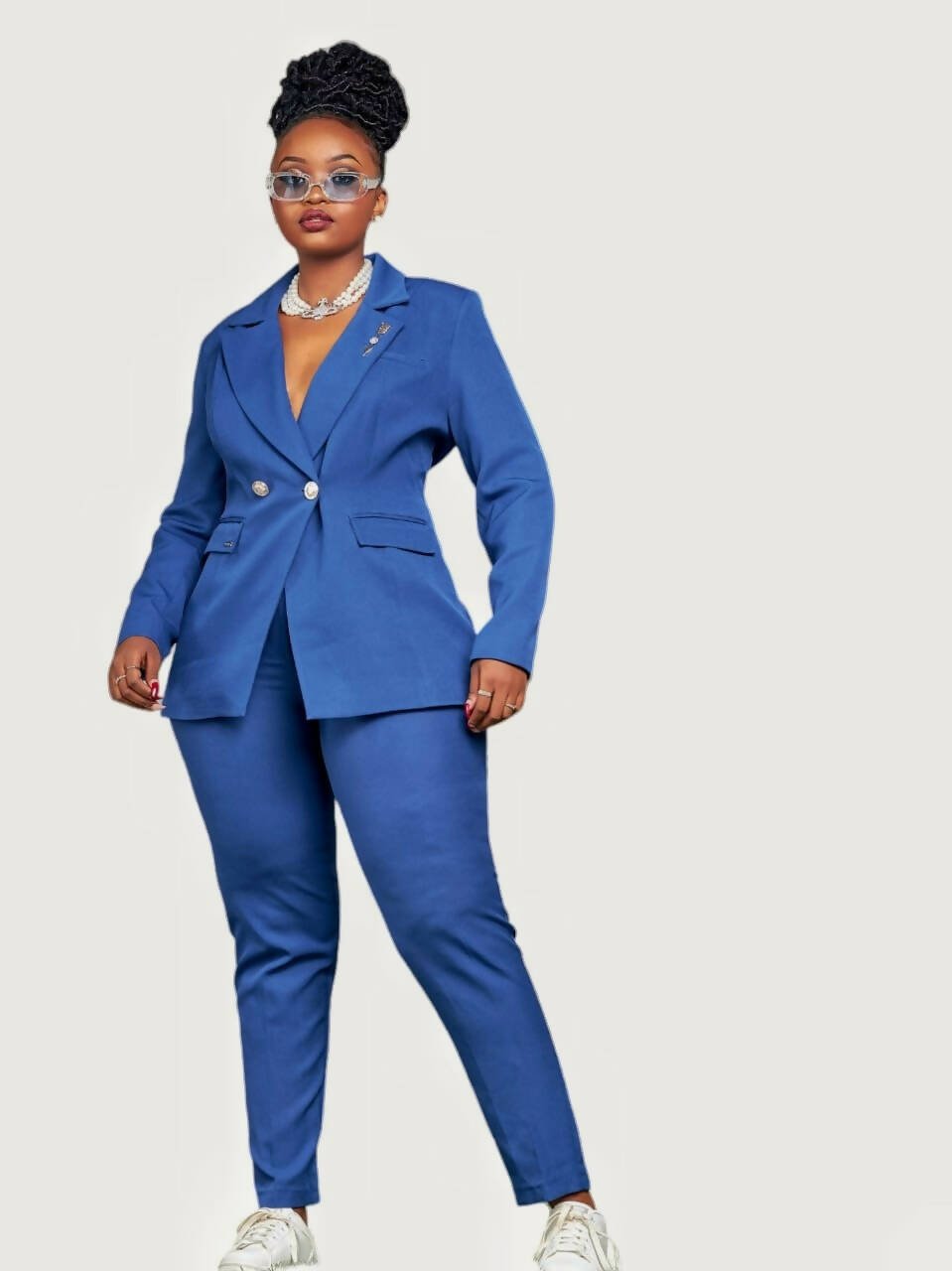 Introducing our Blue Pant Suit, the epitome of power and style. This meticulously tailored suit exudes confidence and sophistication, making it a versatile addition to your wardrobe. Whether you're commanding the boardroom or attending a formal event, this classic suit is the perfect choice. With a flattering fit and timeless design, it effortlessly combines professionalism with a touch of elegance. Elevate your presence with this blue pant suit, a symbol of timeless, sophisticated fashion.