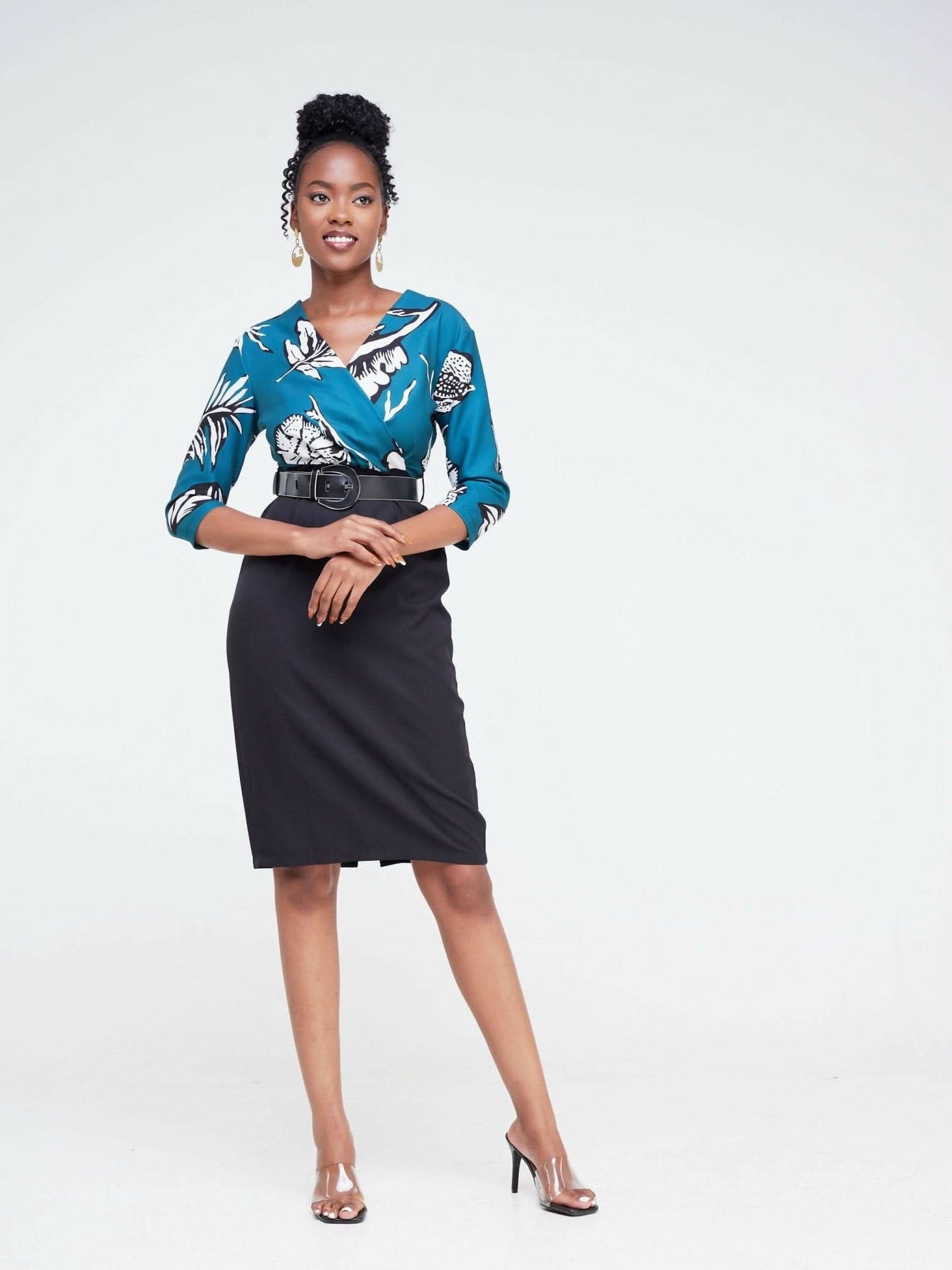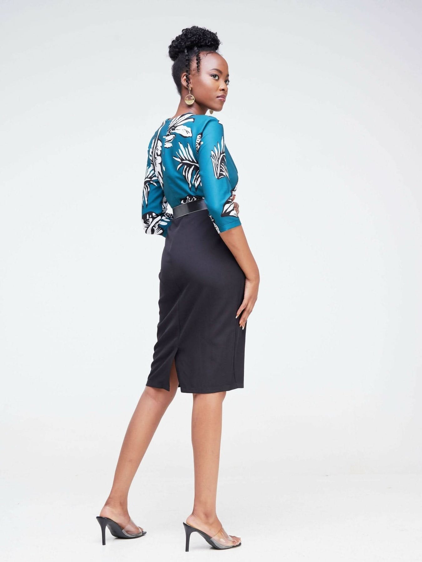 The Fashion Frenzy Pencil Dress- Black & Blue - Shopzetu