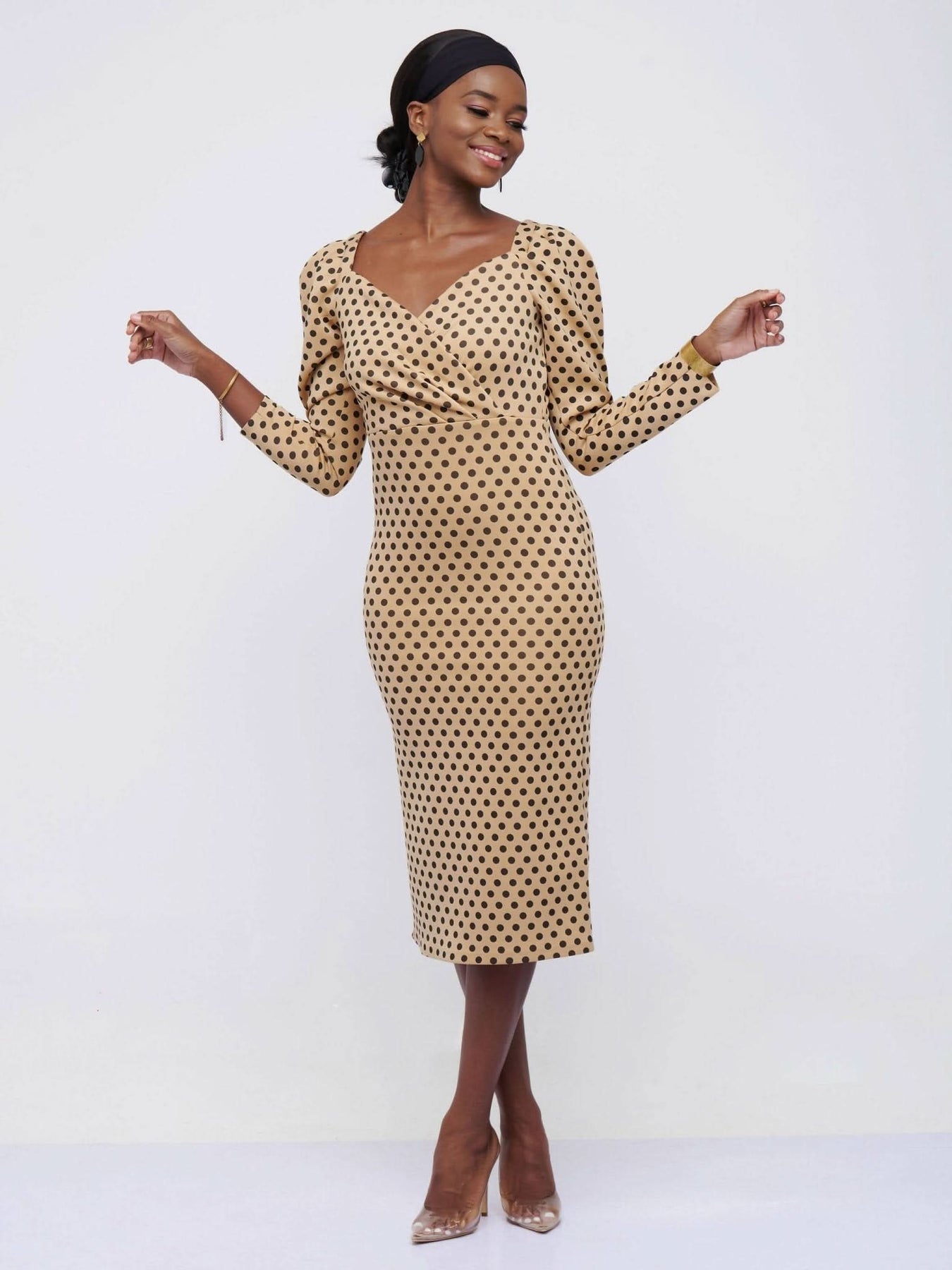 The Fashion Frenzy Polka Bodycon - Khaki - Shop Zetu Kenya