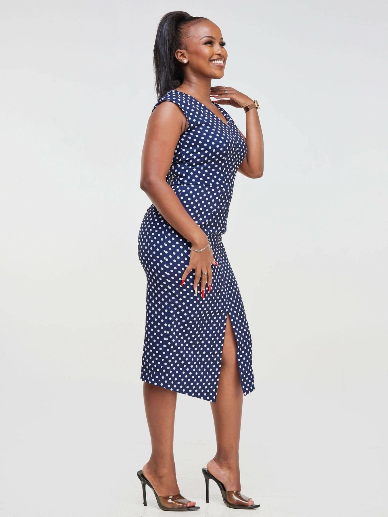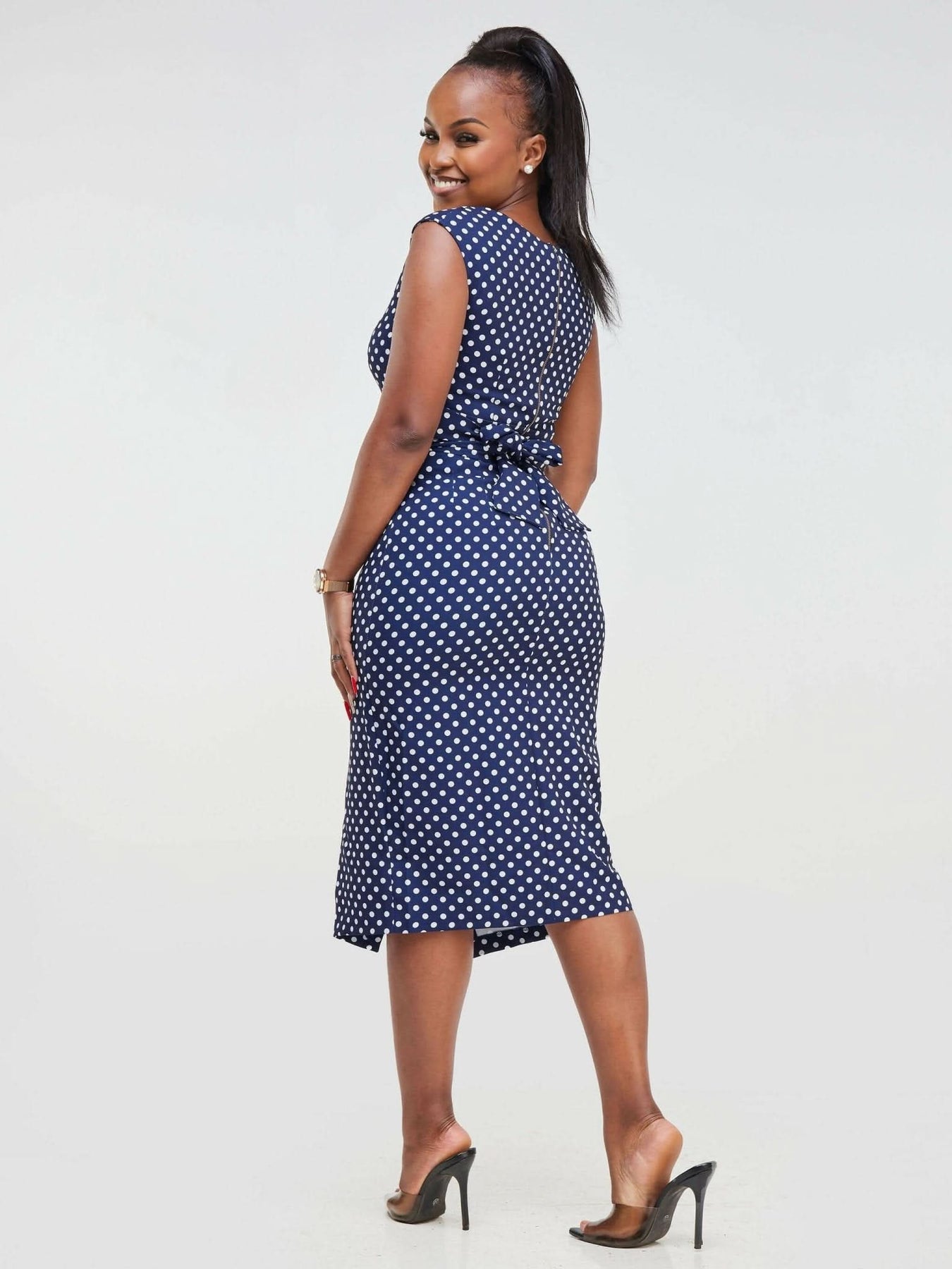 The Fashion Frenzy Polka Pencil Dress - Blue - Shopzetu