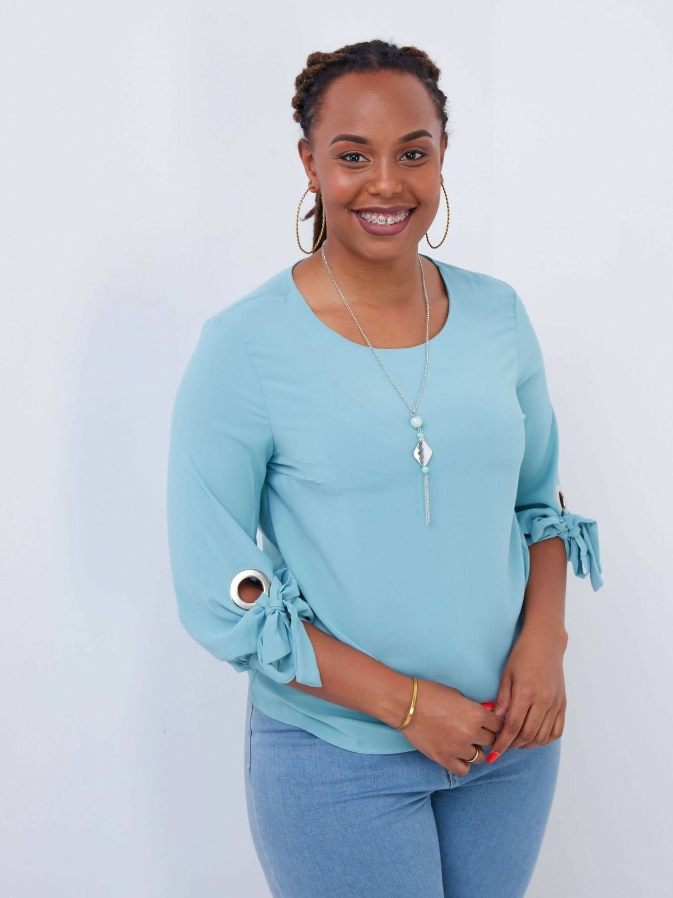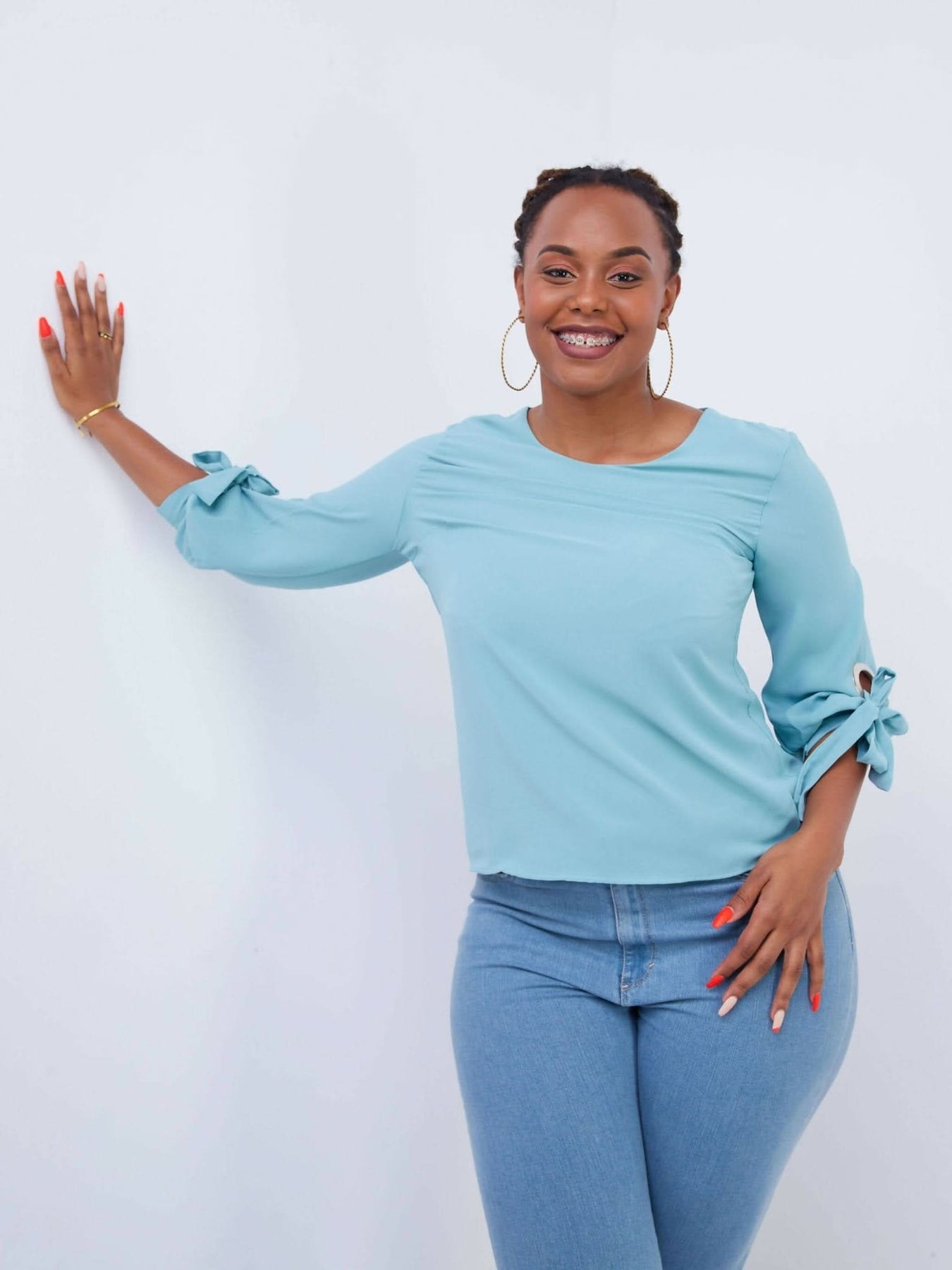The Fashion Frenzy Ribbon Tie Top - Blue - Shopzetu