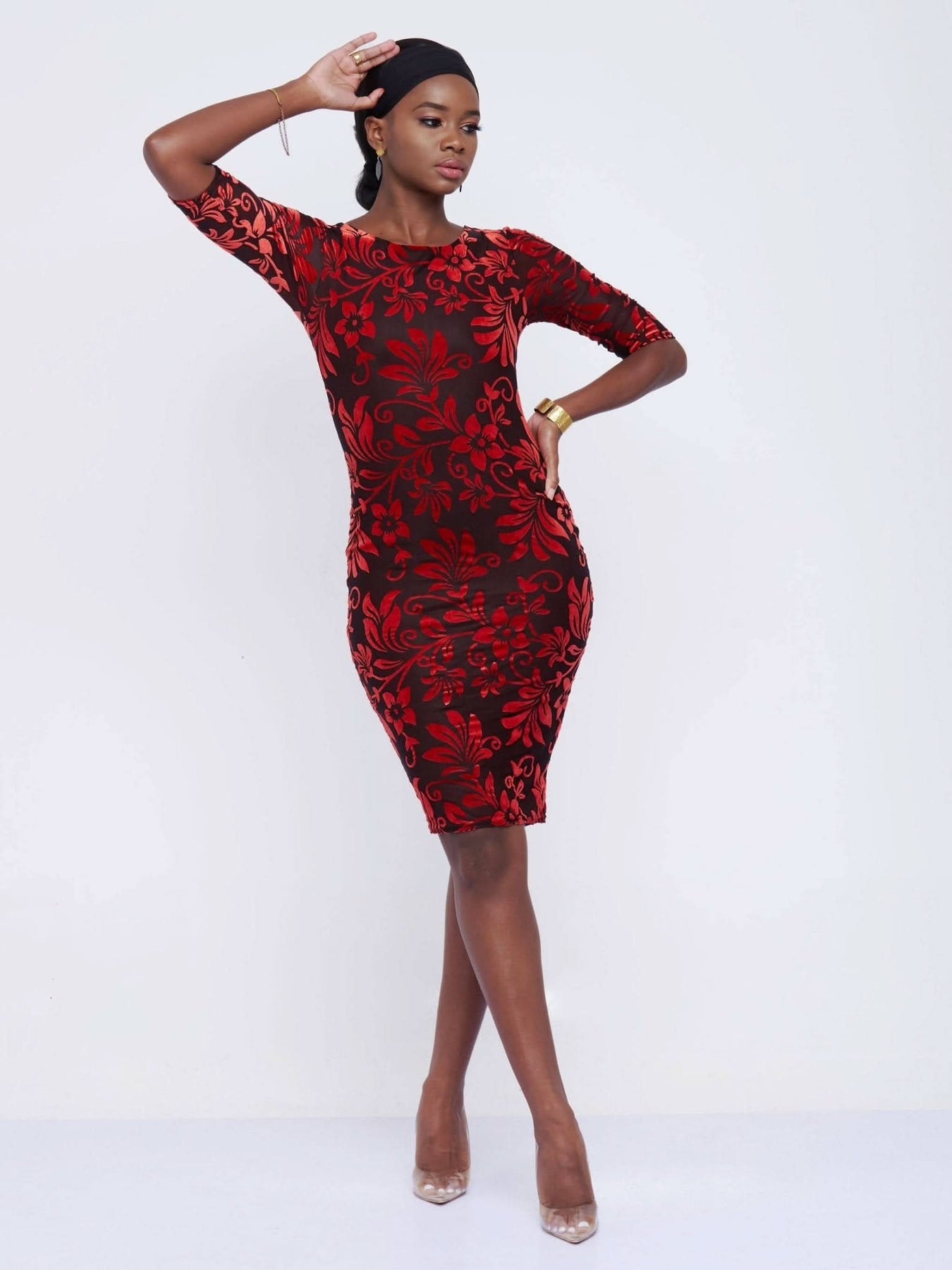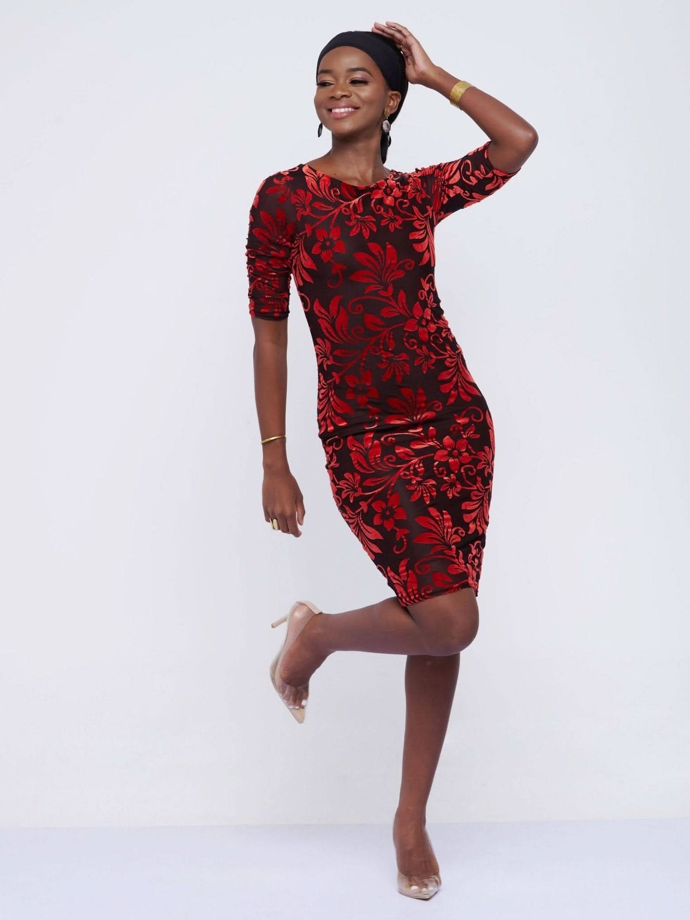 The Fashion Frenzy Velvet Bodycon - Red - Shop Zetu Kenya