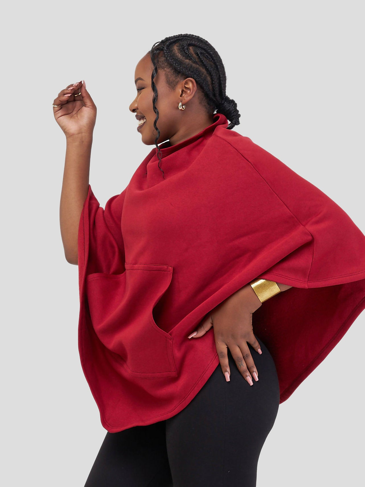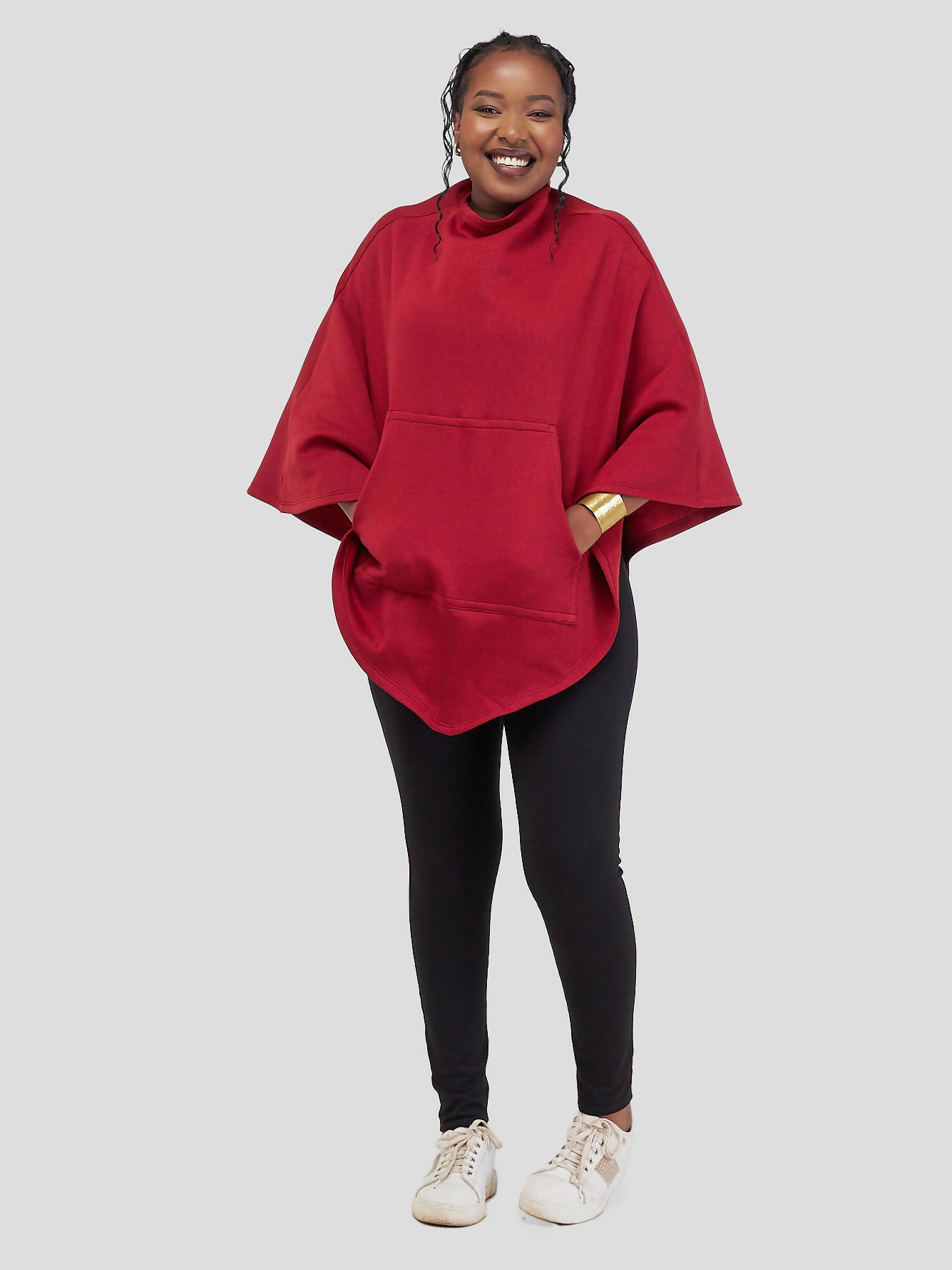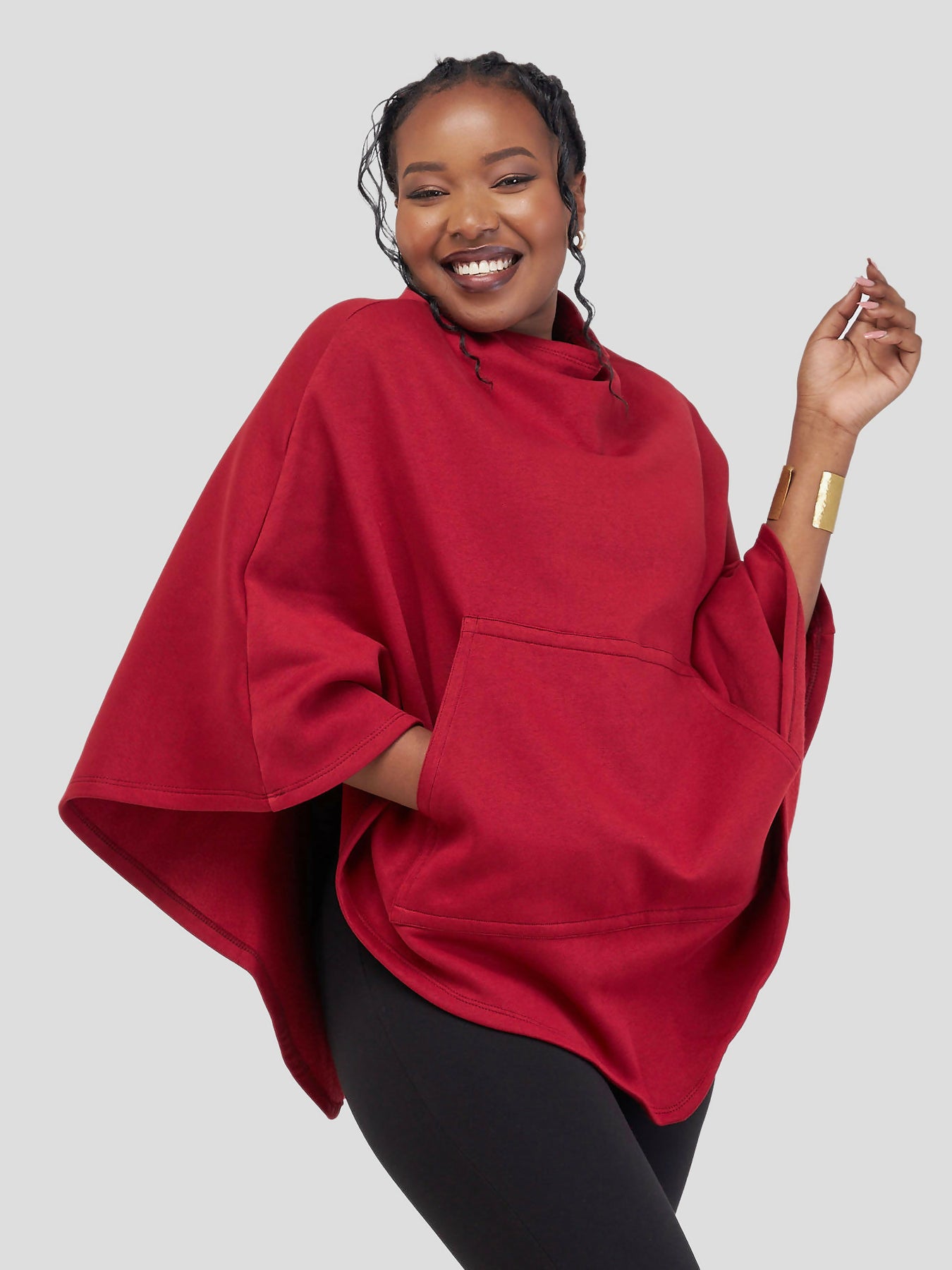 Crimson Crest Shawl /With Hidden Zipper For Effortless Wear - Red