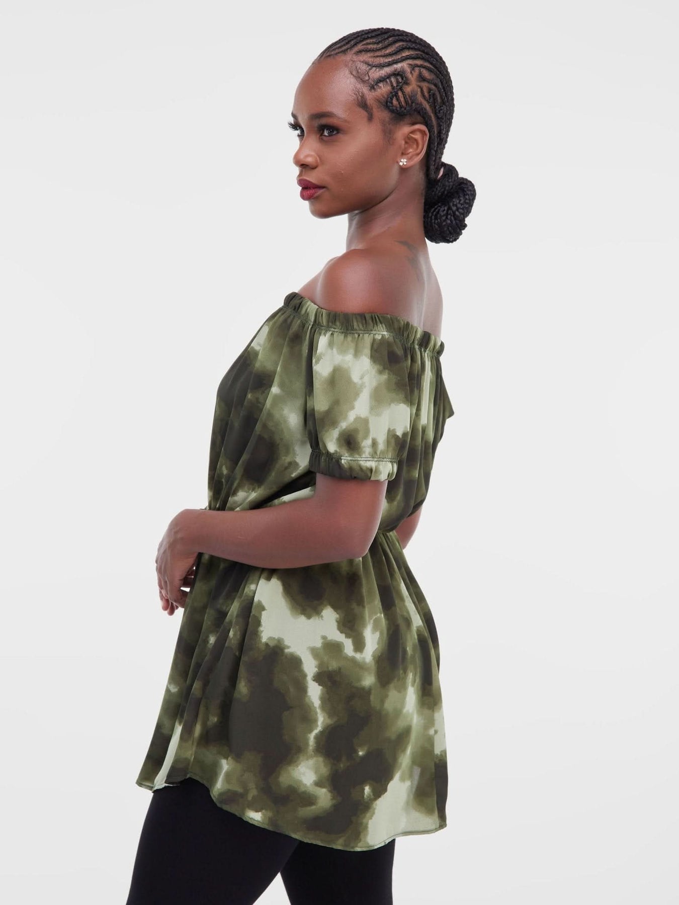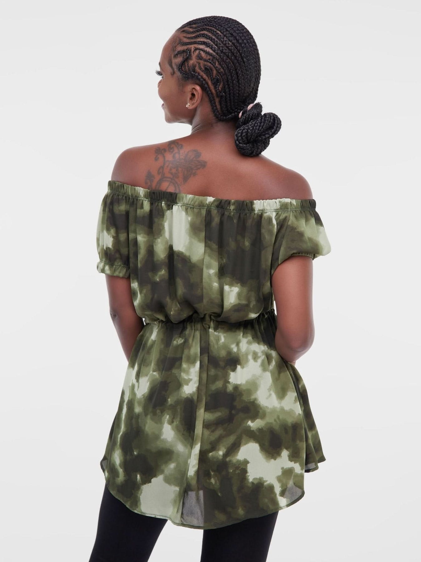 Vivo Lulu Off Shoulder Tunic - Green TD Print