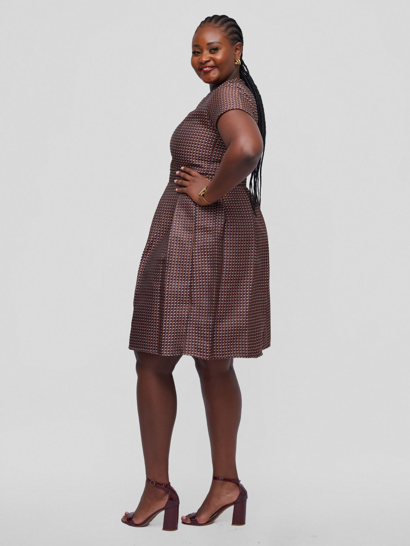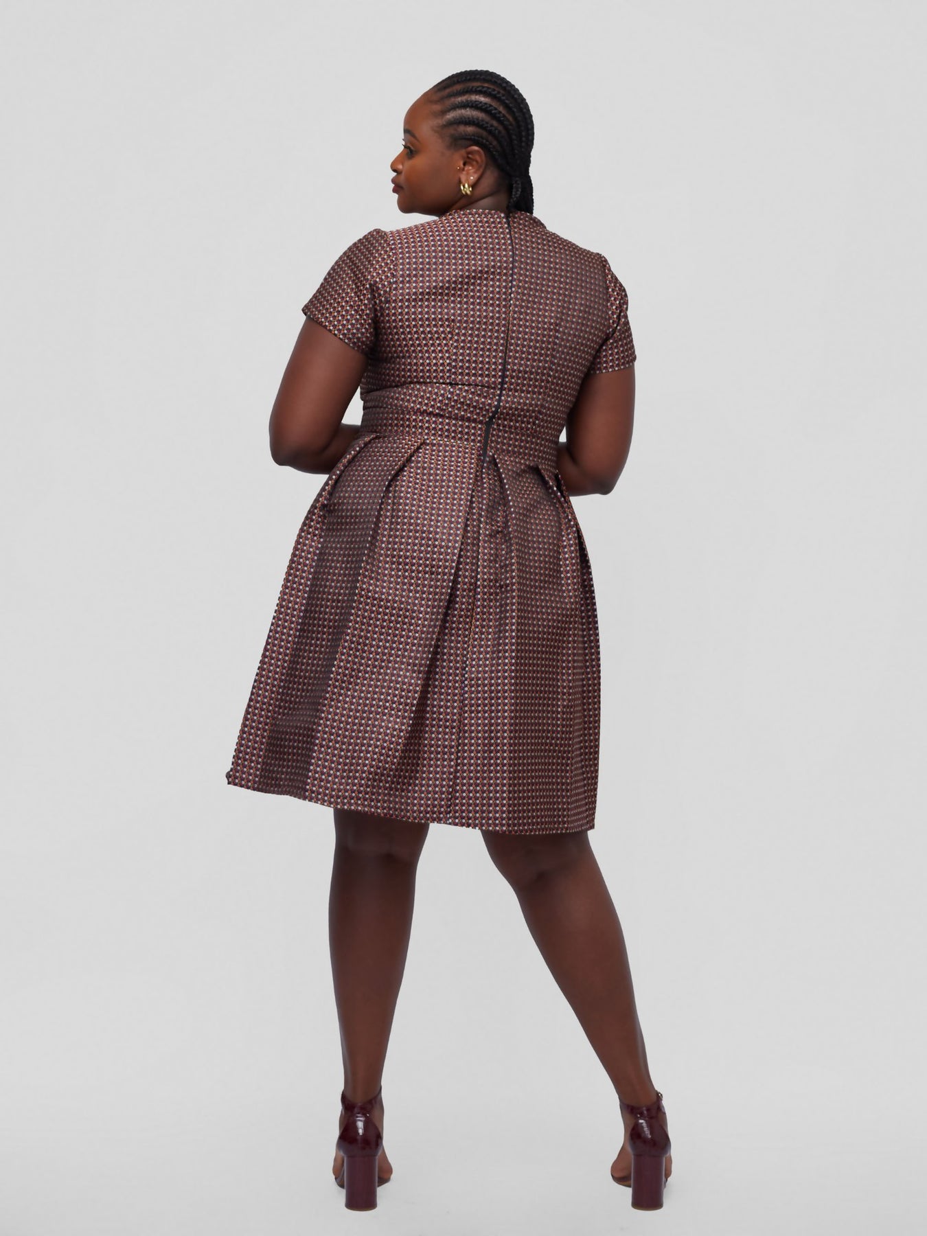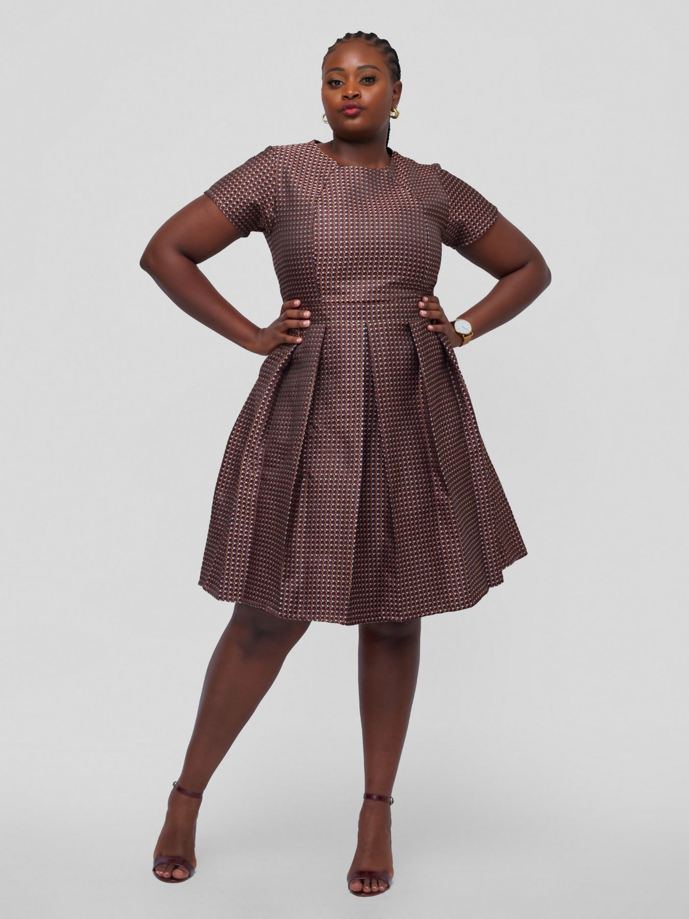 Product Details: This knee length skater dress comes with a concealed back zipper, round neckline, pleated skirt detail and short sleeves.