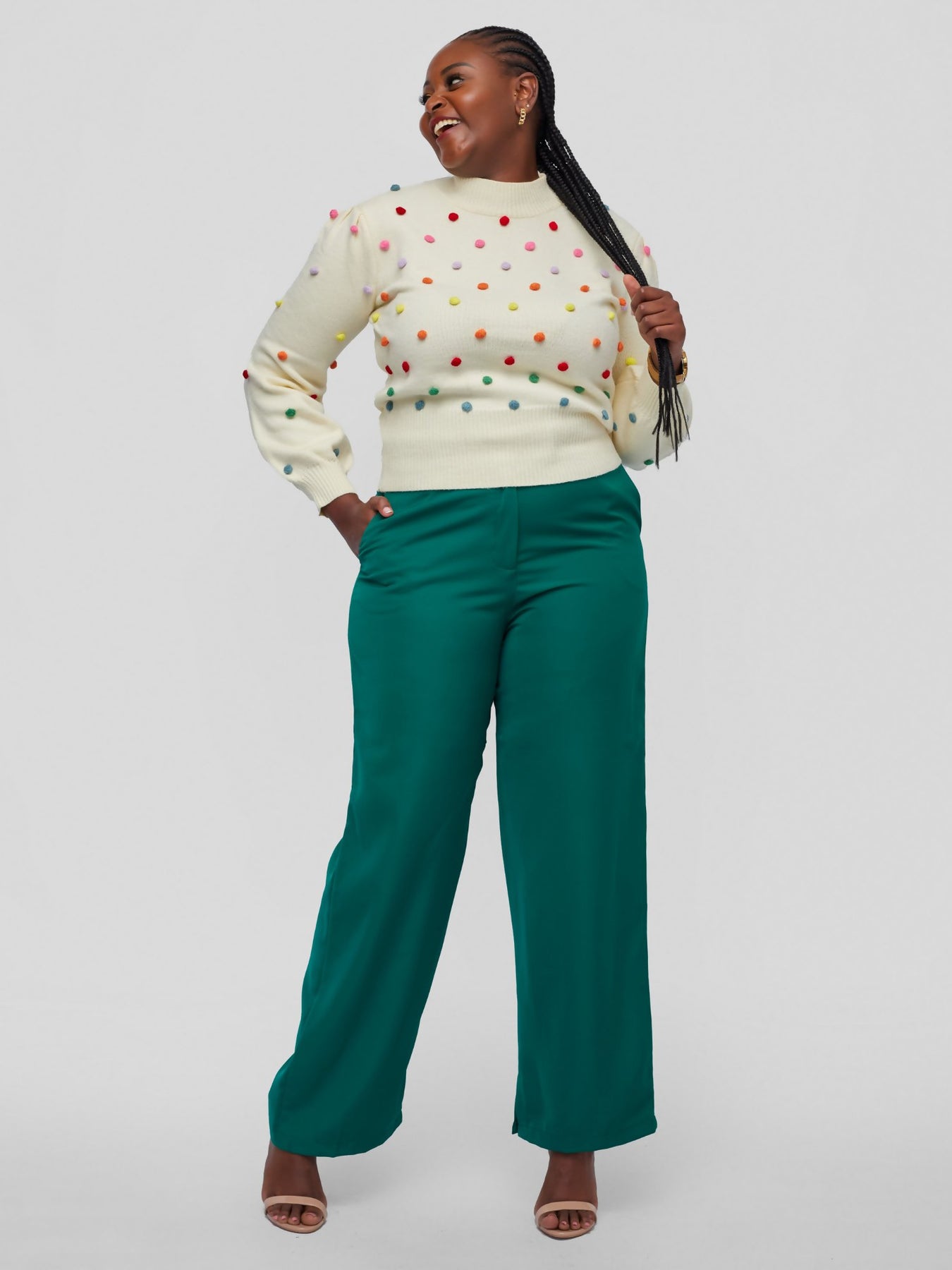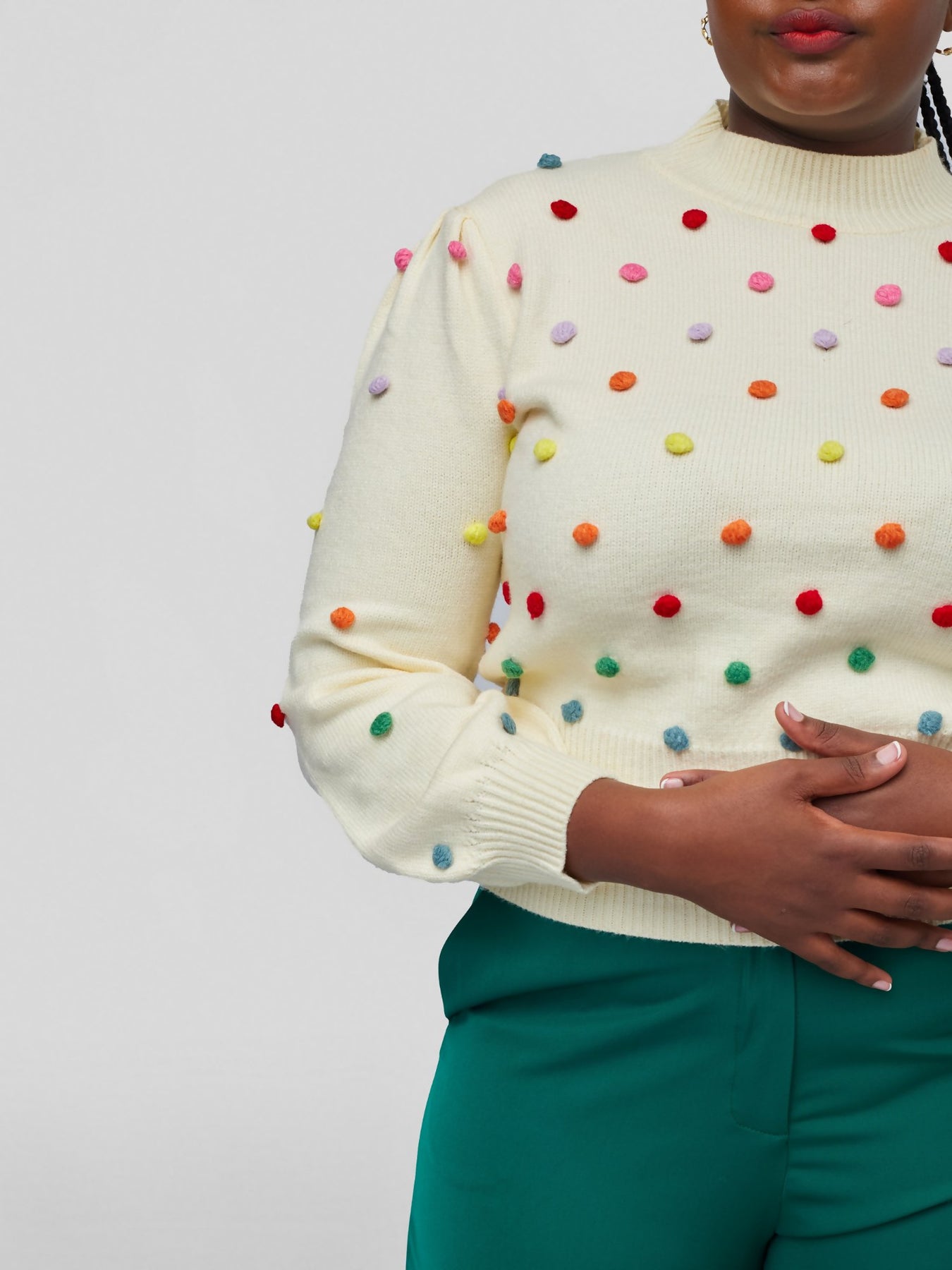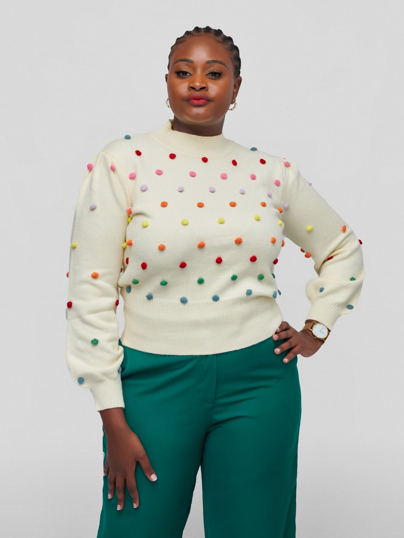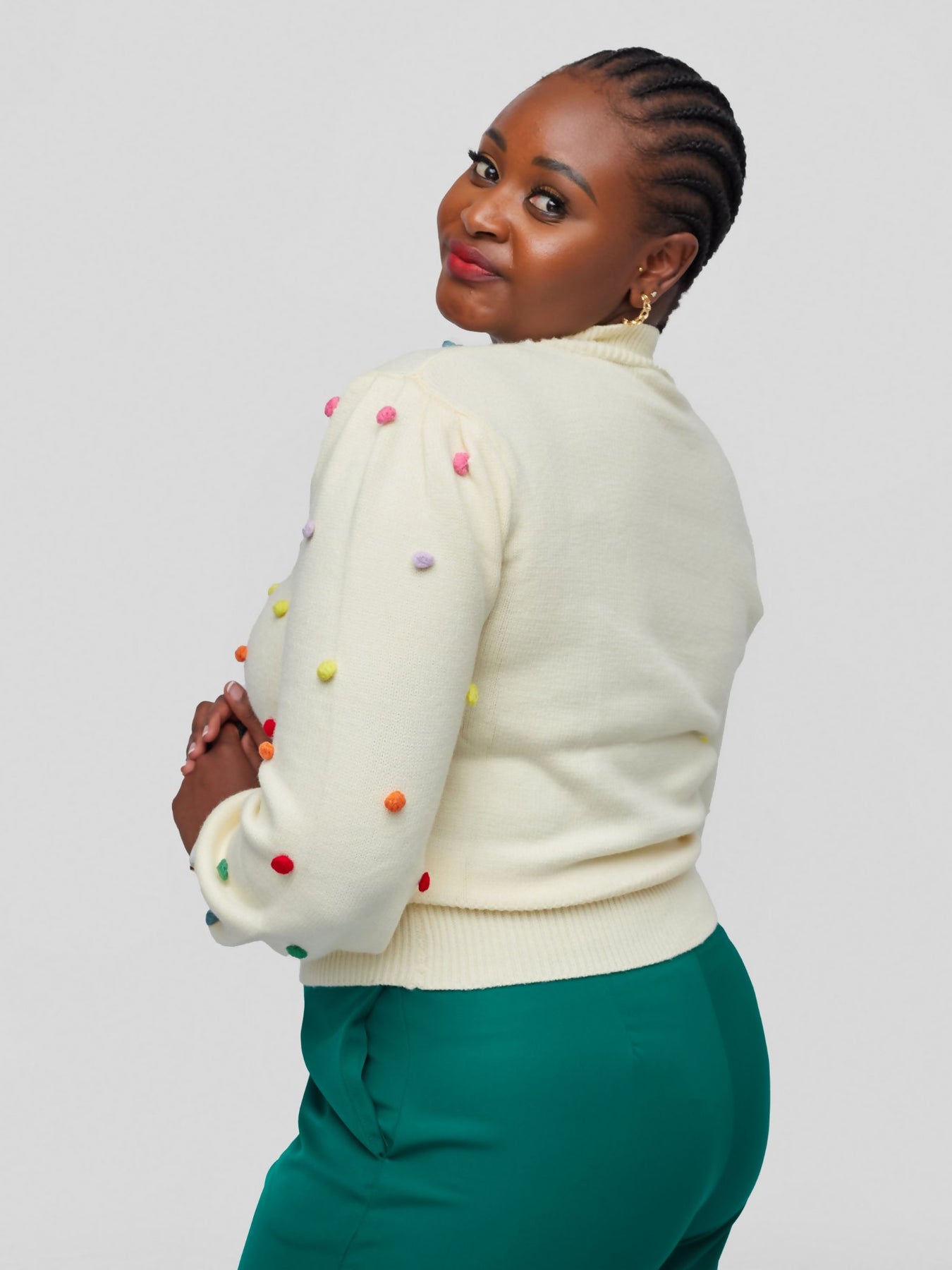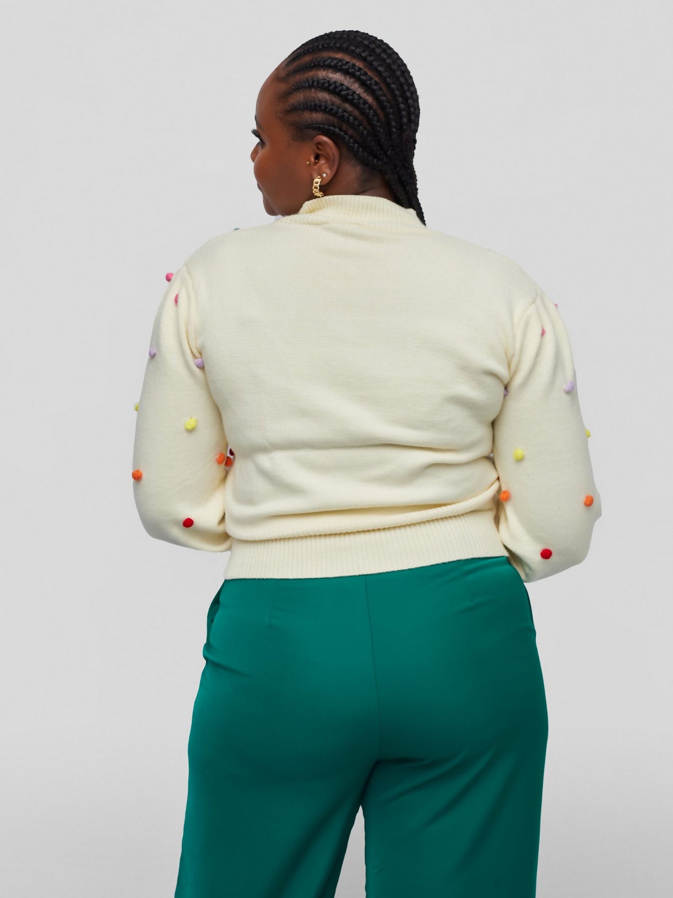 Tuli Nazra Puff Ball Sweater Poncho - Cream - Shopzetu