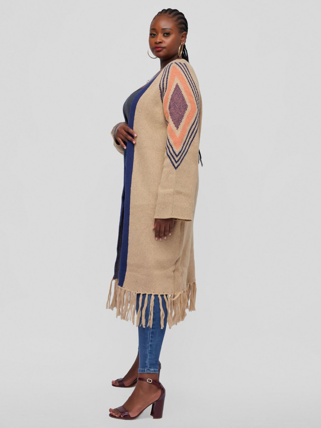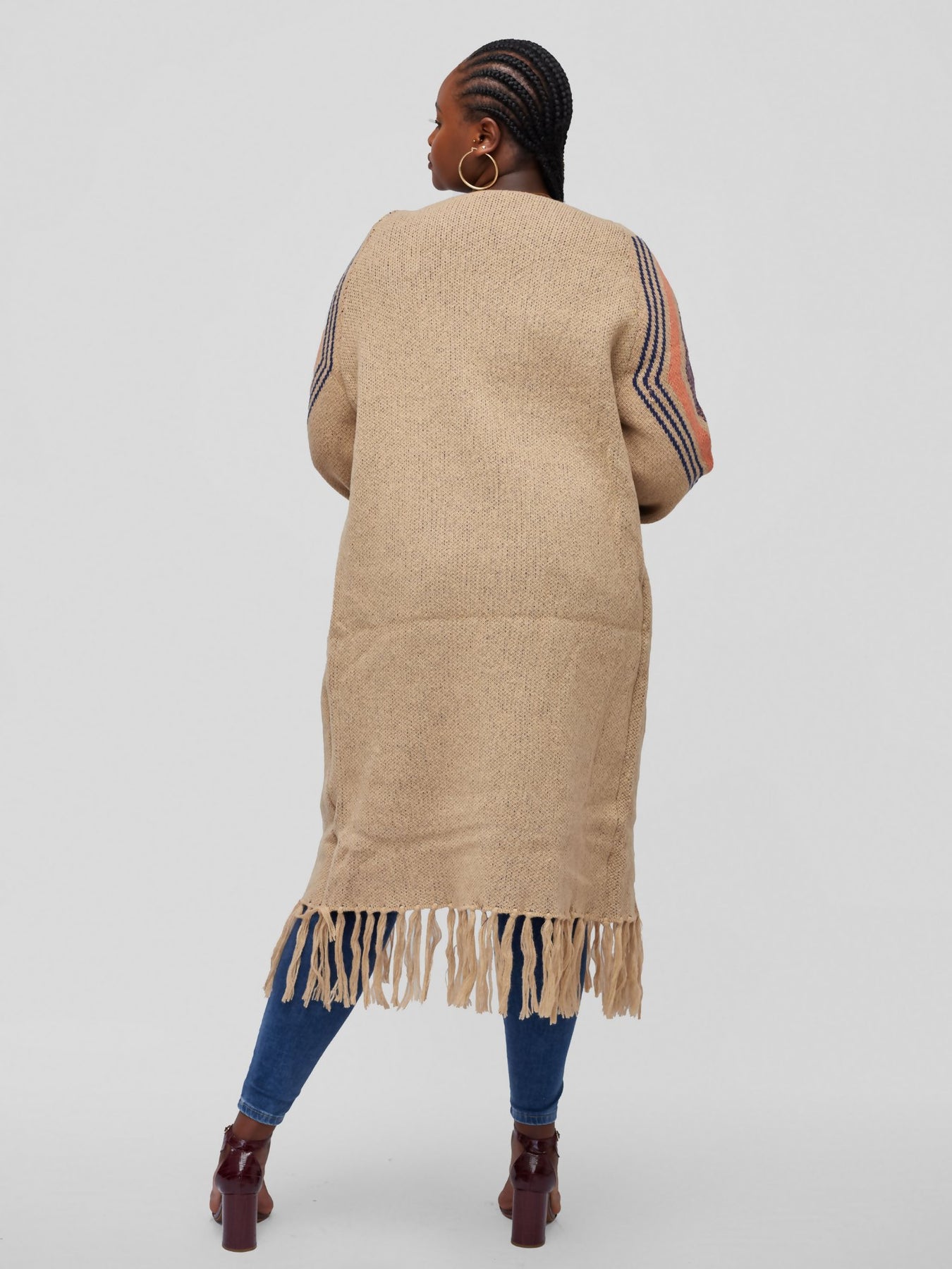 Tuli Nova Tassel Cardigan Poncho - Khaki - Shopzetu