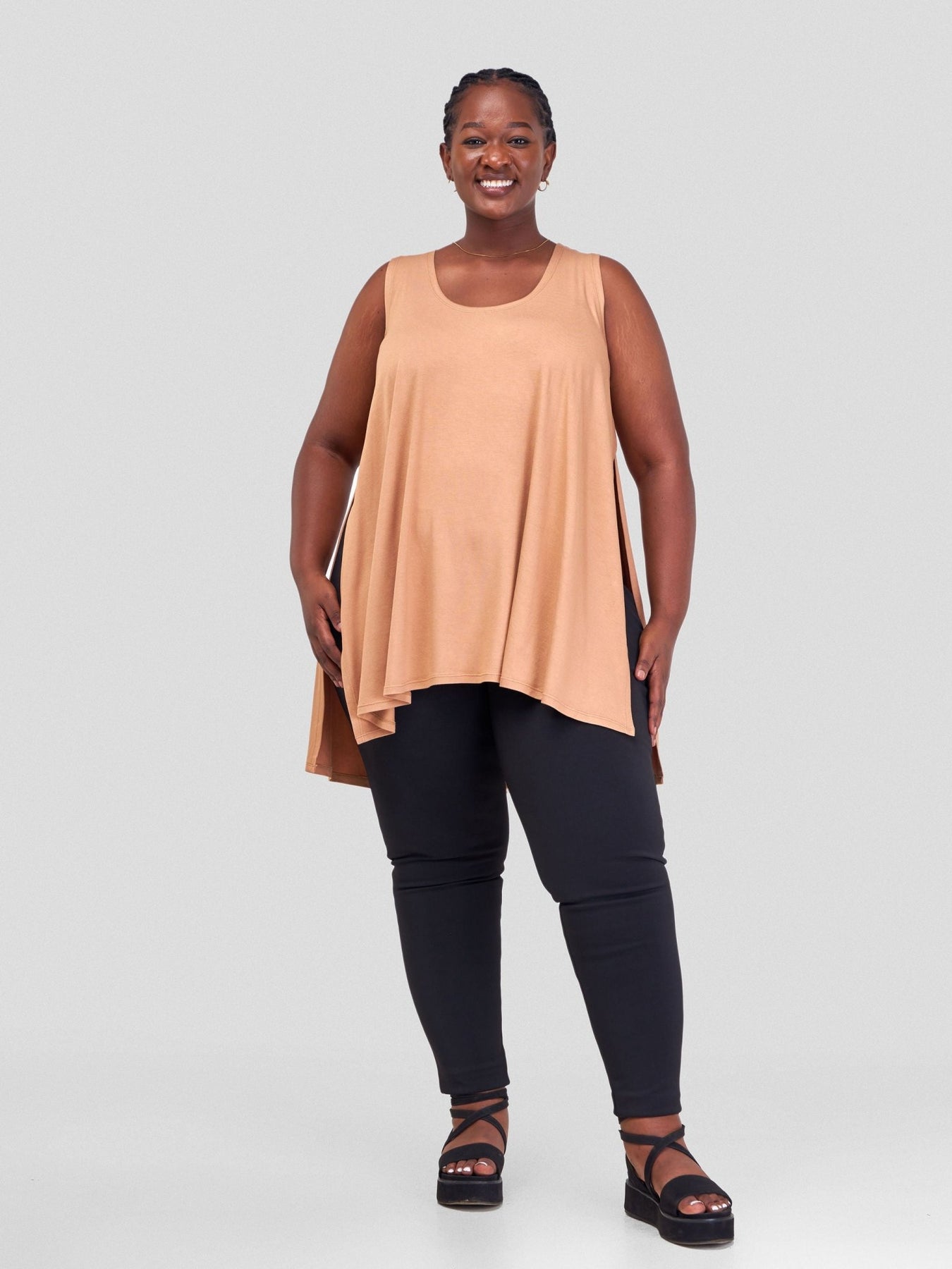 Vivo Amara Sleeveless High Low Top - Tan - Shopzetu