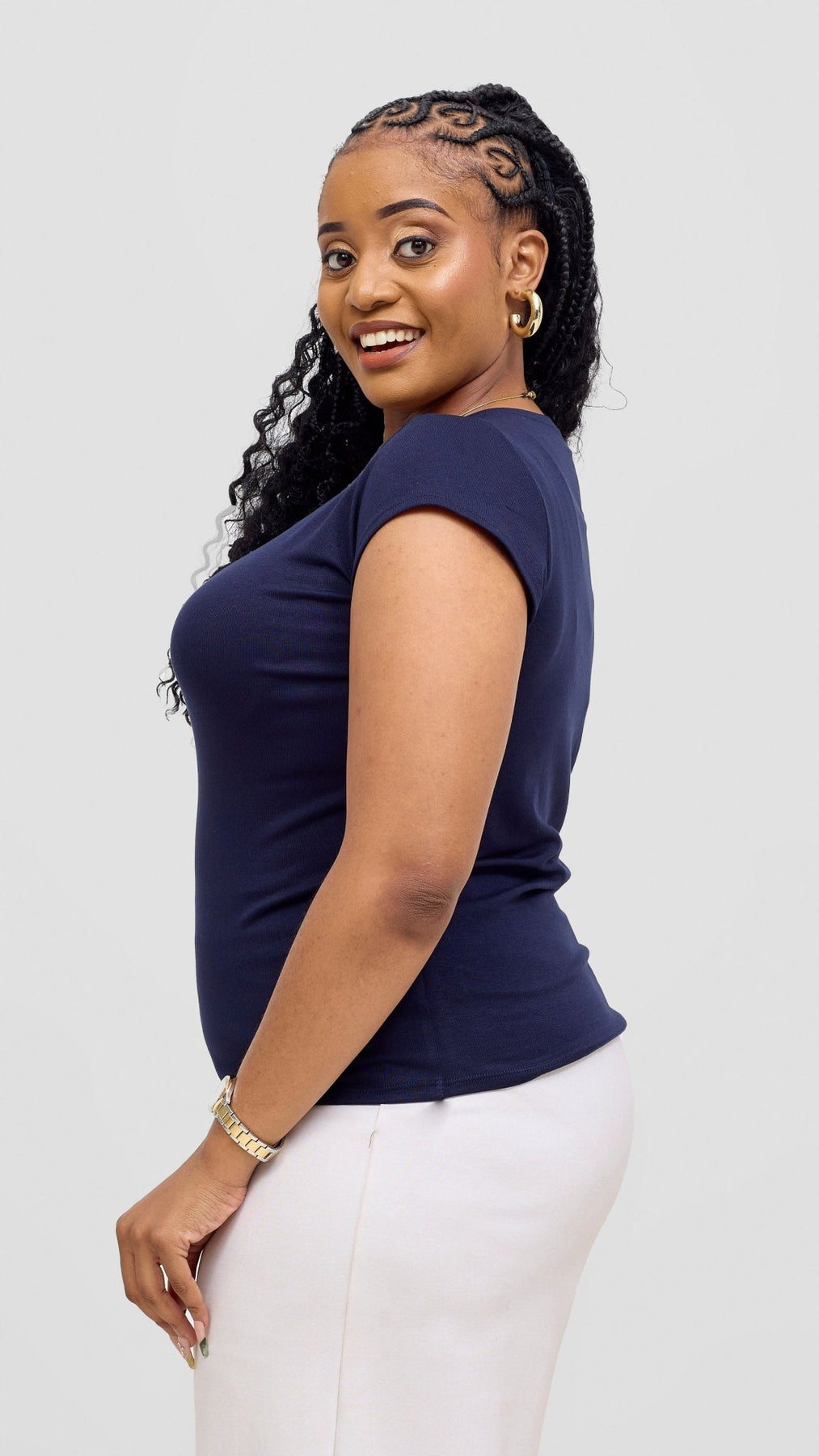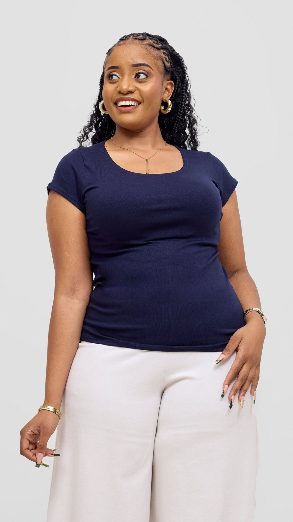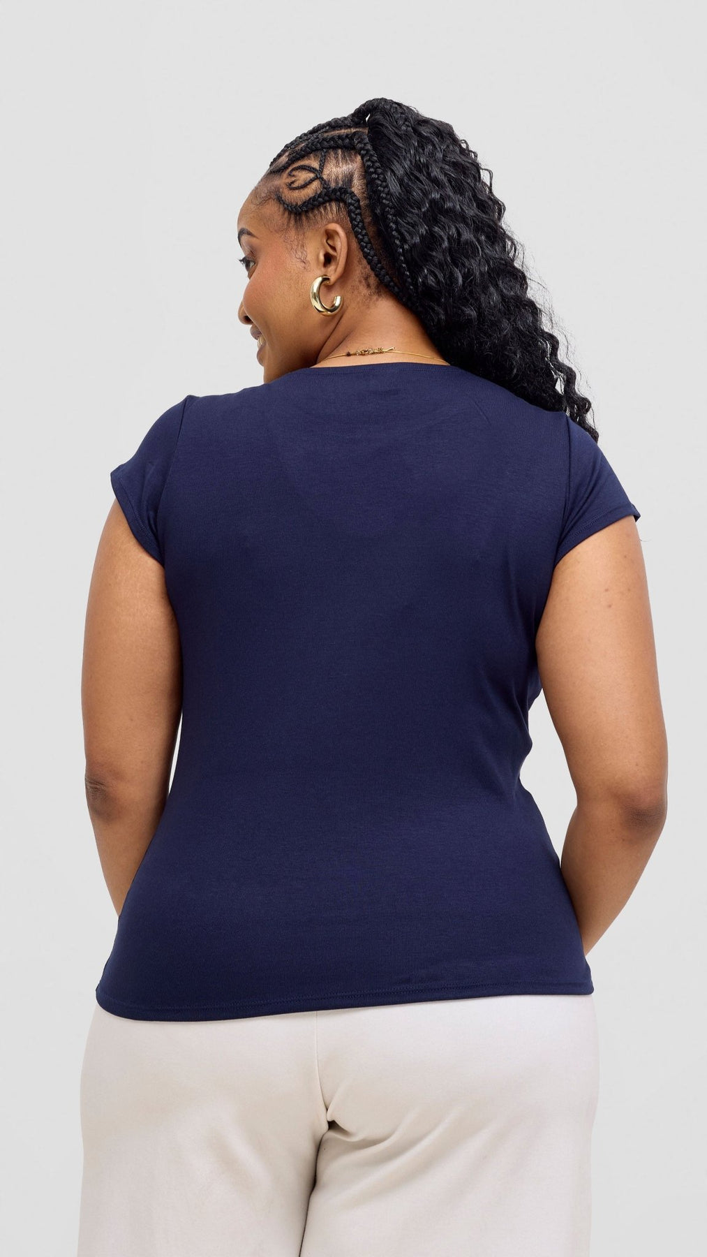 Vivo Basic Val Cap Sleeve Top - Navy Blue - Shopzetu