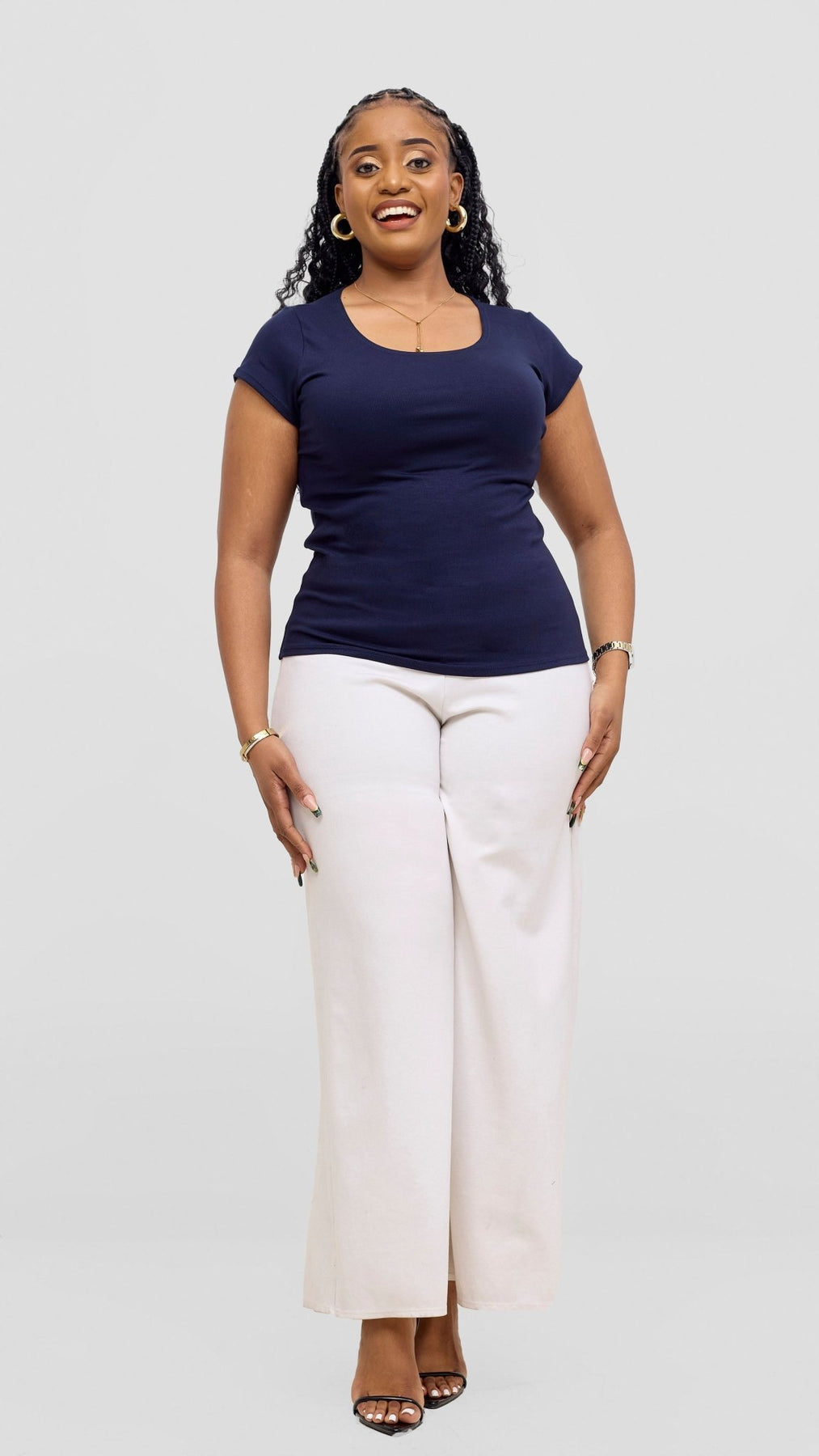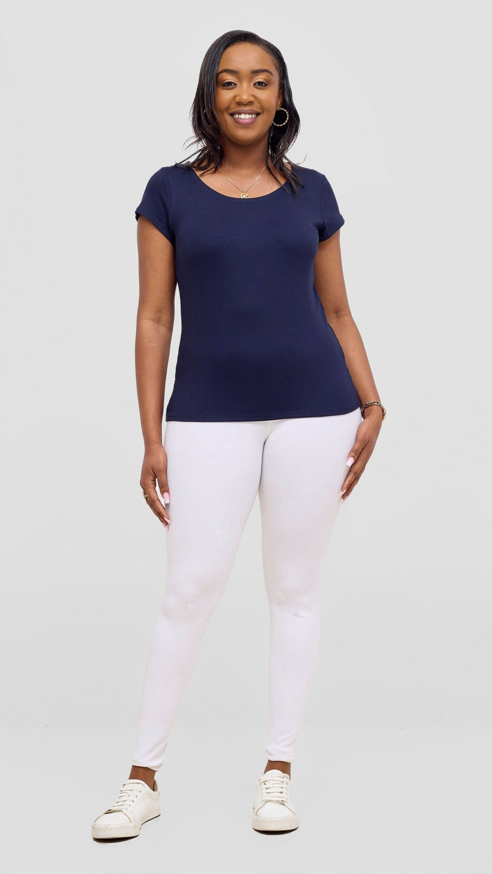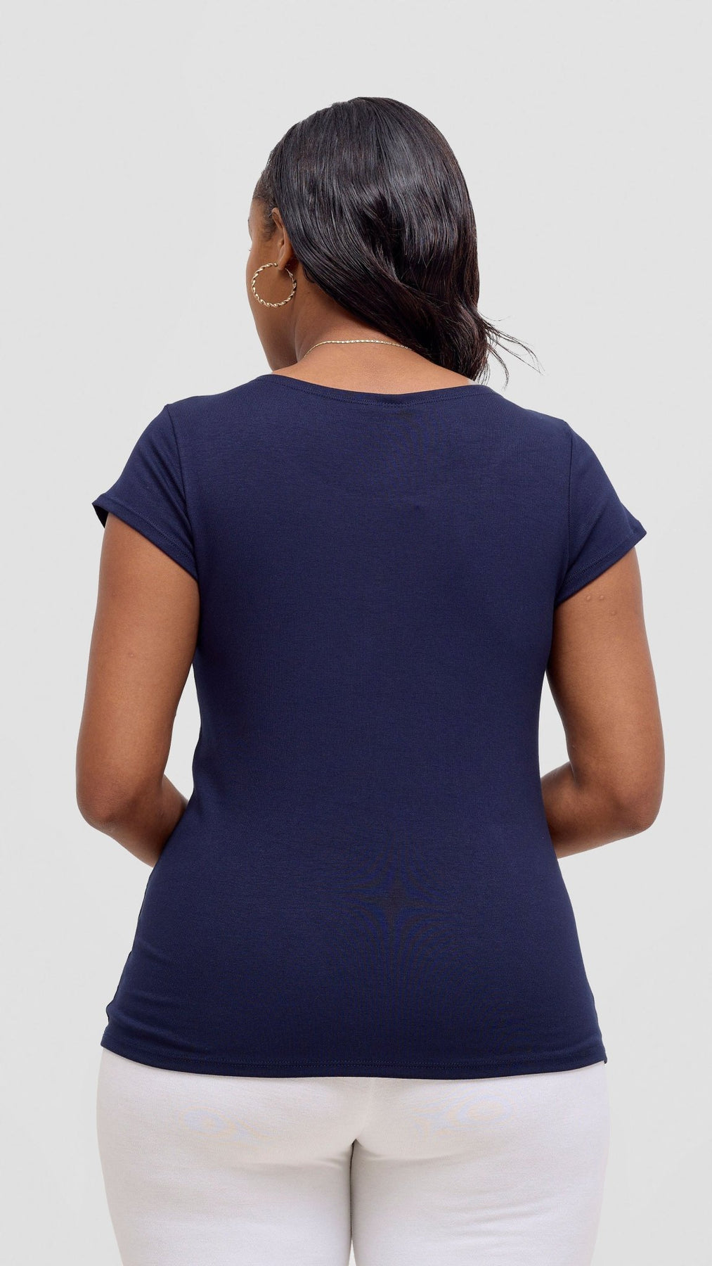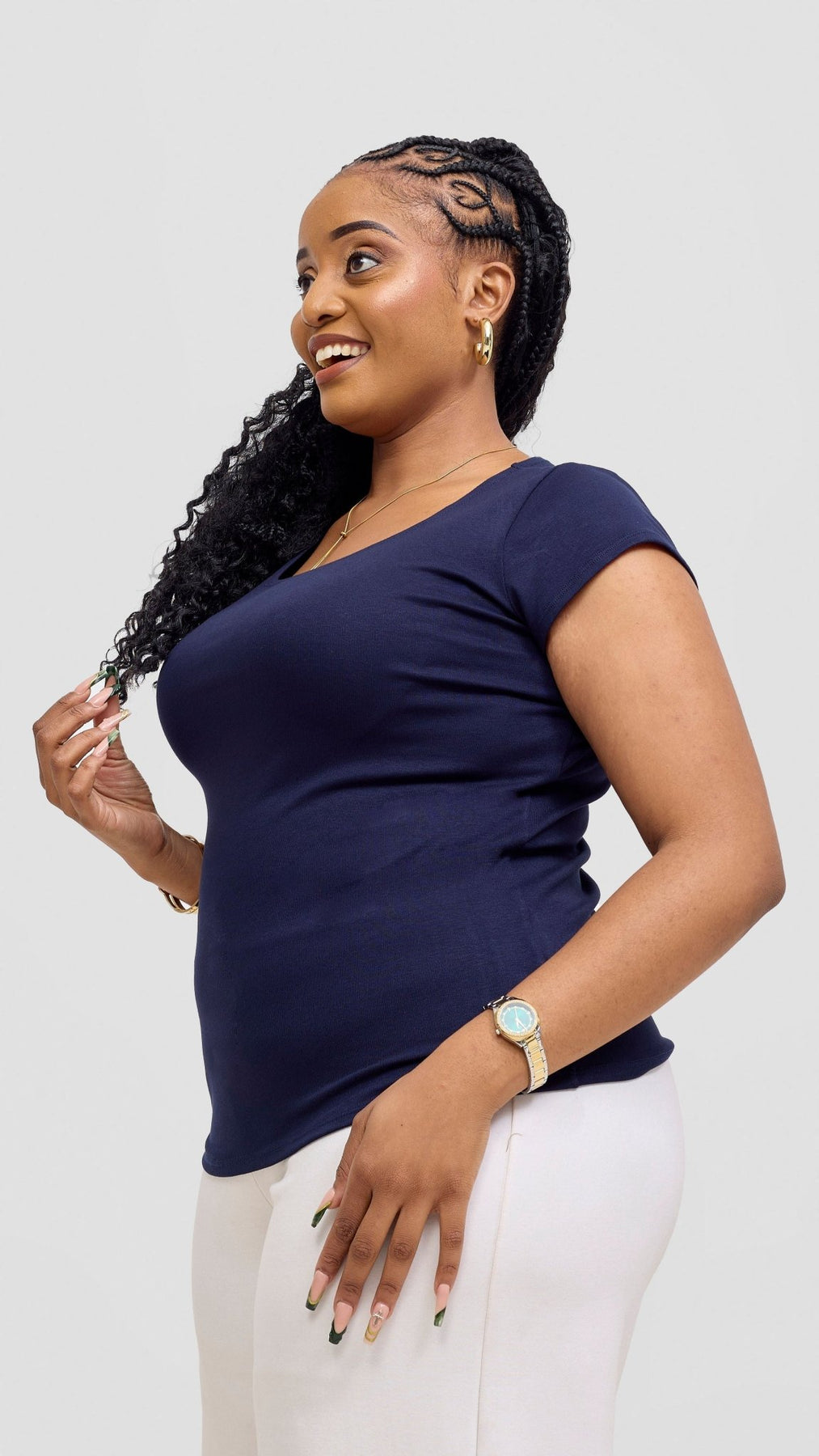 Vivo Basic Val Cap Sleeve Top - Navy Blue - Shopzetu