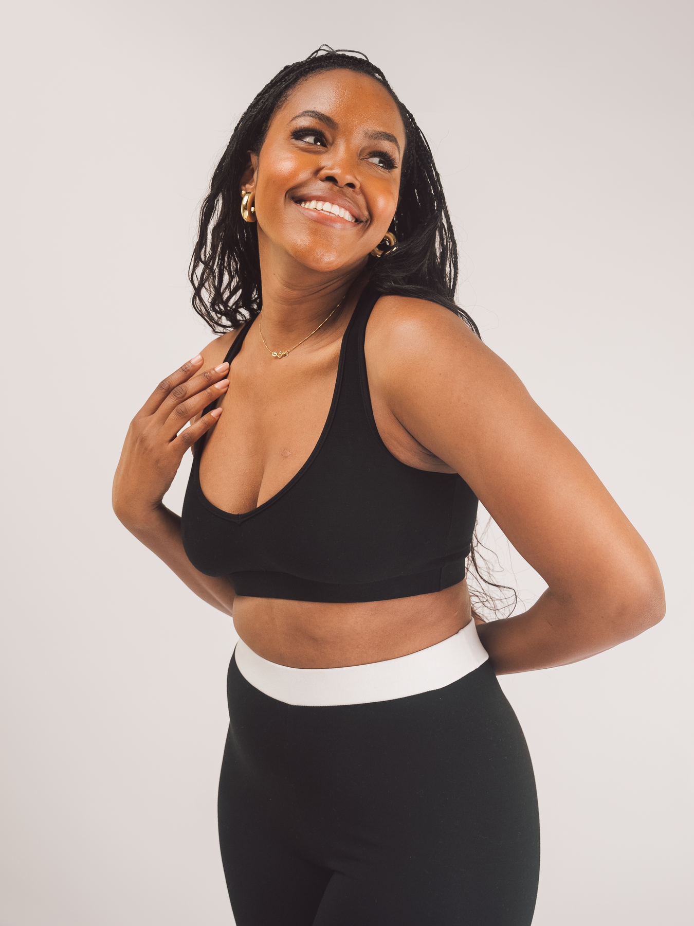 If you're tired of underwires digging into your ribcage then 1) you're not alone, and 2) we've got you! Designed with everyday use in mind, our bralette offers a comfortable fit with medium support that feels like second skin. Our favourite part? The v-neck detail which makes for a sexier look by giving the girls a lift! It's the perfect piece to pair with our high waisted legging.