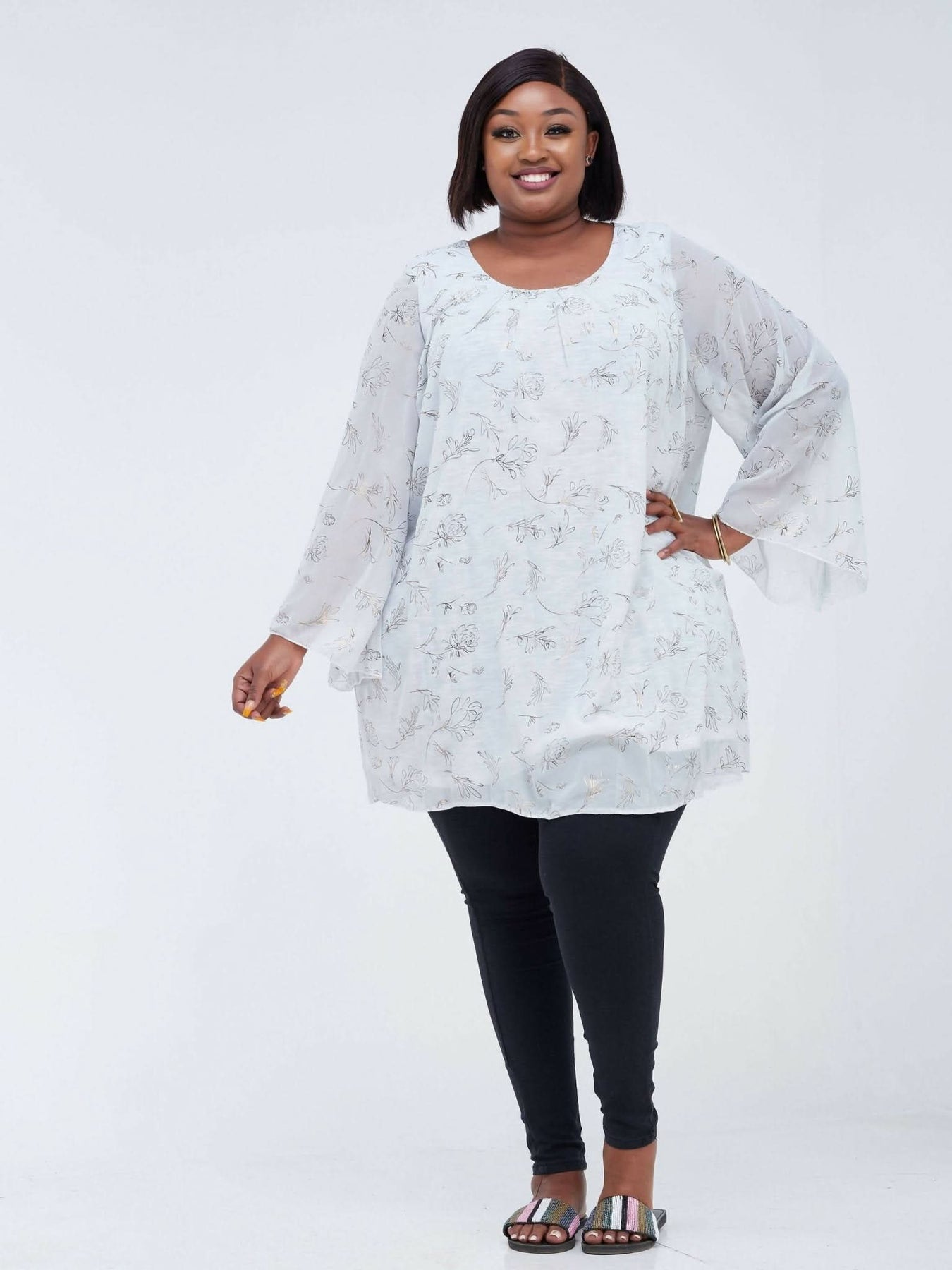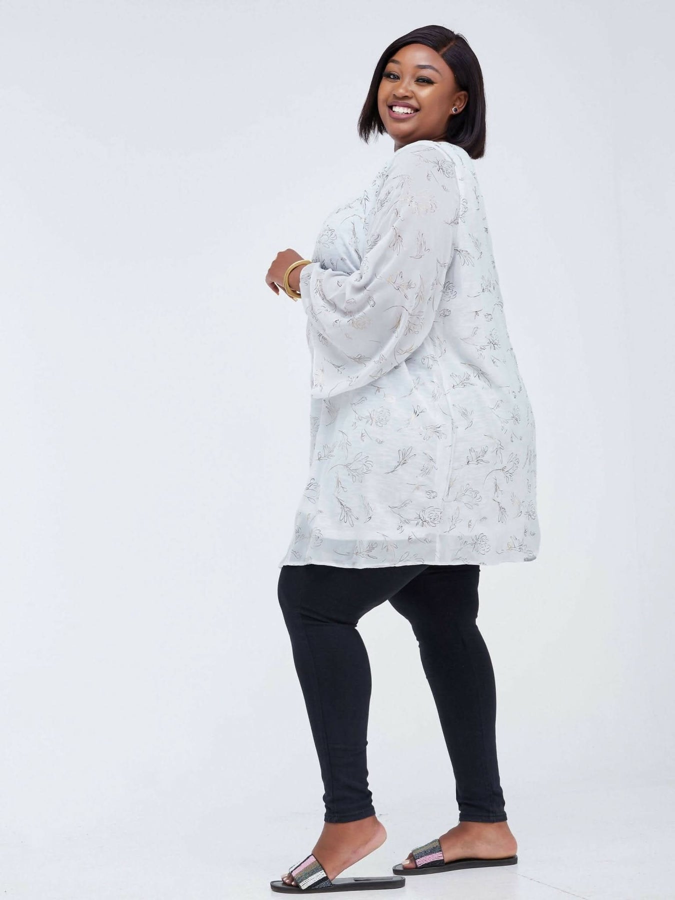 Lamazi Collections Floral Chiffon Top - White / Gold Print - Shop Zetu Kenya
