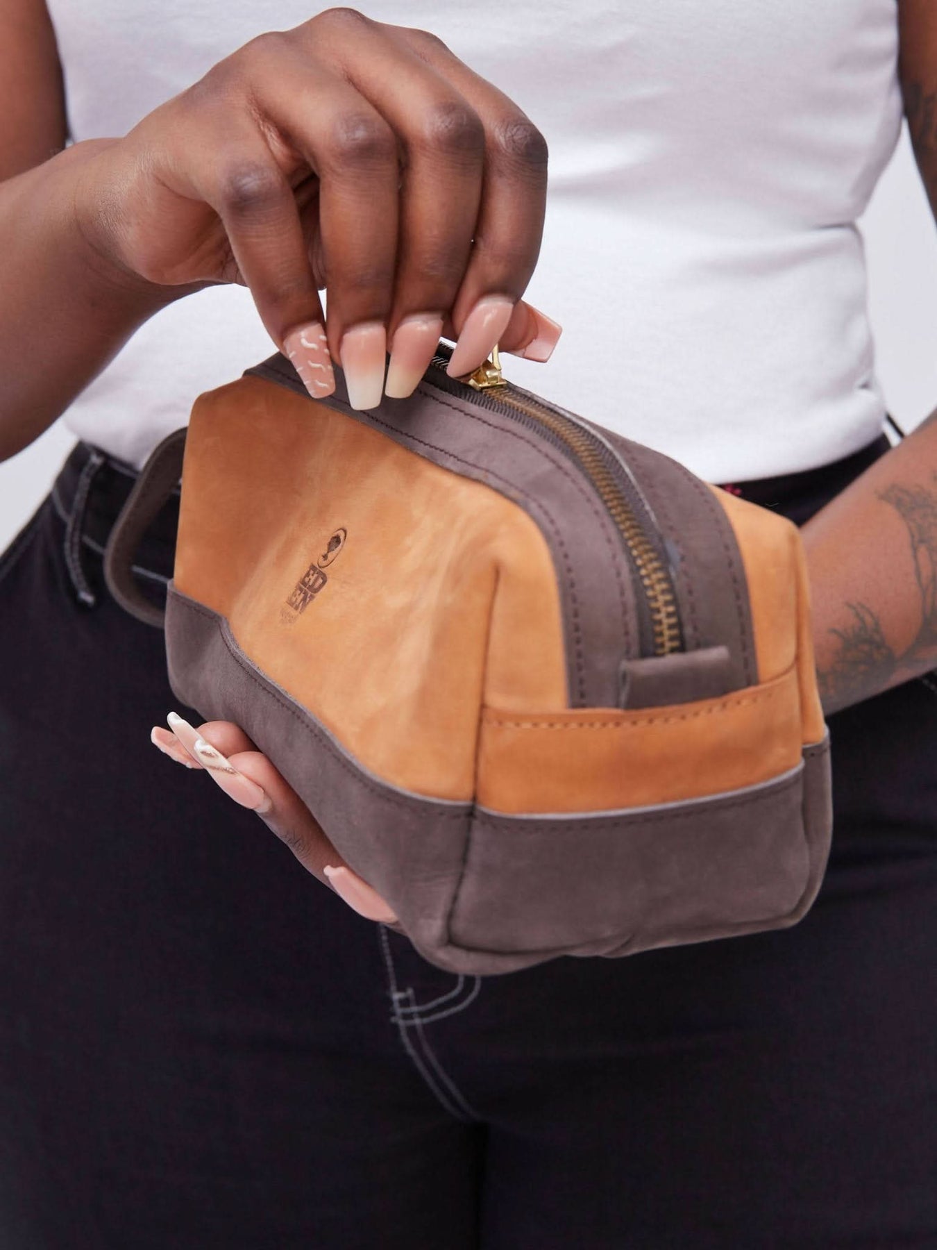 The softness is perfectly complimented by the tooled leather accents and brass hardware.