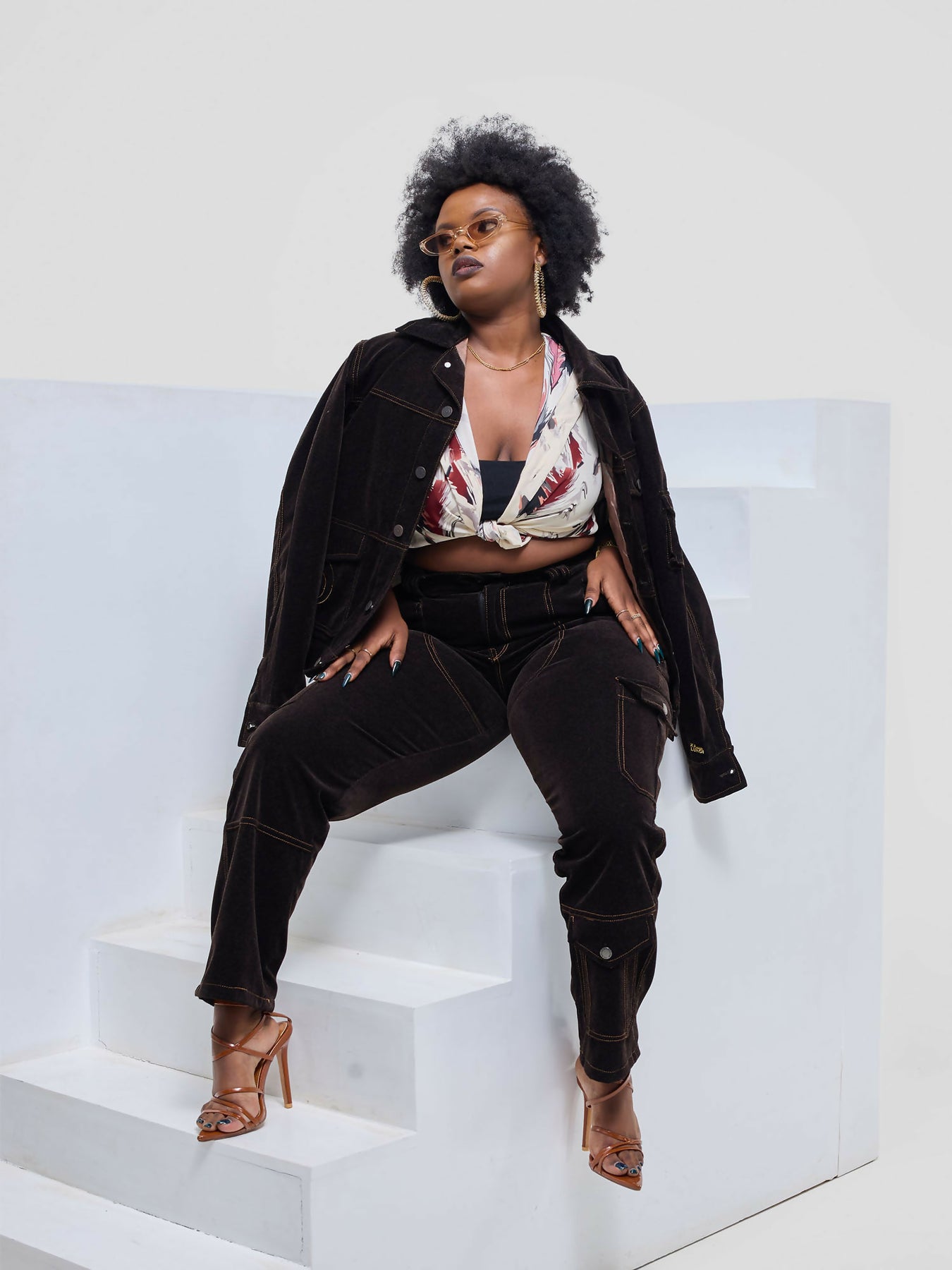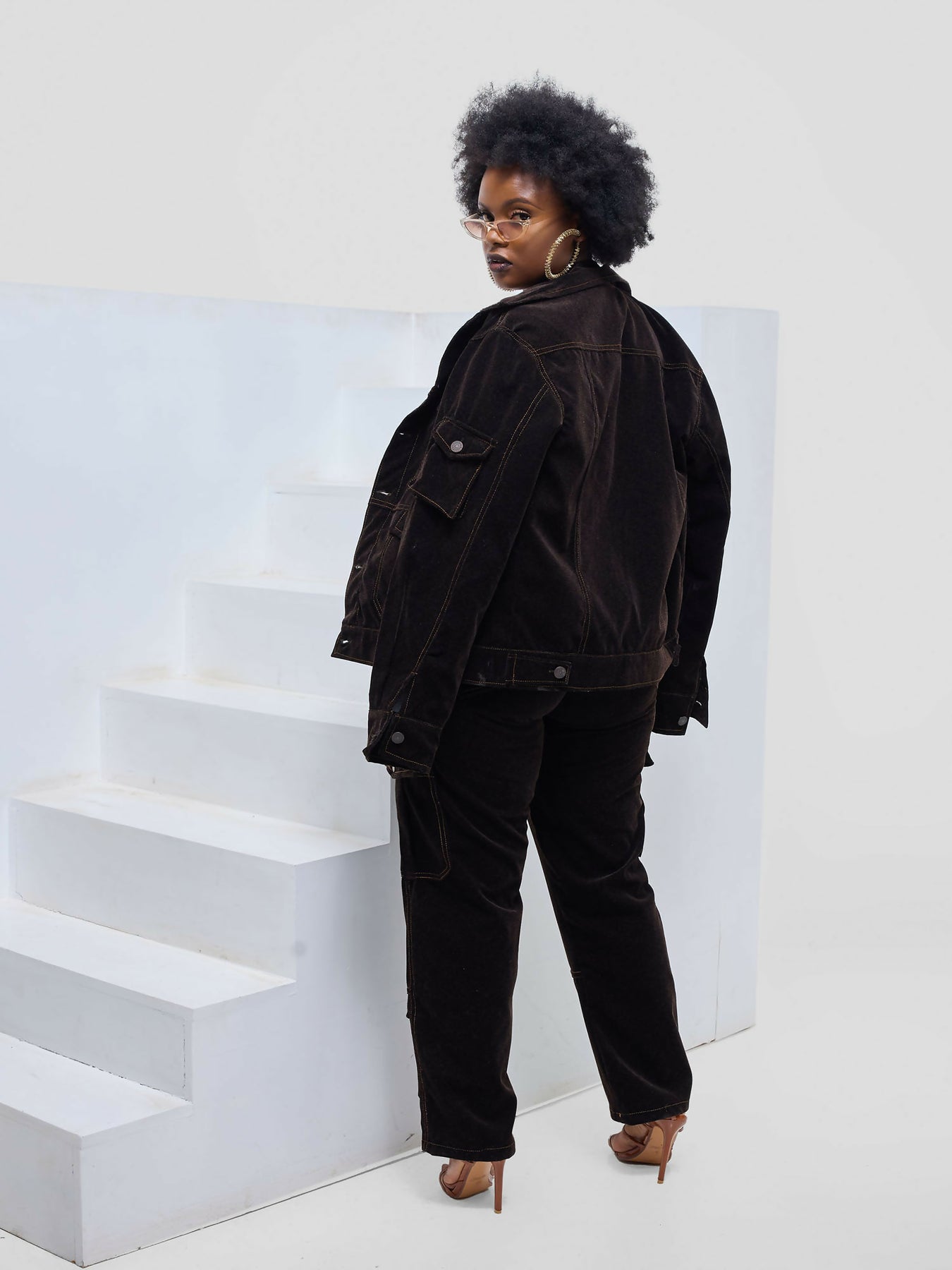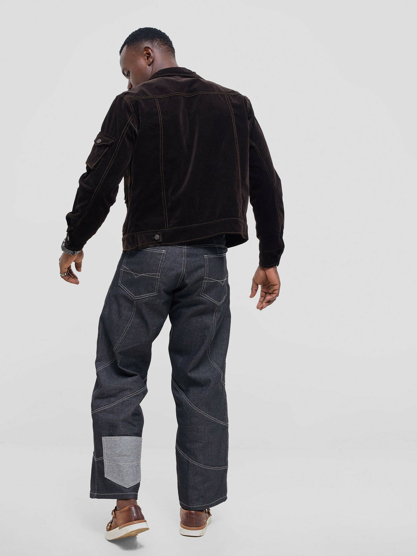 The Kalungi Kifaru Jacket is a functional yet elevated outerwear piece cut in heavyweight corduroy and fully lined with silk for contrast and comfort. It’s structured to sit just right on the body — not too tight, not too loose — and includes a left-side concealed pocket big enough to carry a charger or compact daily tools. The jacket balances the intensity of dark outerwear with the surprise of softness inside. It’s the kind of piece you throw over casuals or tailored looks, and it always makes sense.