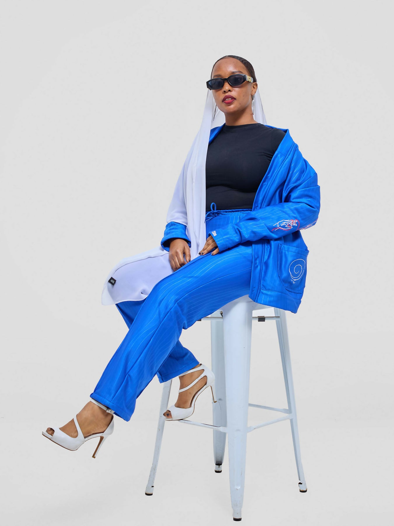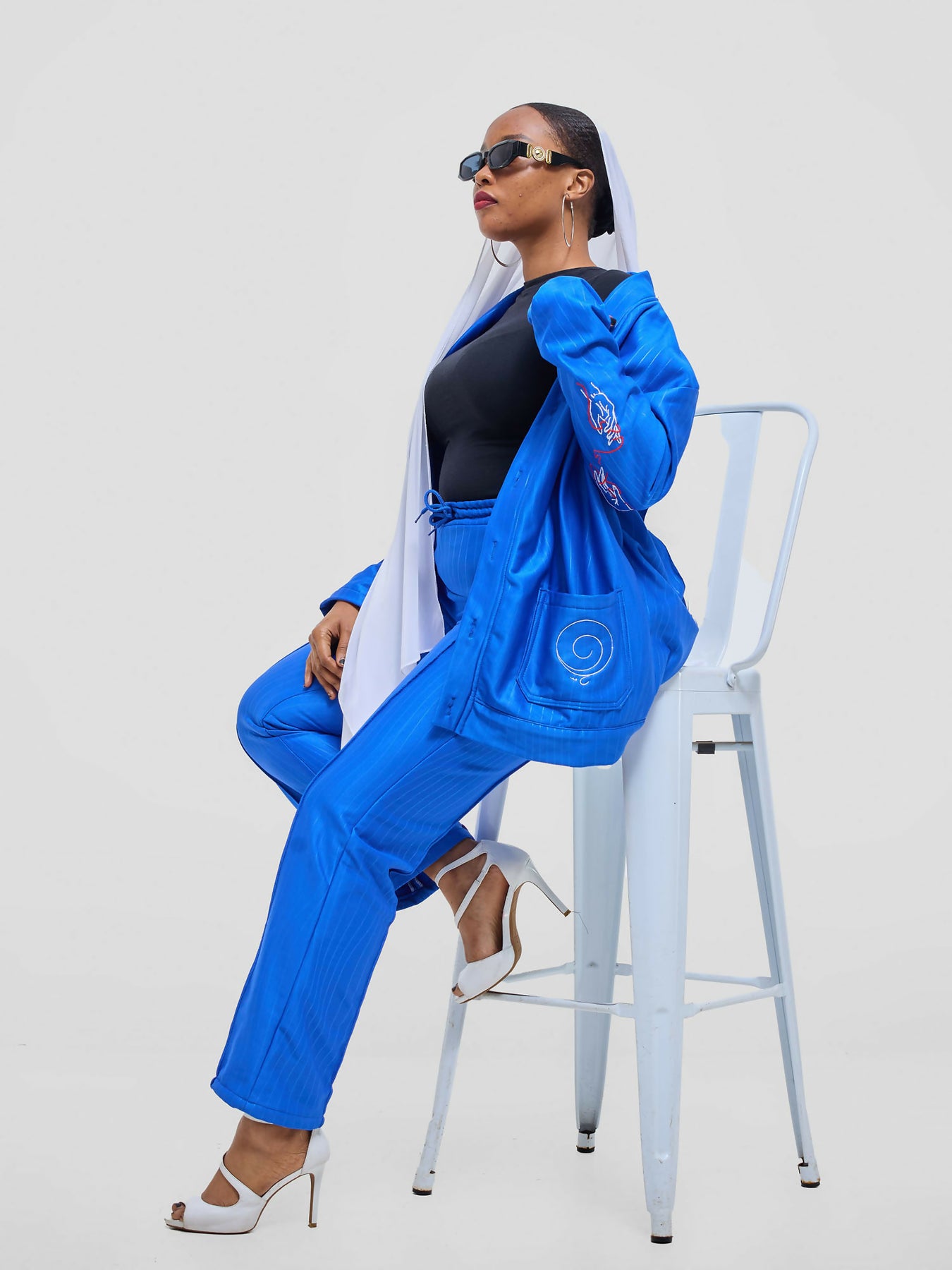 Pair with its matching clam-style pants or layer over an all-black base to let the embroidery pop.