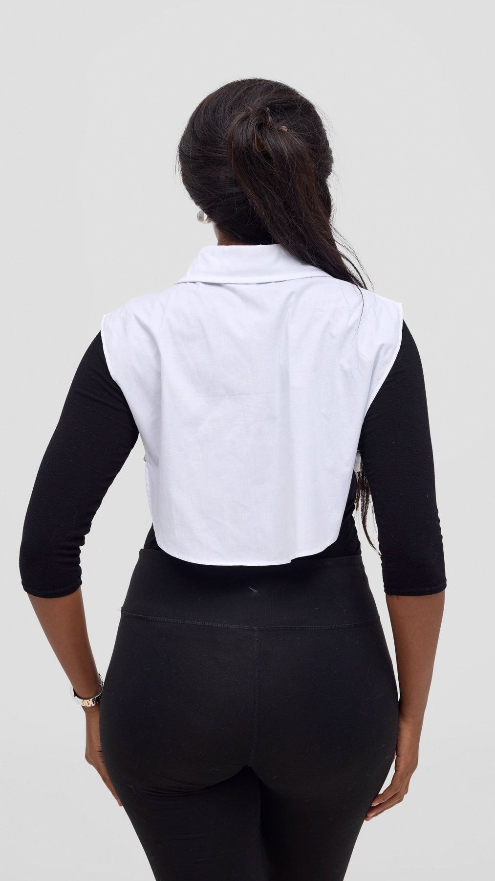 The Shiv & Shikie X Safari Faux Collar Printed Shirt in white offers versatile style with its cropped fit and side slits. Wear it alone for an edgy look or layer it for added sophistication. Its unique print is also available in a men's version, making it perfect for coordinated outfits. Ideal for dressing up or down, this shirt blends contemporary design with effortless wearability.